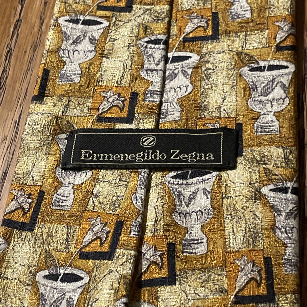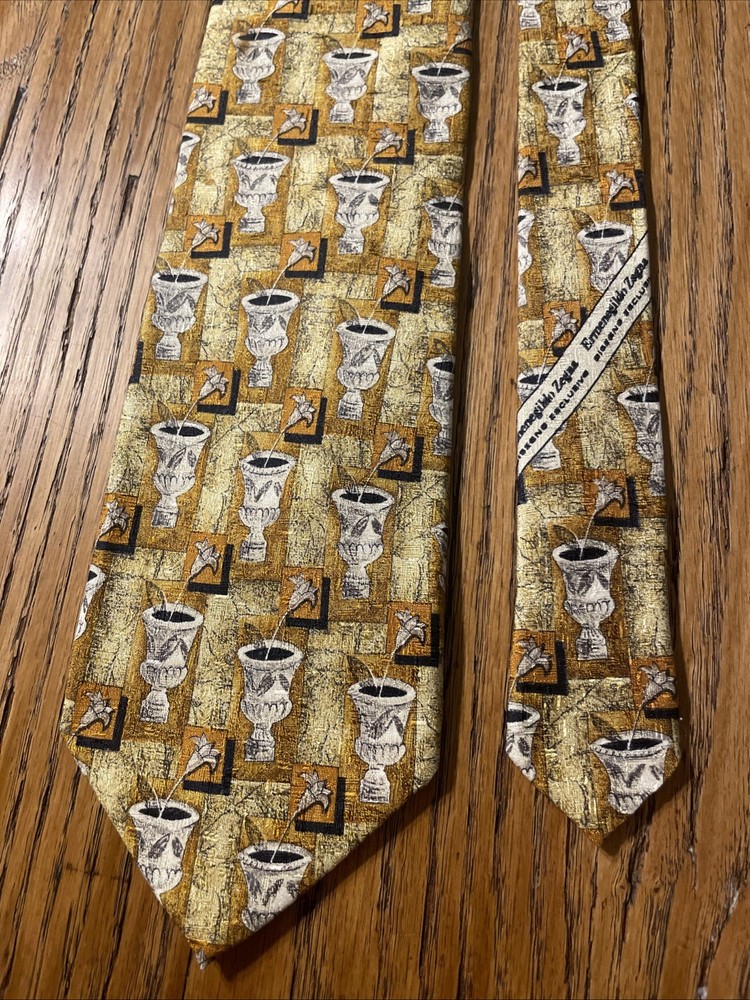 This vintage Ermenegildo Zegna silk tie features a tiny floral pattern, making it a sophisticated and stylish accessory for men. Made in Italy with 100% silk jacquard fabric, this designer tie is perfect for adding a touch of luxury to a preppy outfit. The classic width and multicolor design make it a versatile piece that can elevate any formal look.