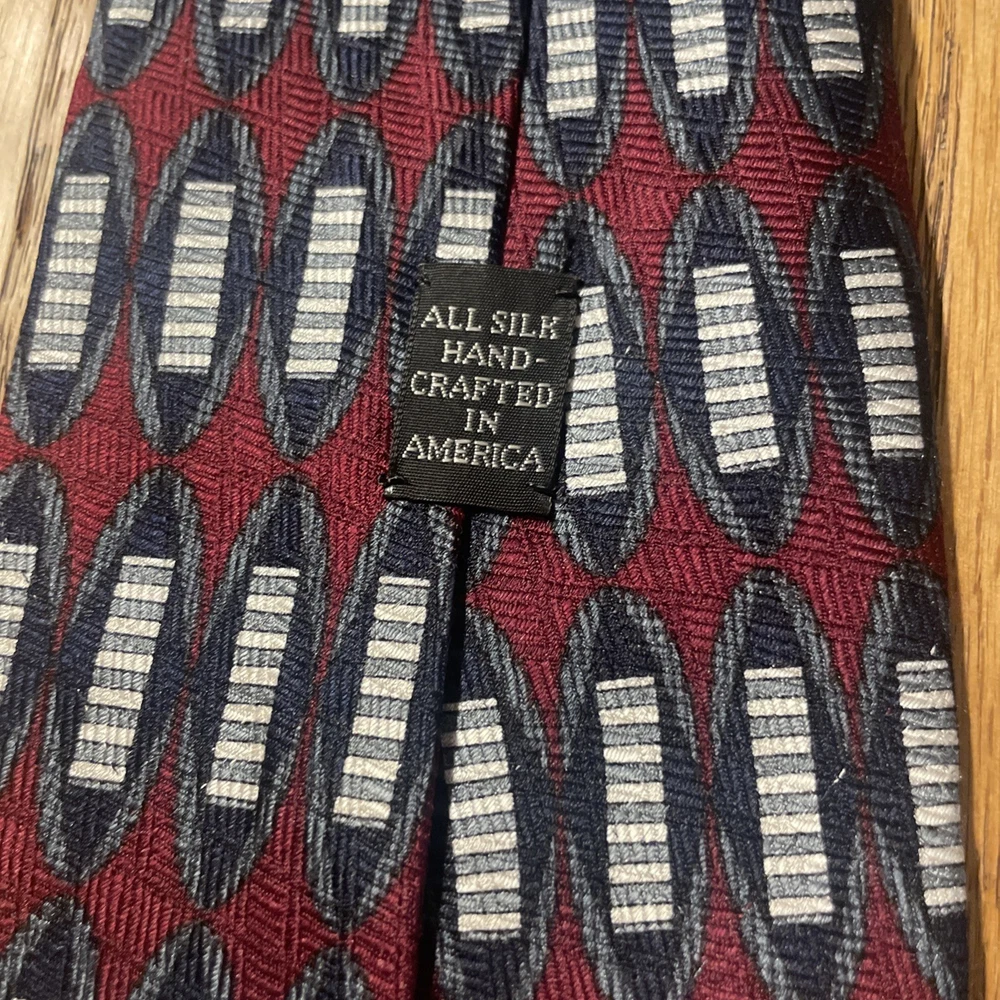 $ 5.28EUC Jos. A. Bank Corporate Silk Fine Geometric Tie USA Hand Sewn Men’s Necktie