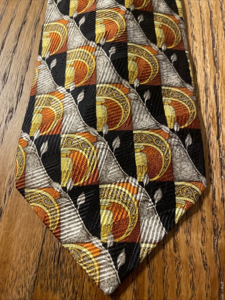 $ 7.75Vintage EUC Michel Royal Baroque Geometric Silk Tie Necktie Hand Made In Spain