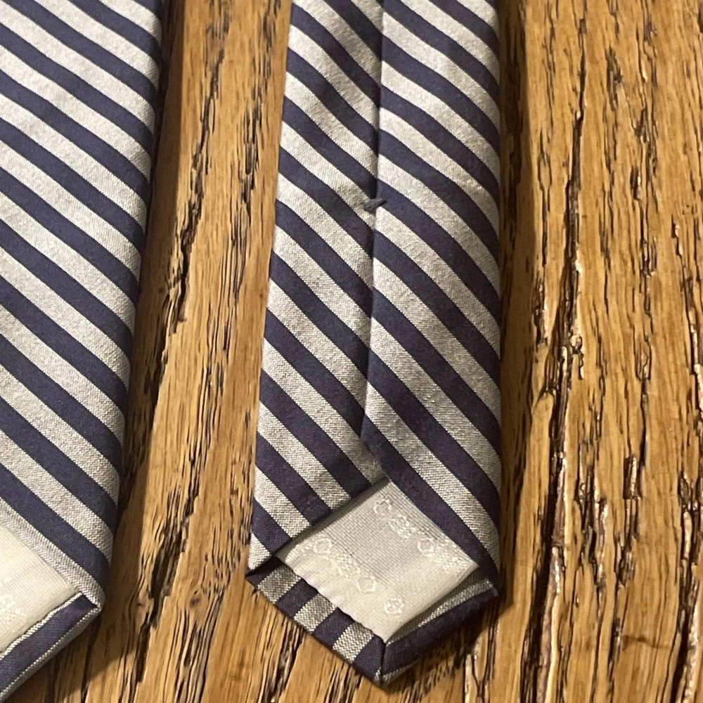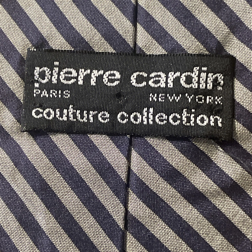 This Vintage Pierre Cardin Couture Striped Tie is a luxurious men's necktie made in Italy from 100% silk satin. The classic multicolored design exudes a preppy style, perfect for adding a touch of sophistication to any formal outfit. With its designer brand and vintage appeal, this tie is a high-quality and versatile accessory for the modern gentleman.