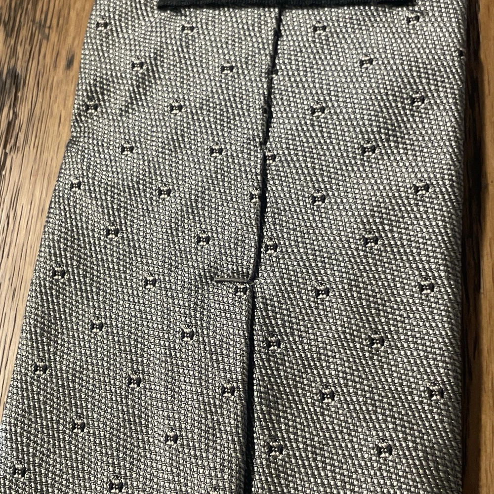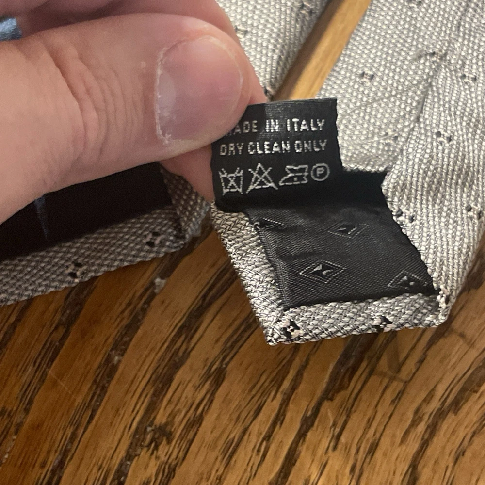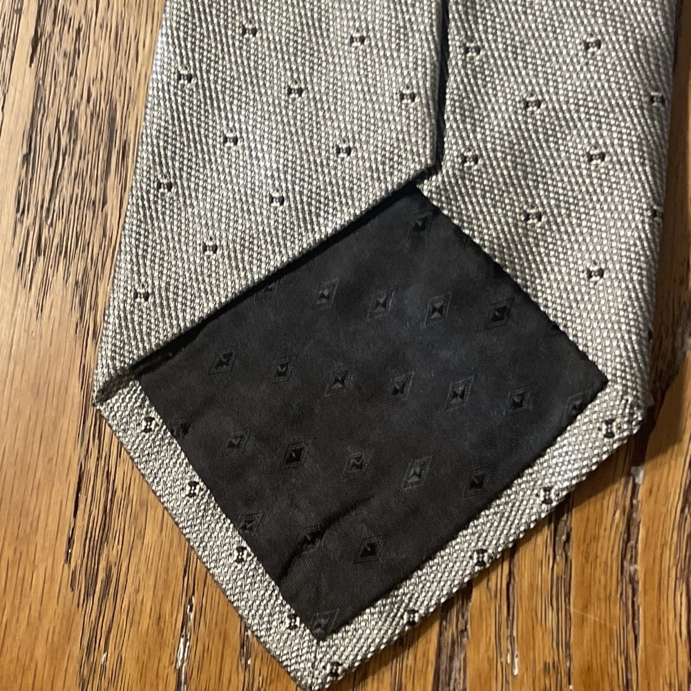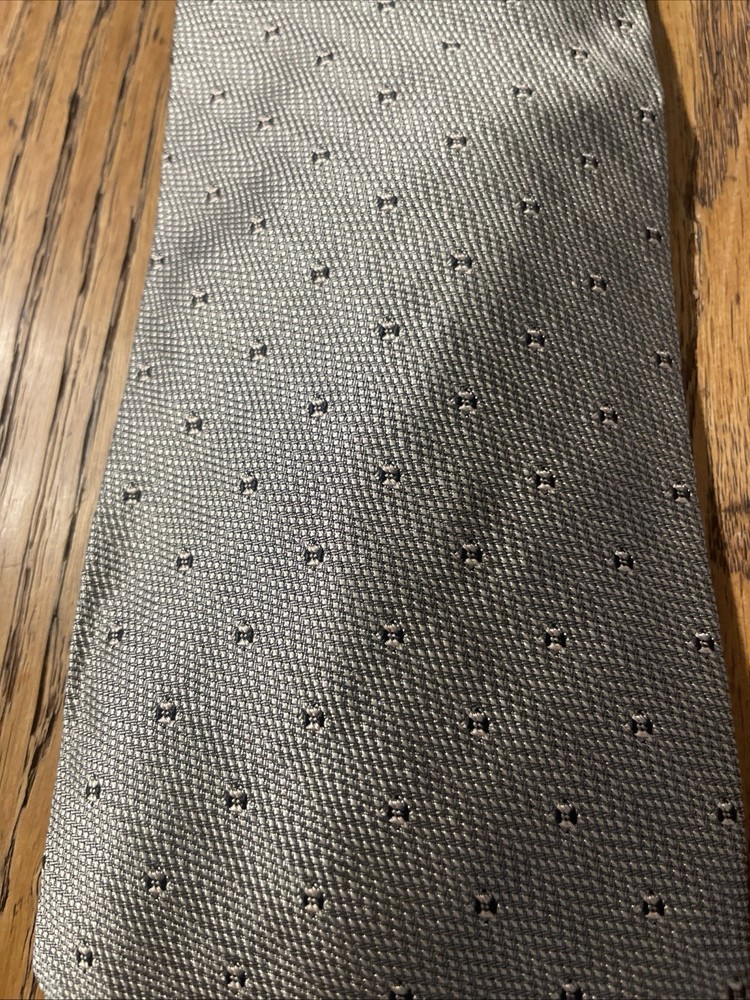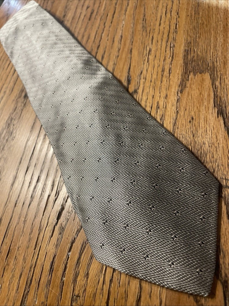 The Vintage Salvatore Valeriano Silk Geometric Tie is a luxurious men's accessory made in Italy. Featuring a classic metallic silver color with a preppy geometric pattern, this designer tie is crafted from 100% silk fabric. The vintage piece exudes sophistication and style for any formal occasion, adding a touch of elegance to any outfit. Perfect for the modern gentleman looking to elevate his wardrobe with a high-quality, timeless piece.