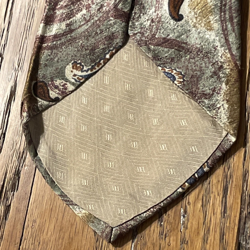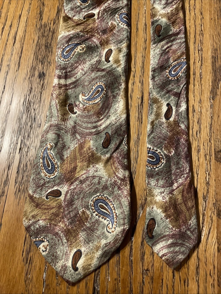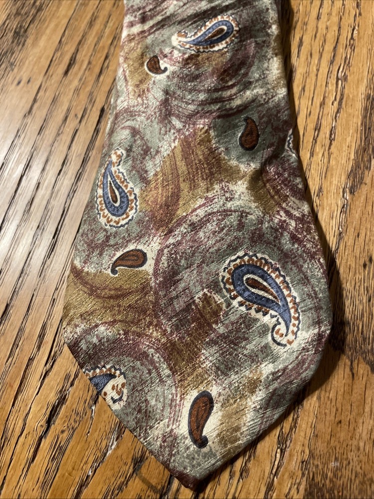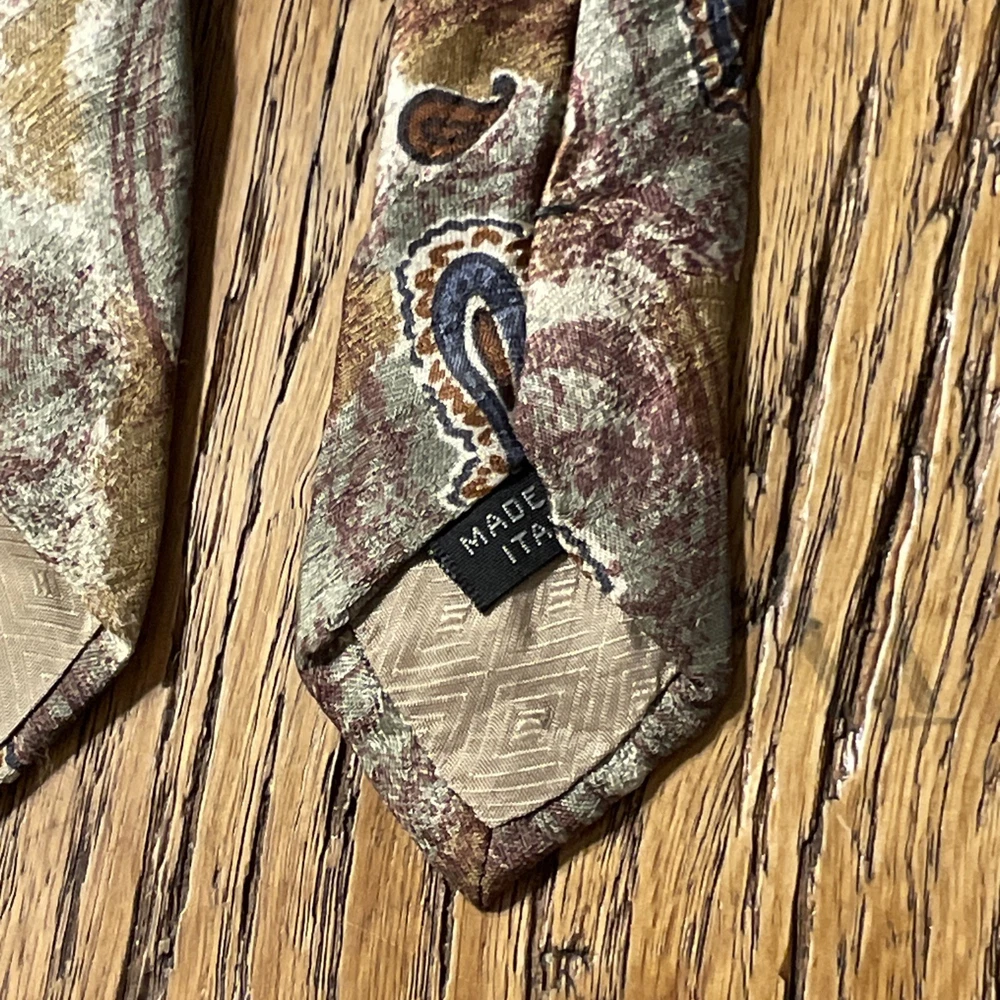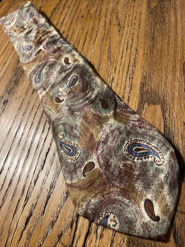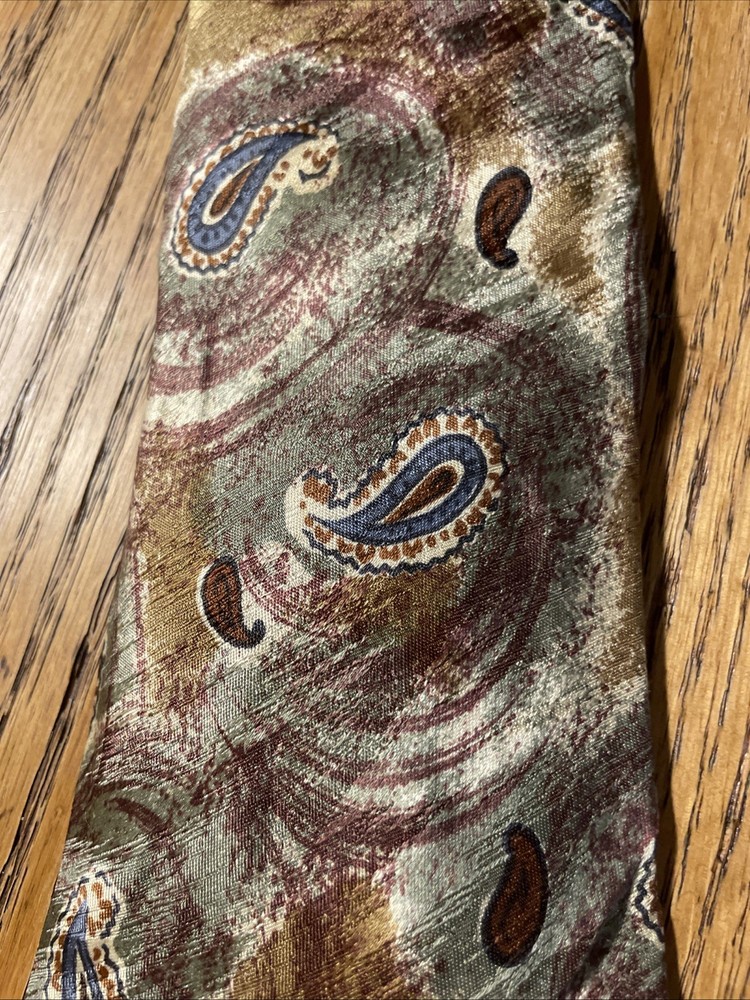 This Vintage EUC Salvatore Valeriano Silk Paisley Tie is a designer necktie for men, made in Italy. The multicolor paisley pattern adds a touch of preppy style to the classic 100% silk fabric. This luxurious tie is a vintage piece that exudes sophistication and refinement, perfect for adding a touch of elegance to any formal outfit. Made with high-quality satin material and featuring a classic width, this tie is a timeless accessory that is sure to make a statement.