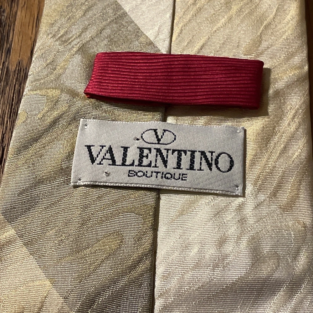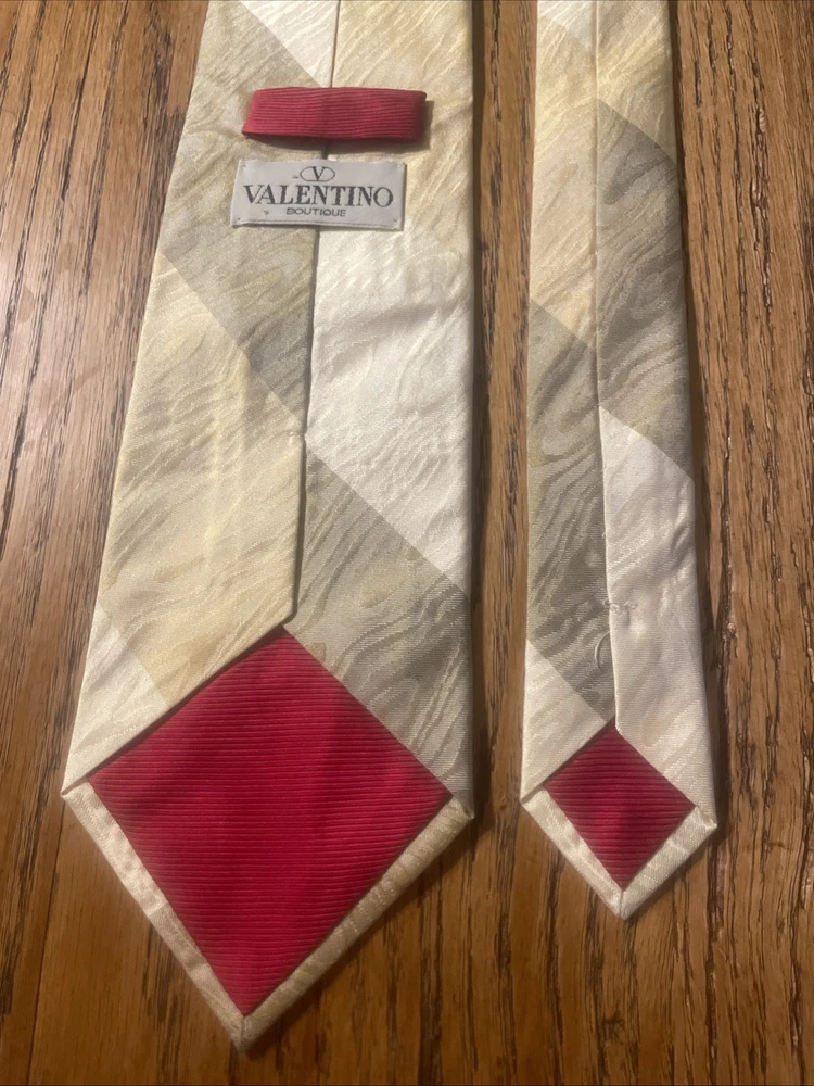 This vintage Valentino Boutique silk tie is a men's designer accessory that exudes a classic, preppy style. Made in Italy from 100% satin silk, this multicolor striped tie features a timeless striped pattern, perfect for adding a touch of sophistication to any outfit. The classic width and high-quality fabric make it a versatile and stylish addition to any man's wardrobe.