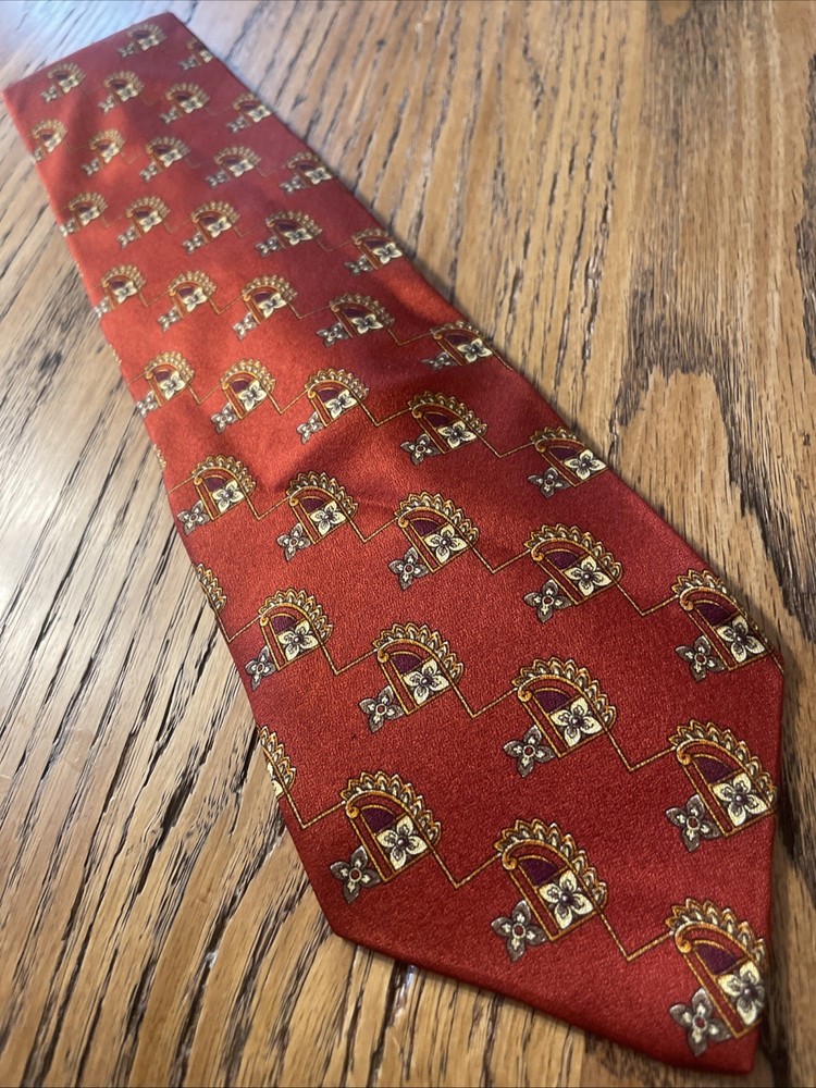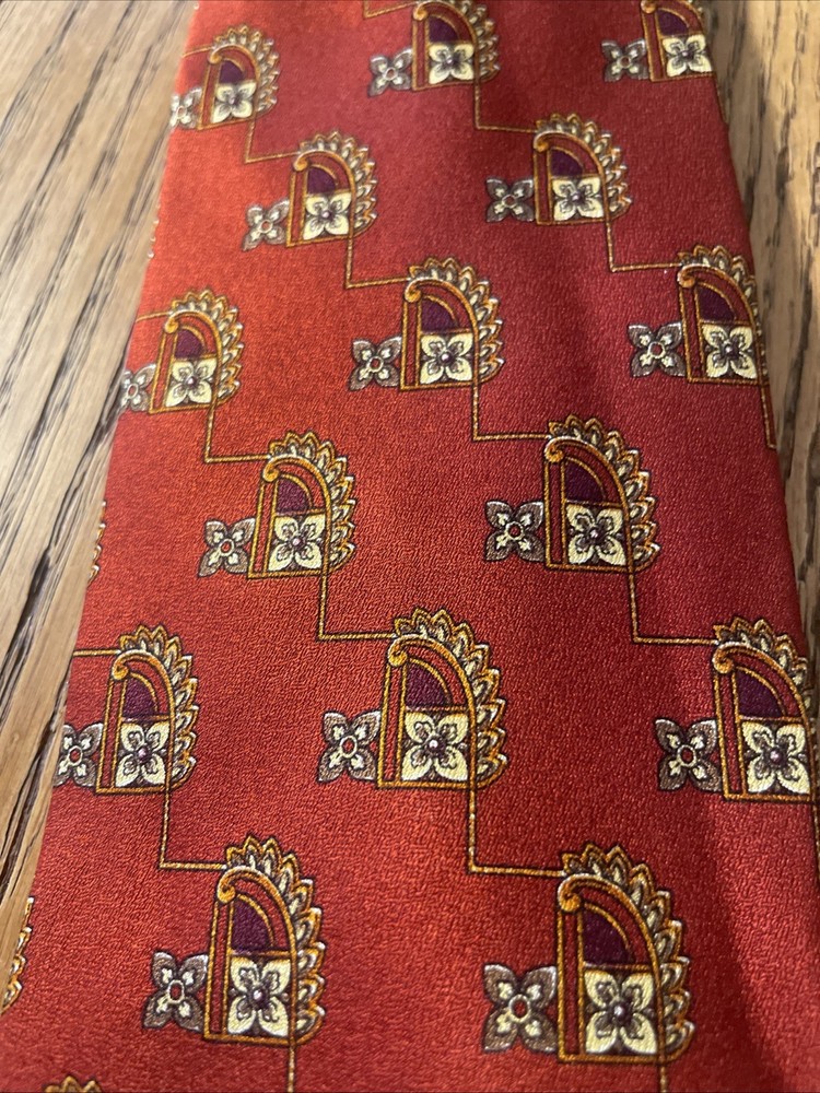 $ 10.56VTG USA Polo Ralph Lauren Diamond Print Handmade Tie Silk Burgundy Gold Maroon