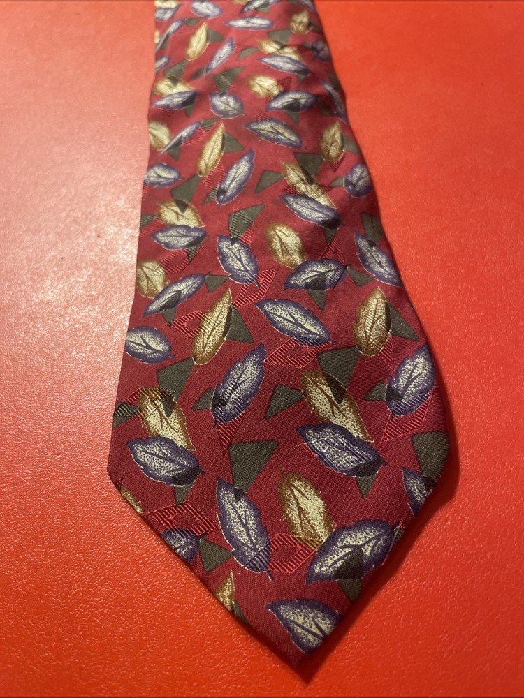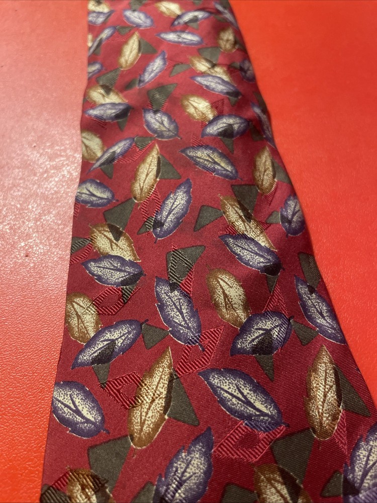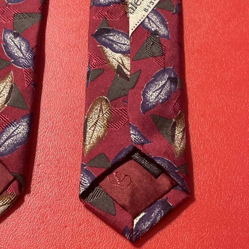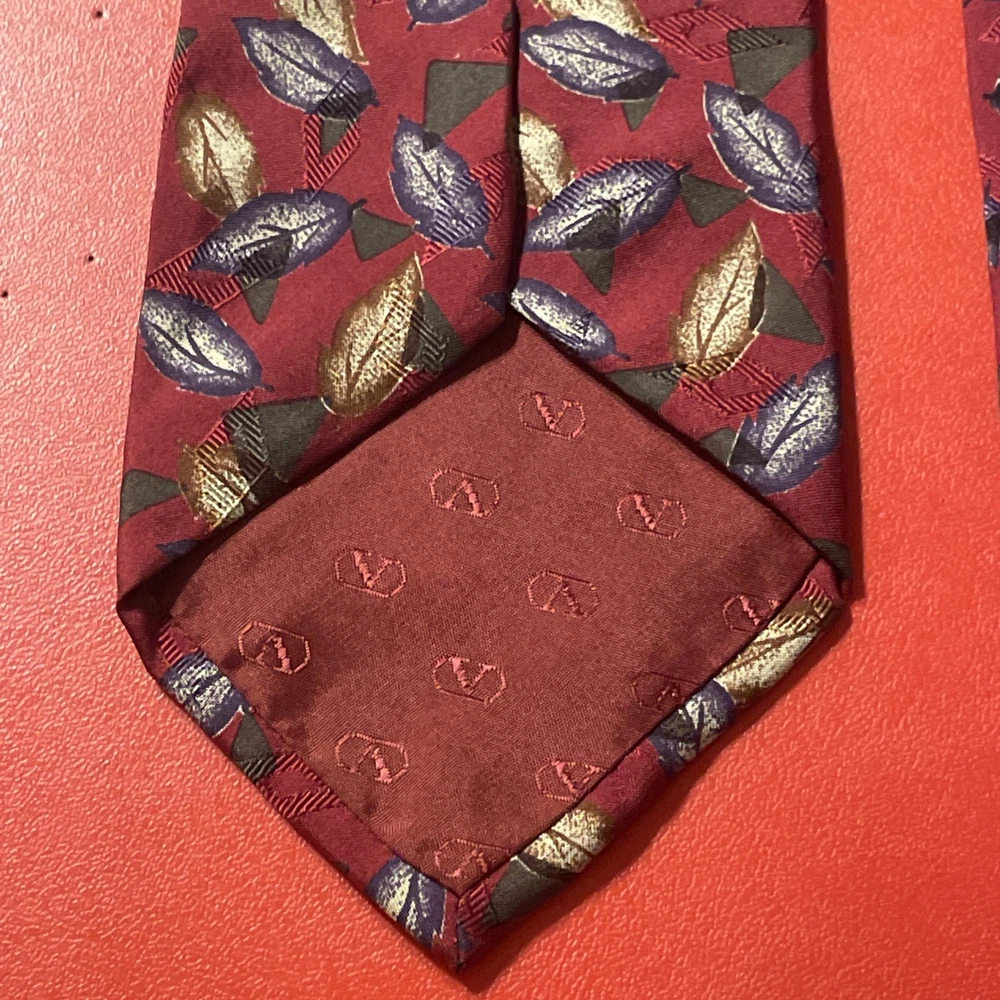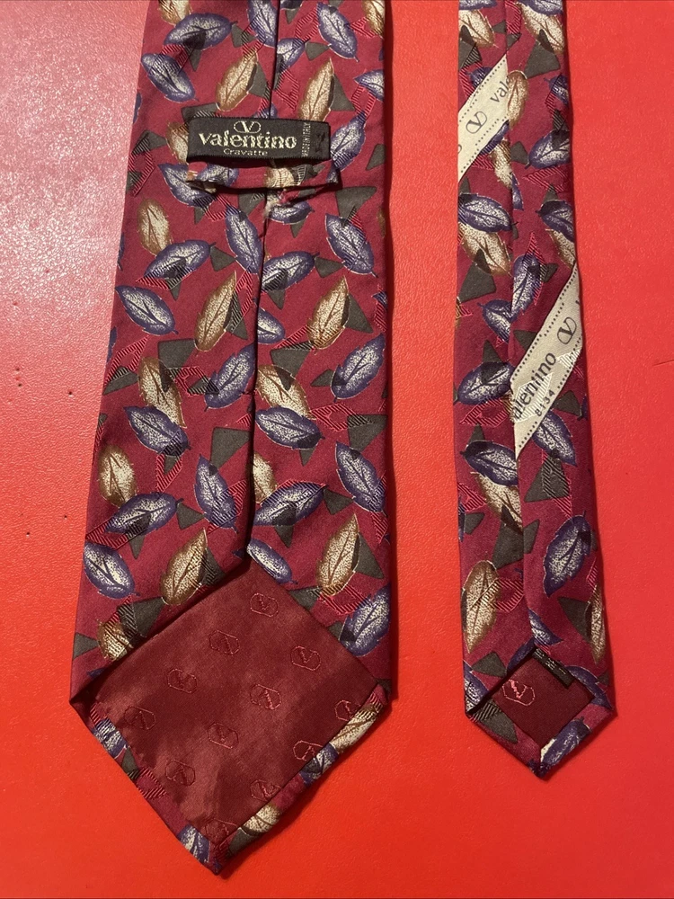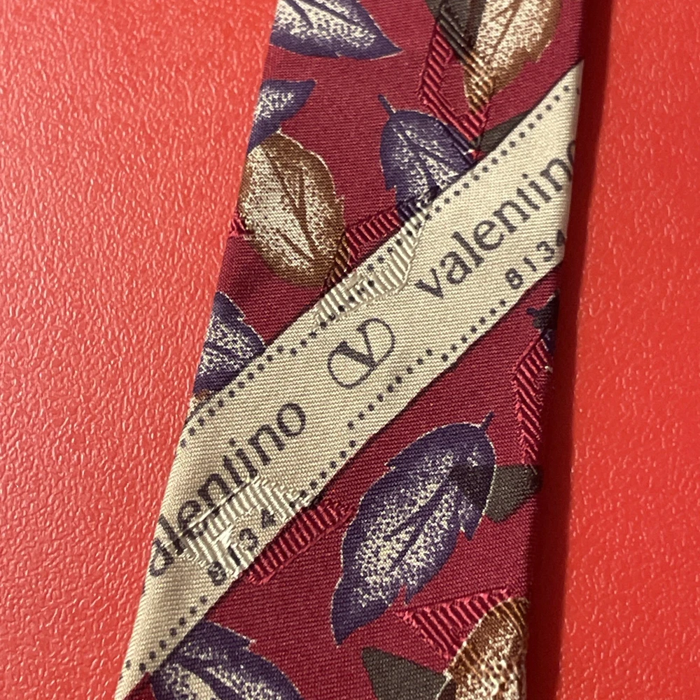 This vintage Valentino Cravatte silk tie is a designer accessory for men, featuring a classic leaves theme in a multicolor pattern. Made in Italy from 100% silk satin fabric, this preppy-style necktie adds a touch of elegance and sophistication to any outfit. The timeless design and high-quality material make it a versatile and stylish addition to any man's wardrobe.
