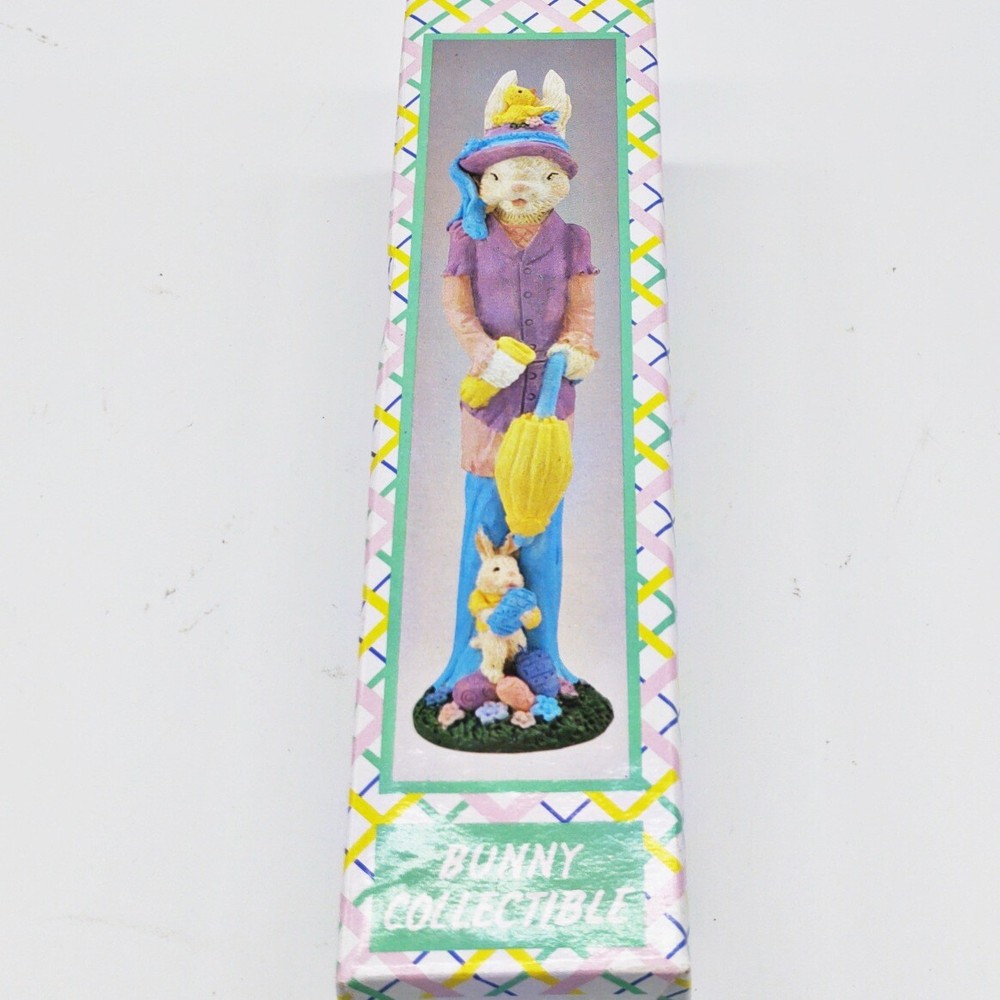 Vintage Easter Bunny Collectible Resin Totem Figurine Decoration Spring Holding an Umbrella