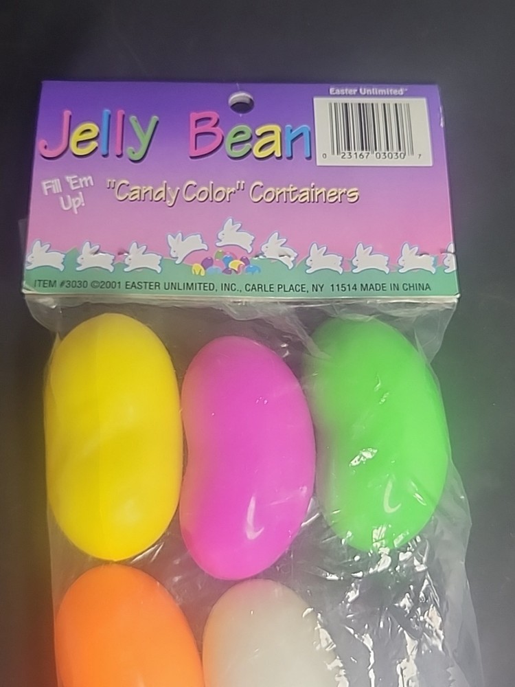 The Vintage Easter Unlimited Jelly Bean Shape Candy Color Containers are a nostalgic addition to any Easter collection. Made of plastic and featuring a multicolor design, these containers were manufactured in 2001 in China. Perfect for storing small treats or as a decorative piece for the Easter season, these candy containers are a unique and fun find for collectors of holiday memorabilia.