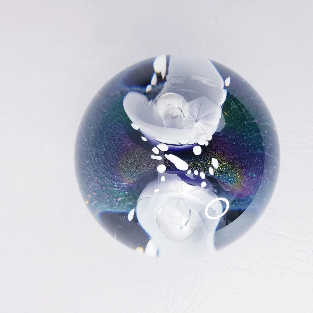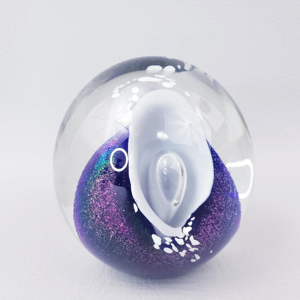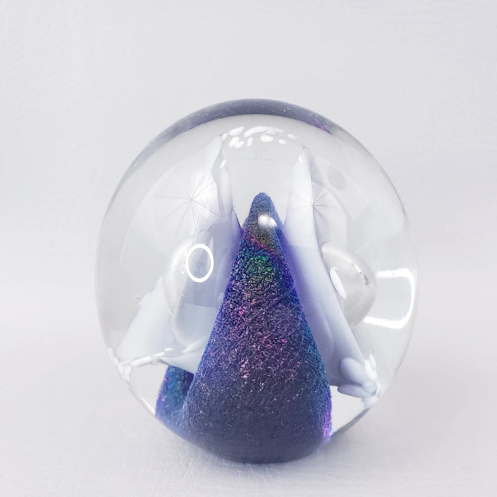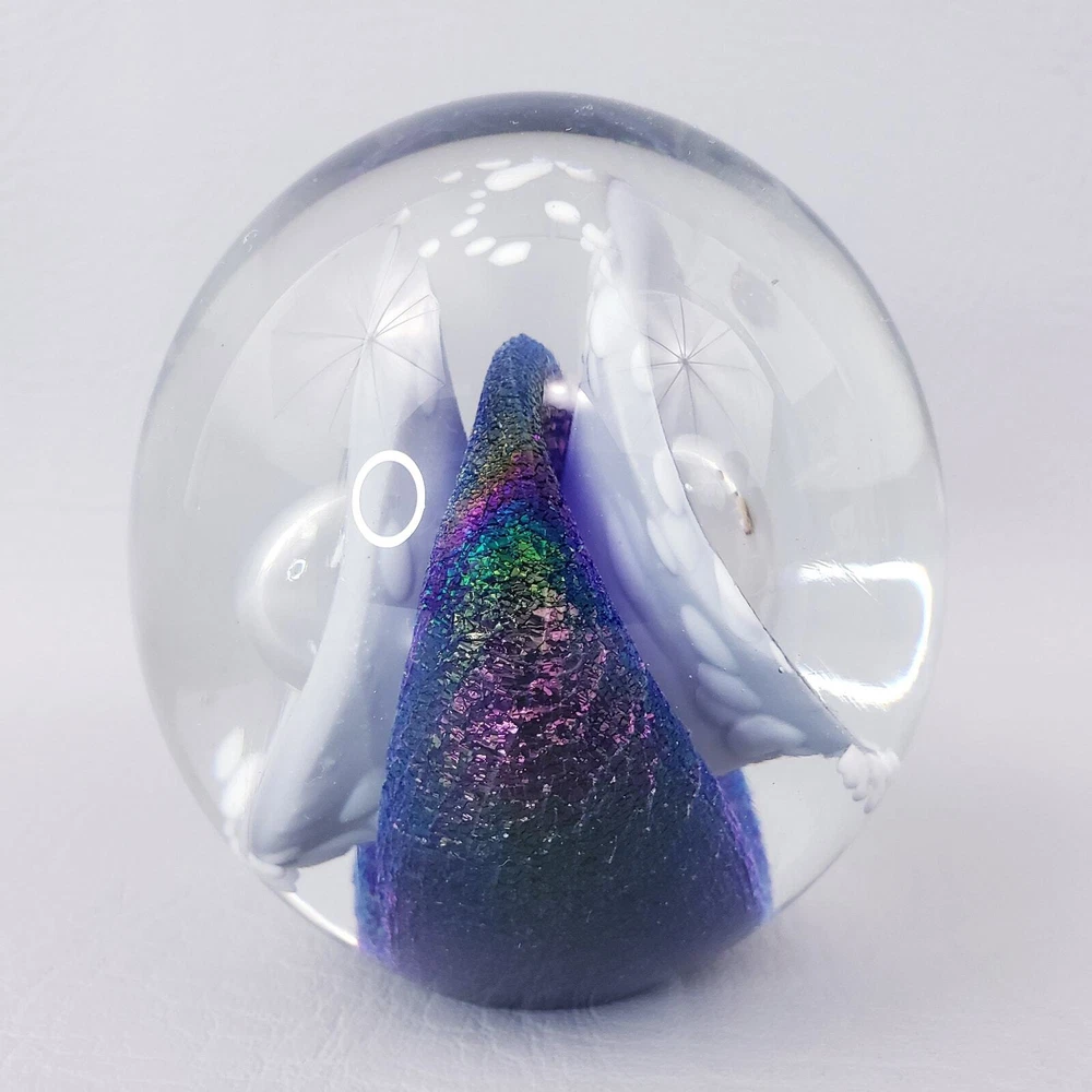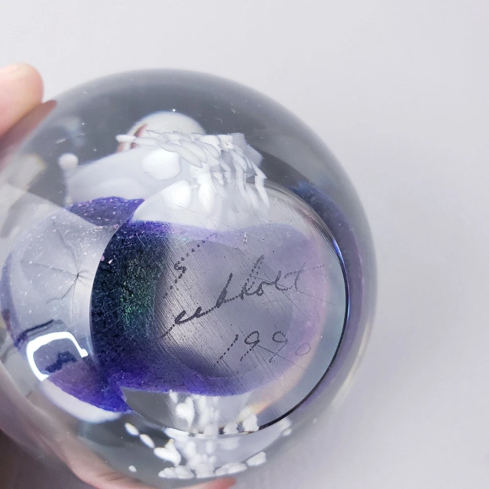 Vintage Eckholt 1990 Blue Iridescent Lily Paperweight Signed & Dated Excellent pre-owned condition free of any chips or cracks. Please see the listing photos. This is a very beautiful piece that sparkles in the light. Measures approximately 4"tall, 3" diameter. Thank you for looking!