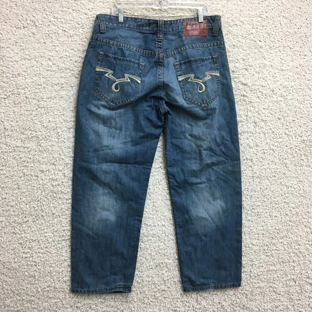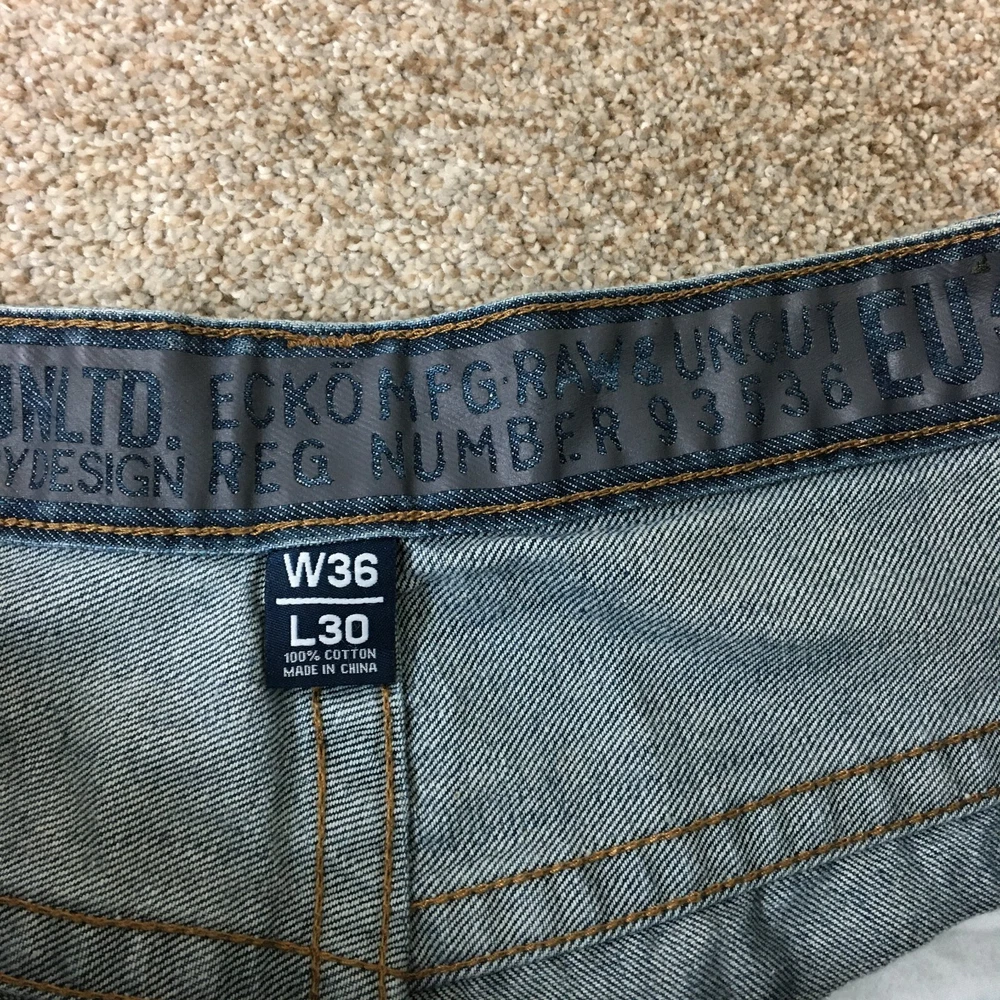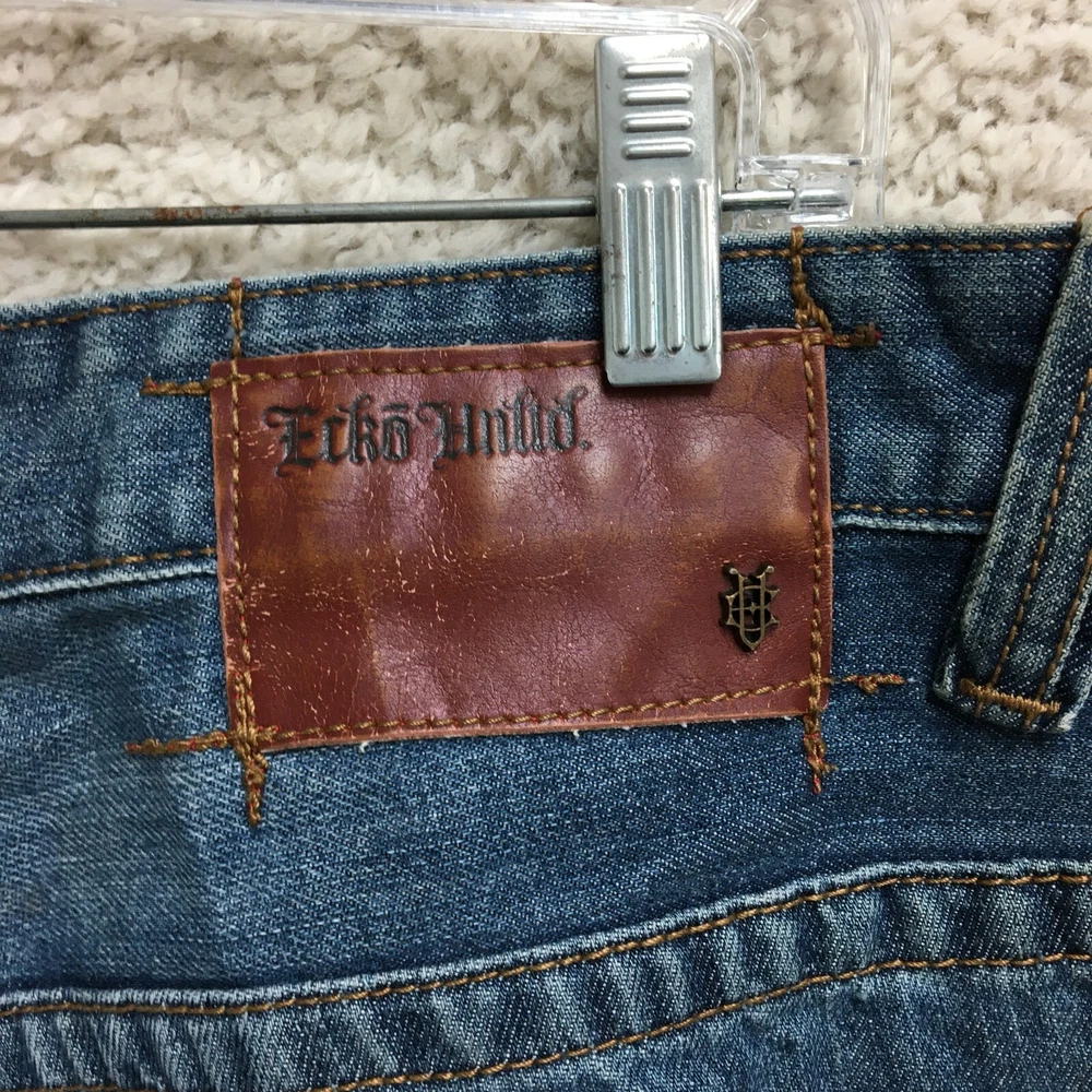Closure: Button, Zip gtin13: Does Not Apply Size Type: Regular Pattern: Solid Features: Comfort, Easy Care, Pockets Color: Blue Fit: Relaxed Inseam: 30 in Season: Fall, Spring, Summer, Winter Fabric Wash: Dark Accents: Button, Logo Pocket Type: 5-Pocket Design, Coin Pocket, Slash Pocket Department: Men Brand: Ecko Unltd. Garment Care: Machine Washable Material: Cotton Country/Region of Manufacture: China Vintage: Yes Waist Size: 36 in Fabric Type: Denim Theme: 90s, Grunge, Hip Hop Rise: Mid (10-12 in) Seller Notes: “Good Used Condition. Please, See Pictures for Full Condition and Measurements.” Type: Jeans UPC: Does Not Apply Size: 36 Style: Straight