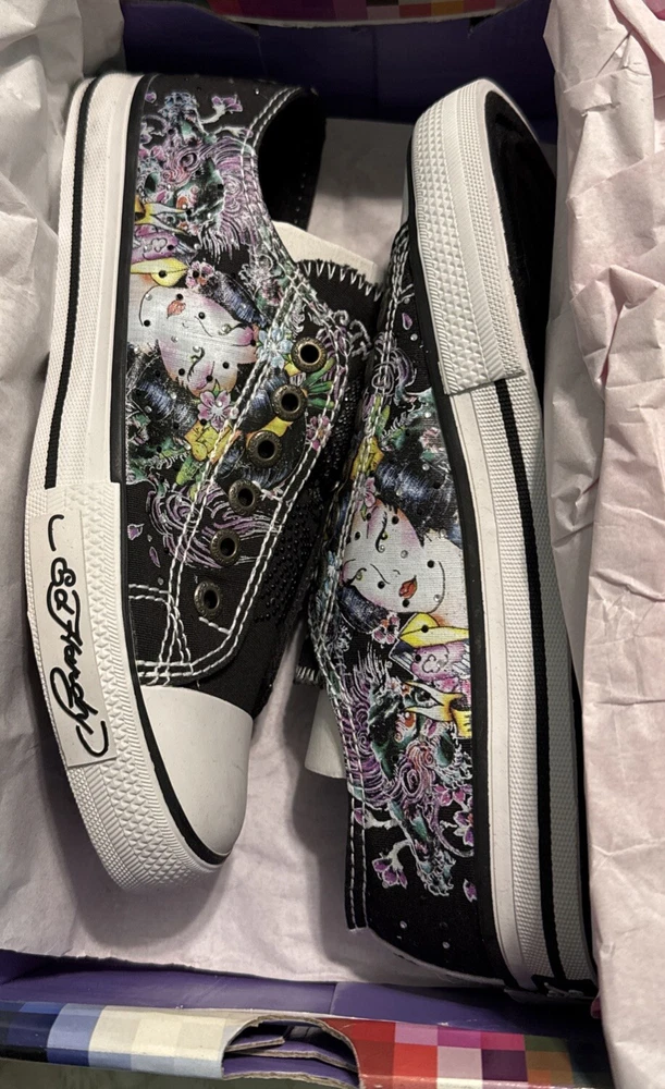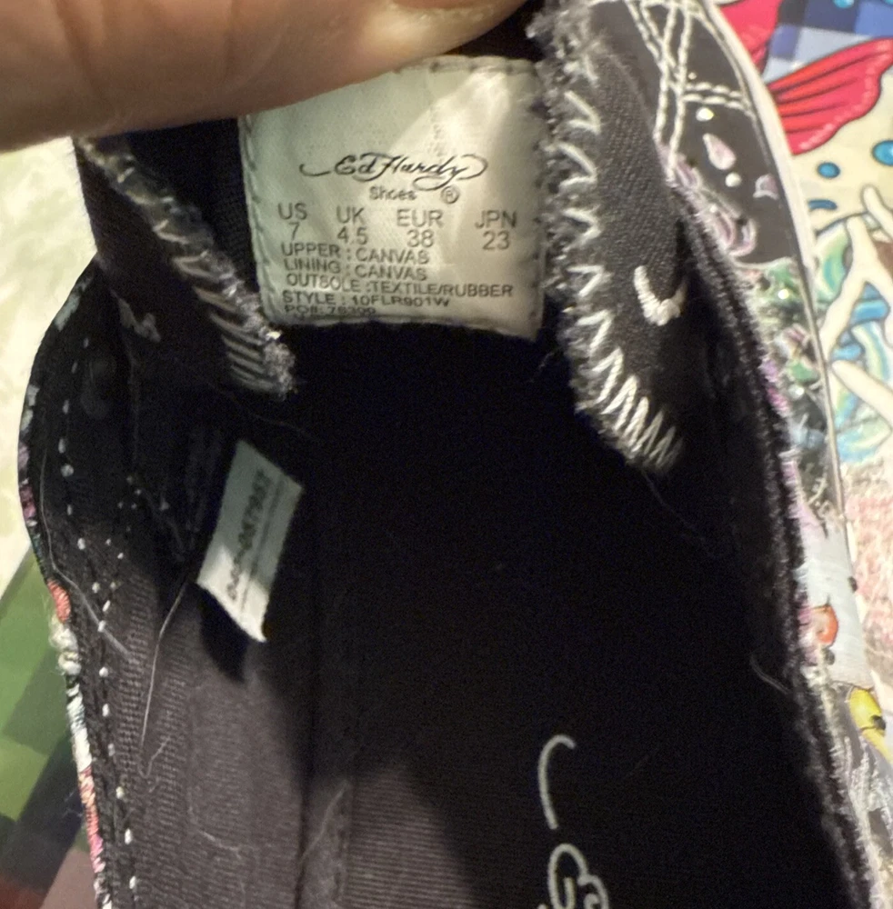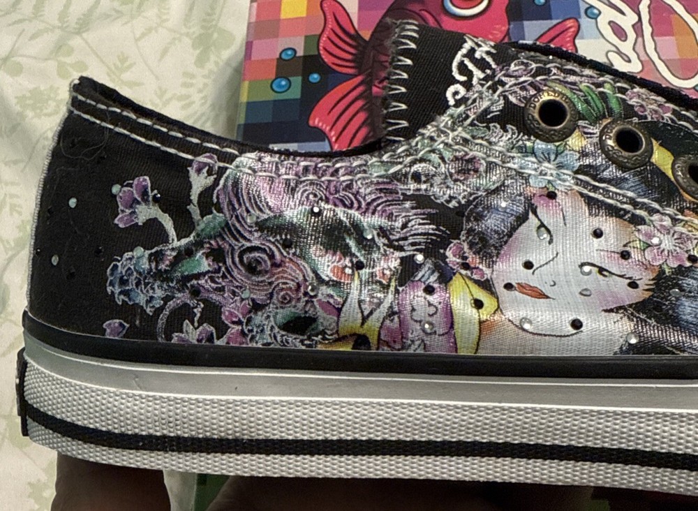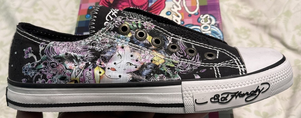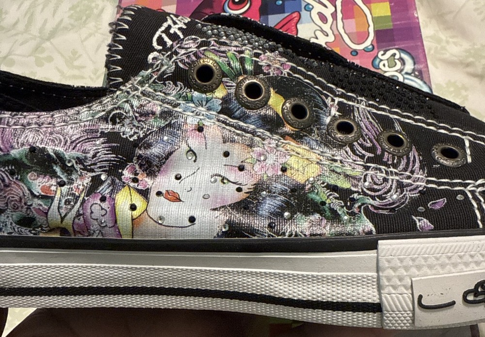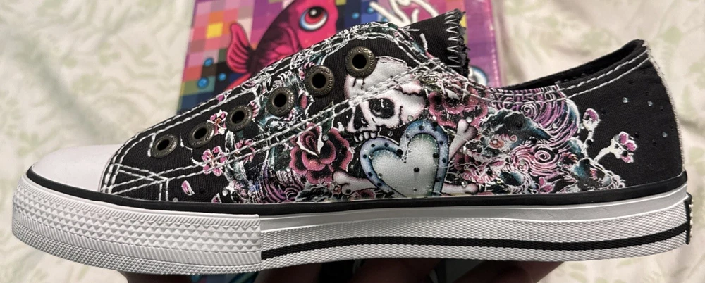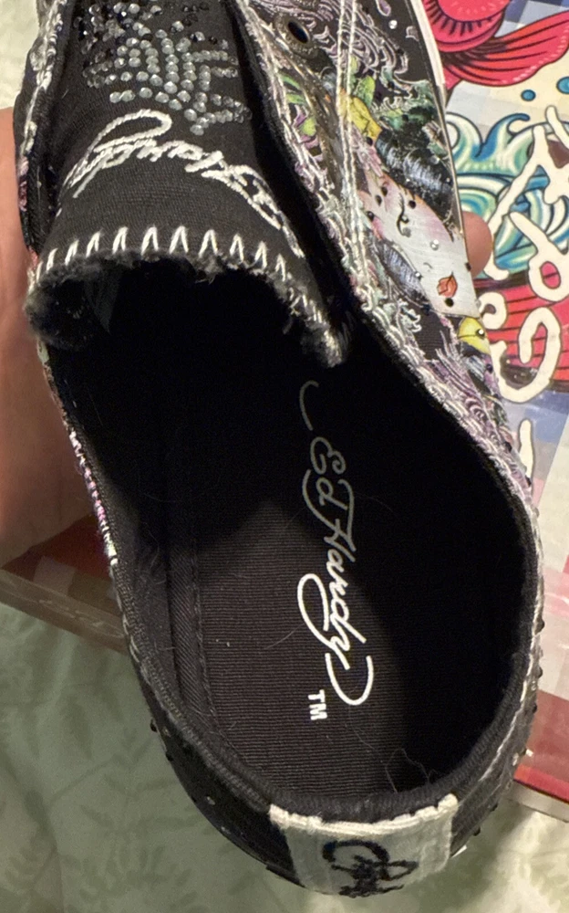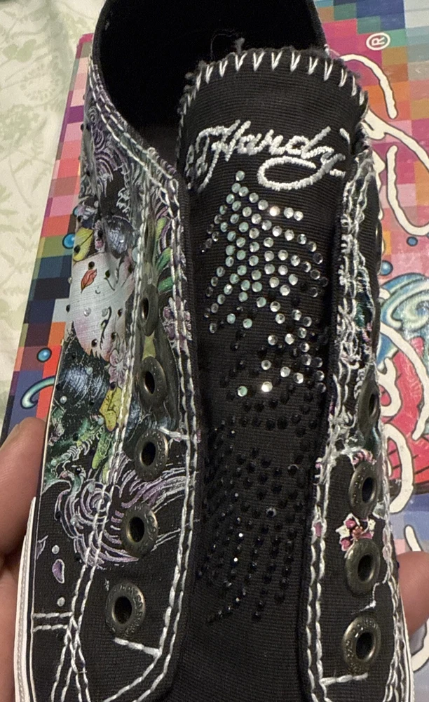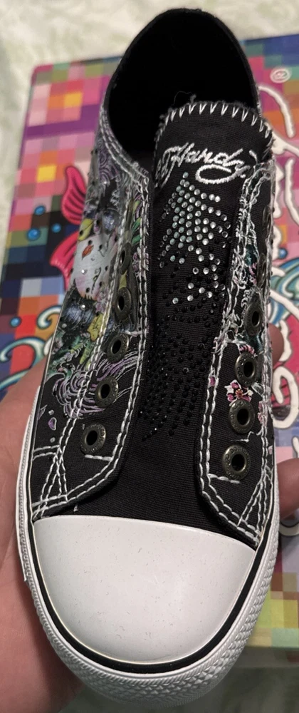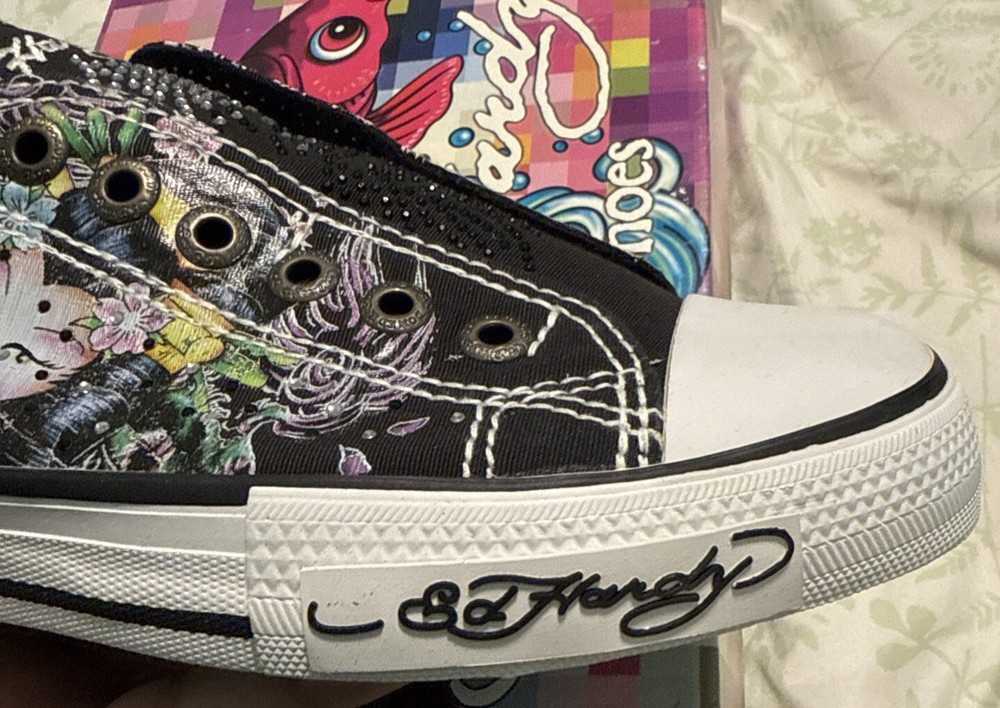 Vintage Ed Hardy Low Rise Rhinestone Slip-On Sneakers Womens Size 7 New Rare