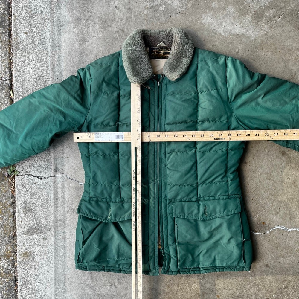 VINTAGE EDDIE BAUER GOOSE DOWN PUFFER COAT JACKET GREEN FITS MEDIUM 70S 80S FUR beautiful color measurements, and tag shown in pictures item is preworn and may have defects shipping every wednesday and sunday