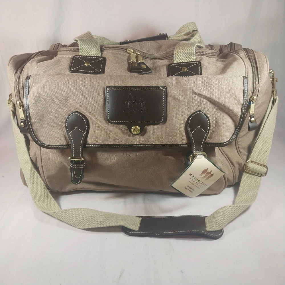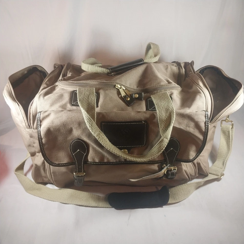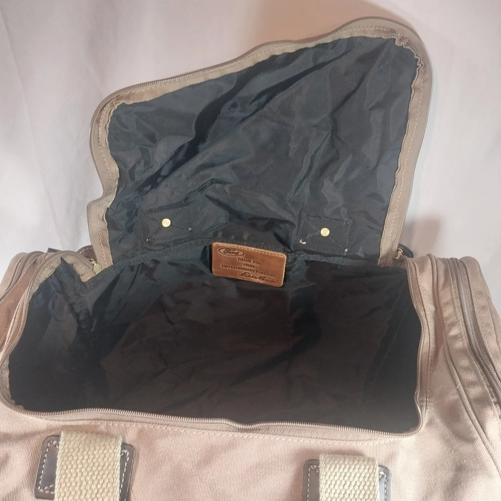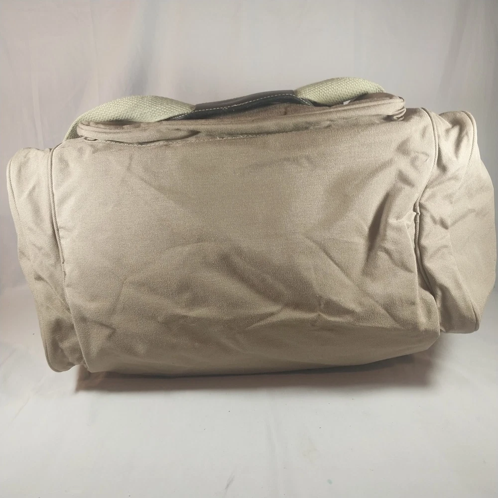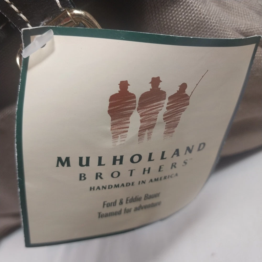 This vintage Eddie Bauer duffle bag is a must-have for any collector or outdoor enthusiast. Made from durable canvas material and featuring a solid beige color, this bag is both stylish and practical. The bag has a size of 18 inches, making it perfect for weekend getaways or camping trips. Not only is this bag lightweight and has a soft case, but it also comes with a unique Mulholland Brothers Ford and Eddie Buaer leather Thank You tag inside. The bag has never been used and is in excellent condition, ready for its next adventure.