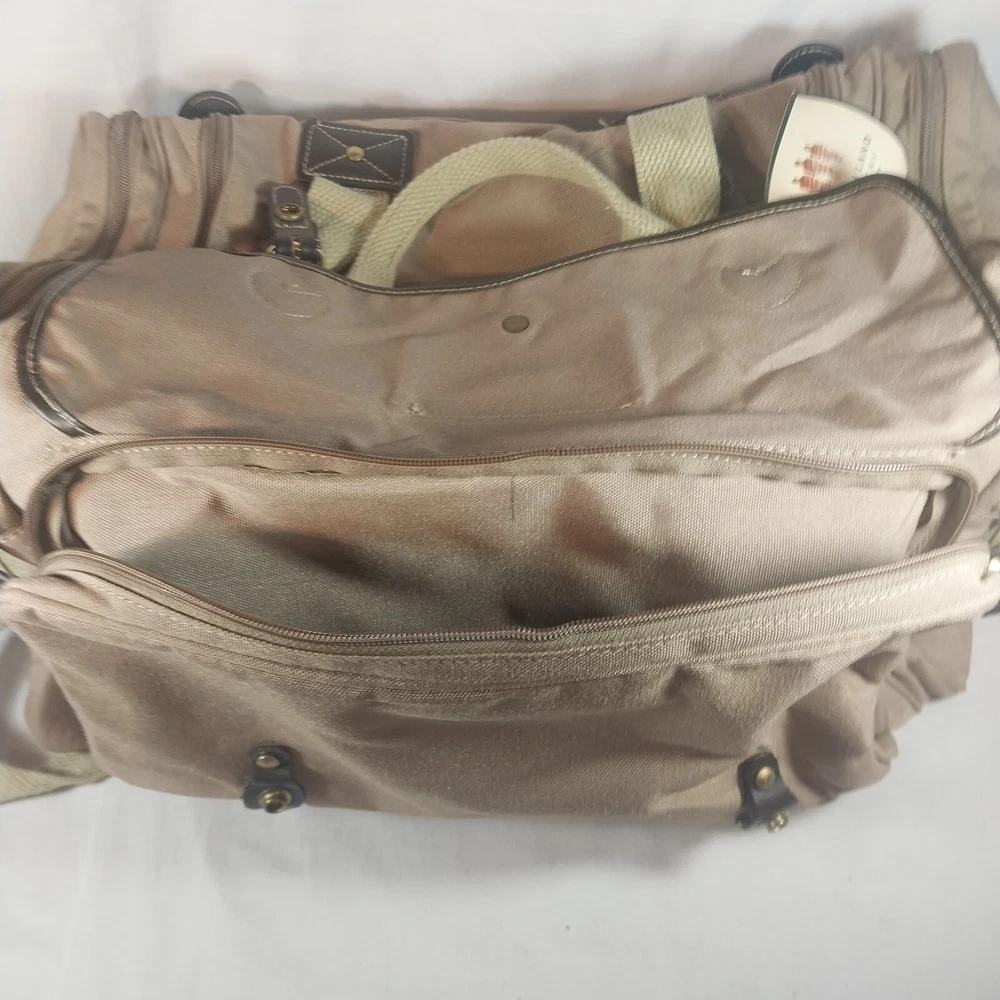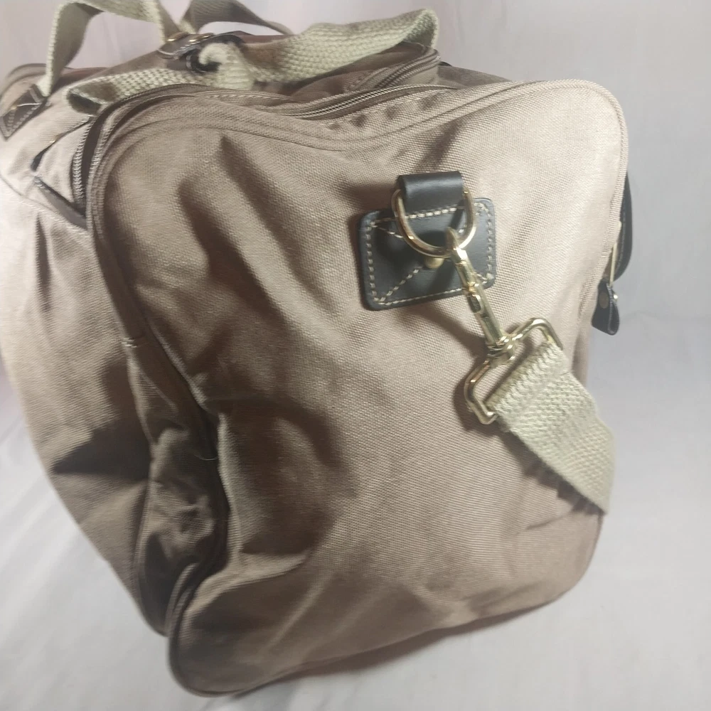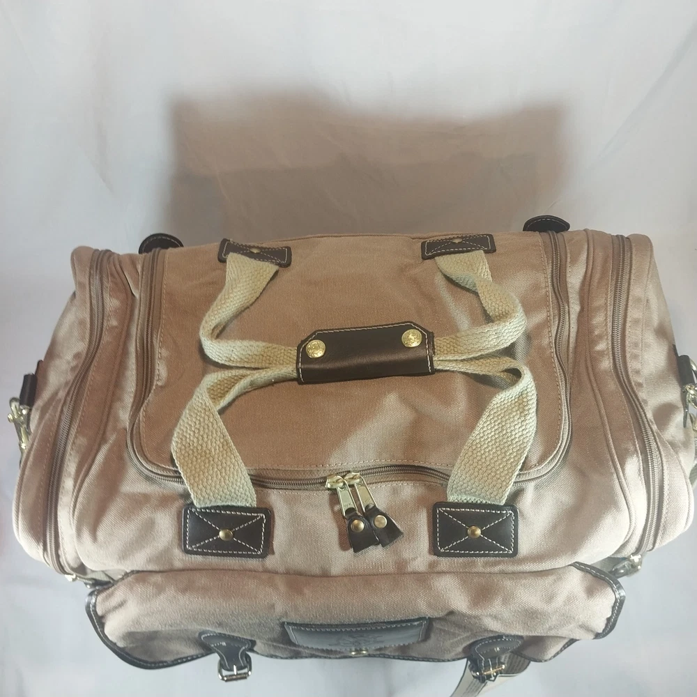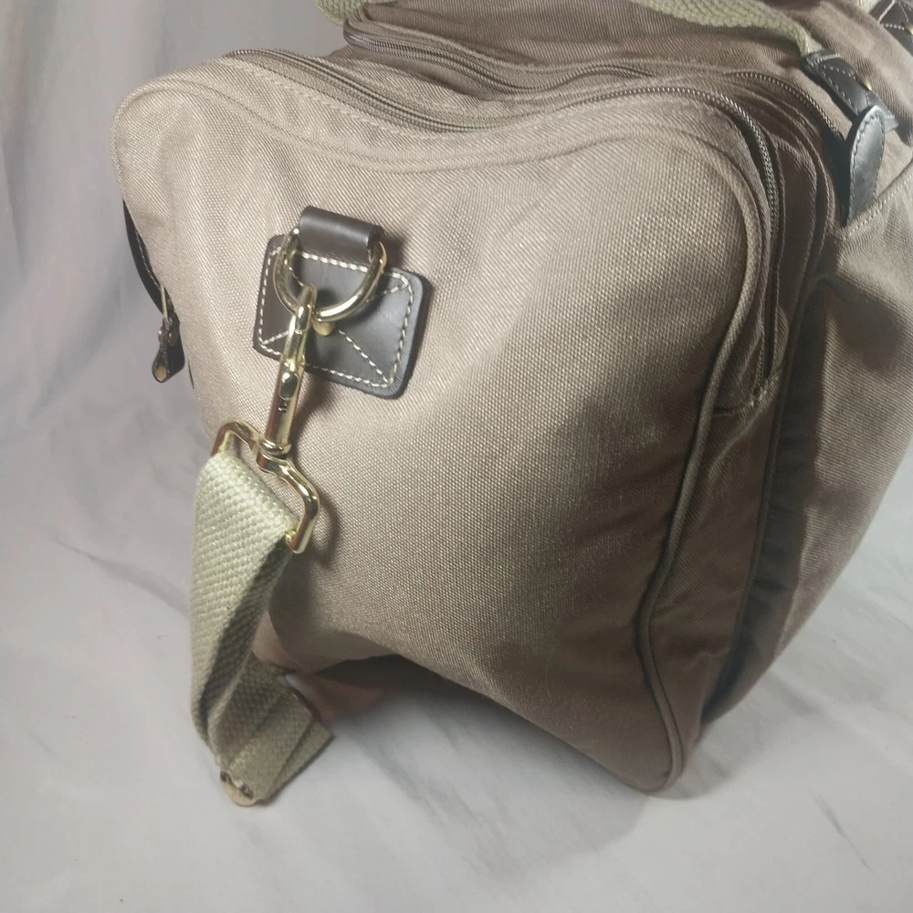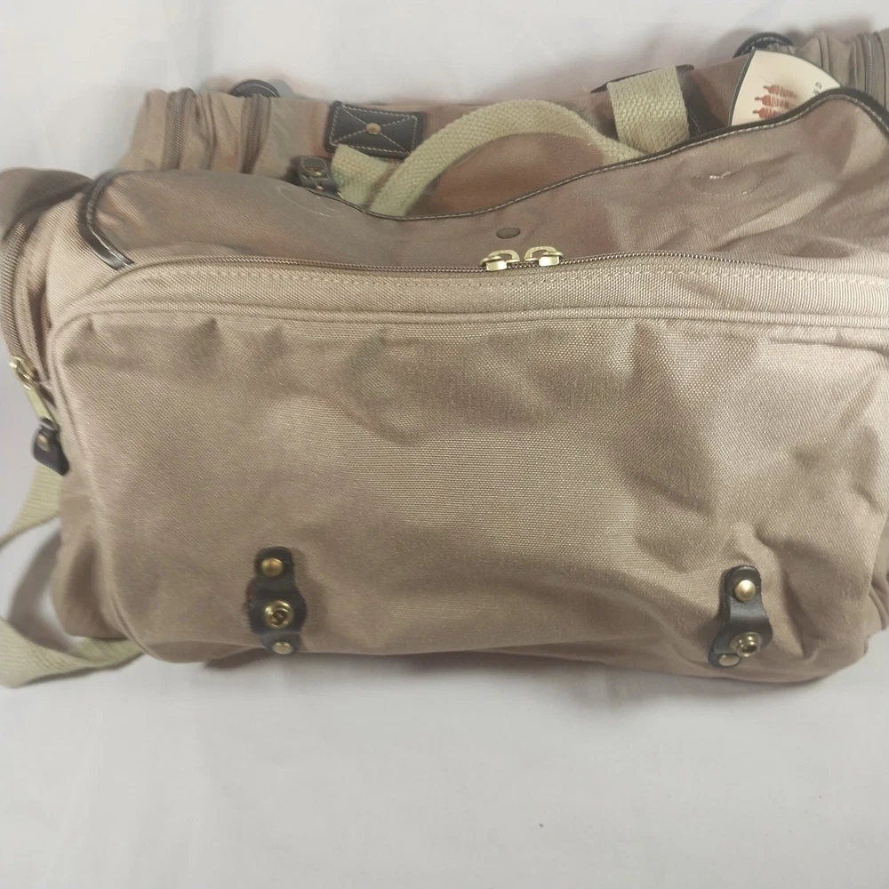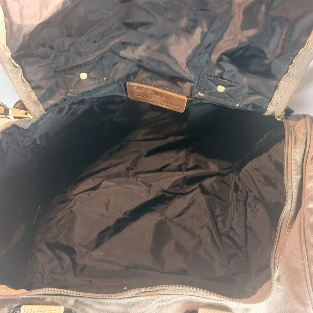 This vintage Eddie Bauer duffle bag is a must-have for any collector or outdoor enthusiast. Made from durable canvas material and featuring a solid beige color, this bag is both stylish and practical. The bag has a size of 18 inches, making it perfect for weekend getaways or camping trips. Not only is this bag lightweight and has a soft case, but it also comes with a unique Mulholland Brothers Ford and Eddie Buaer leather Thank You tag inside. The bag has never been used and is in excellent condition, ready for its next adventure.