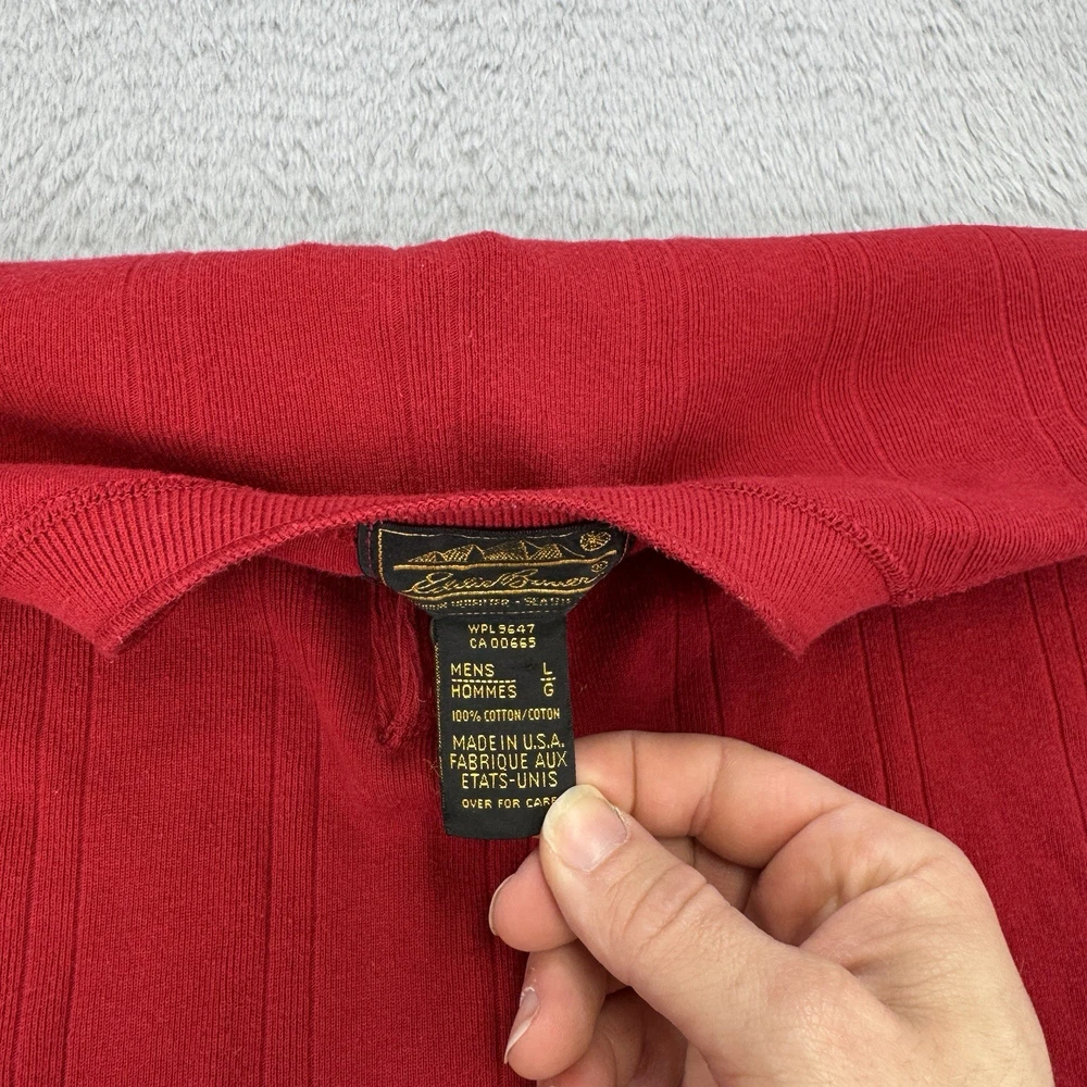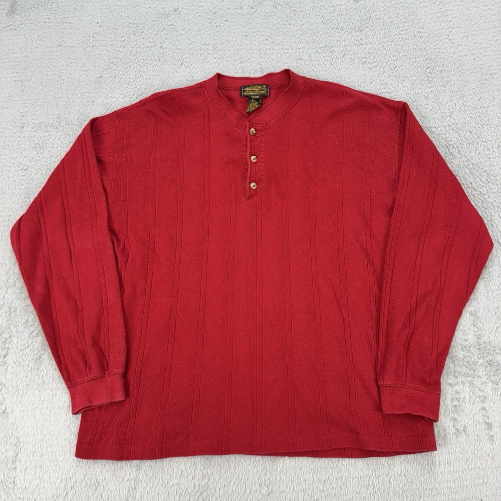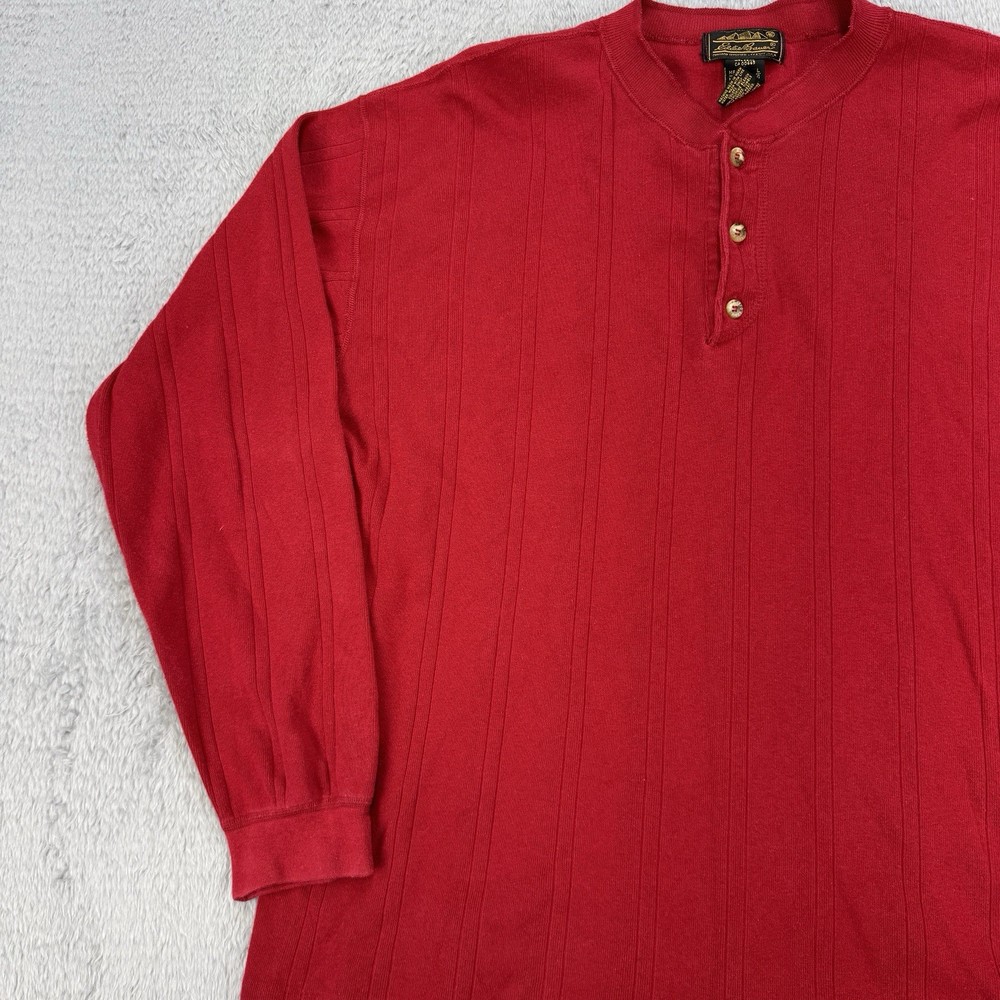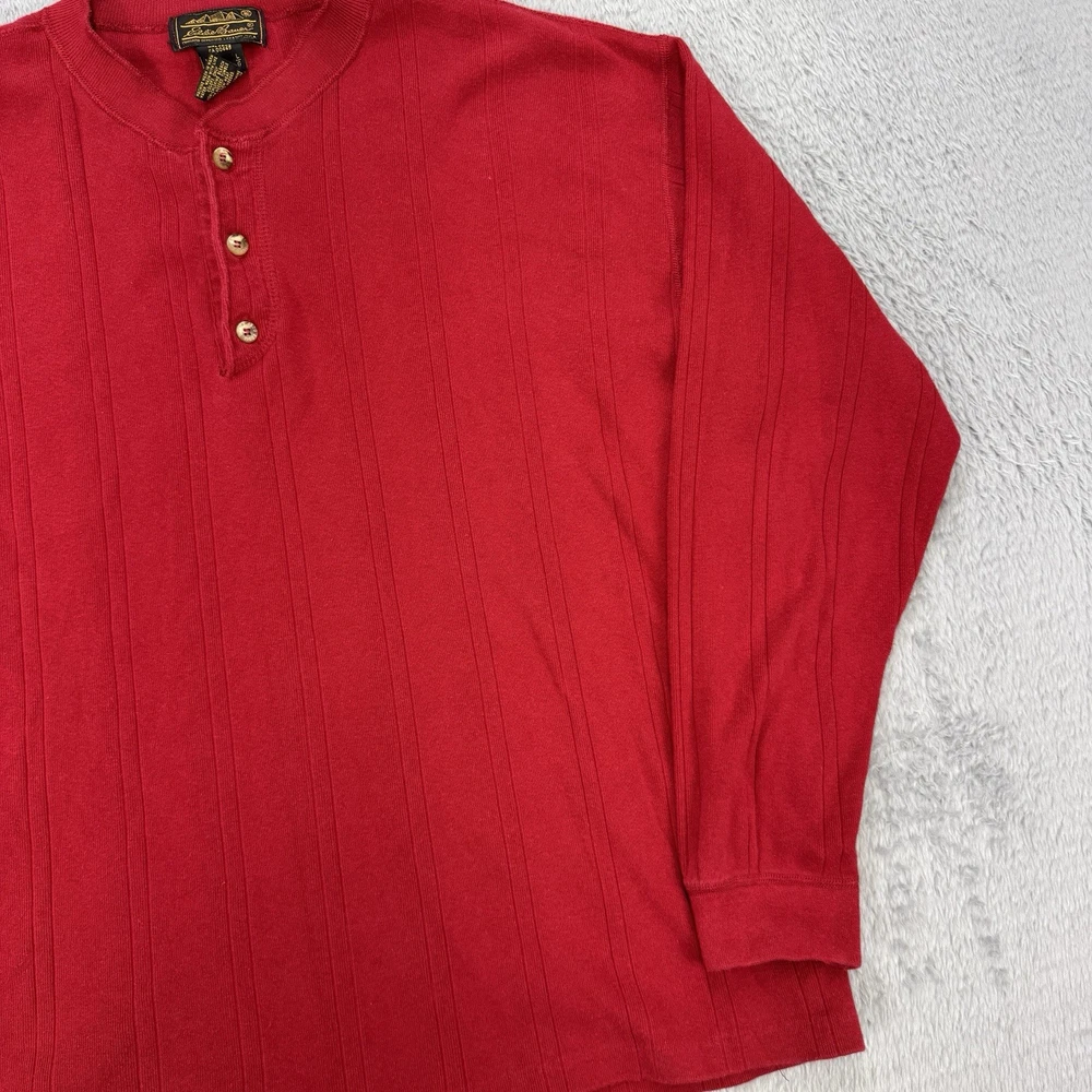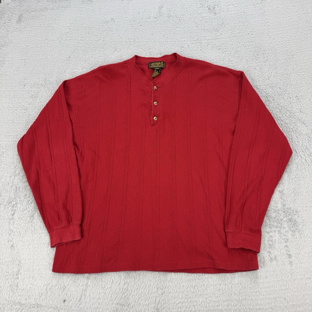 Vintage Eddie Bauer Shirt Mens XL Henley Button Long Sleeve Ribbed 90s USA Red