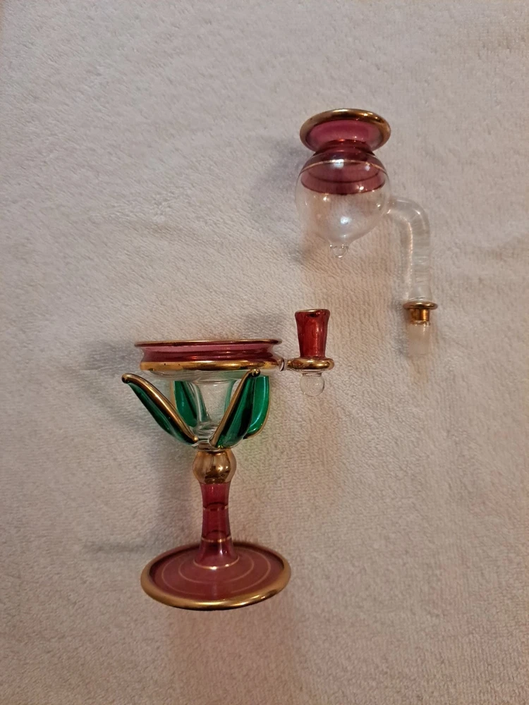 This Vintage Egyptian Hand Blown Glass Oil Burner is a unique and handmade piece that adds a touch of elegance to any space. The colorful glass material gives it a visually stunning appearance, while its intended use for aromatherapy makes it a functional and decorative item for adults' homes. With its brand being Egyptian, this oil burner brings a touch of authentic culture and craftsmanship to any room. I can combine shipping to save you some $$ 🥳