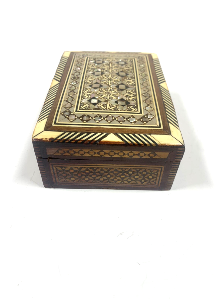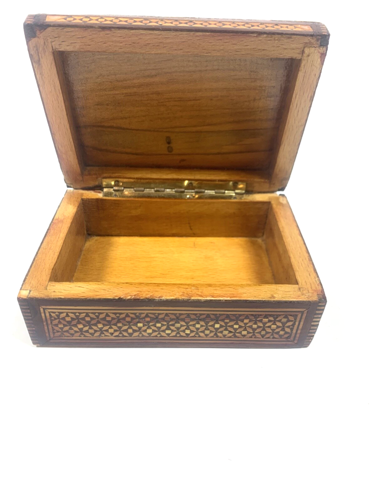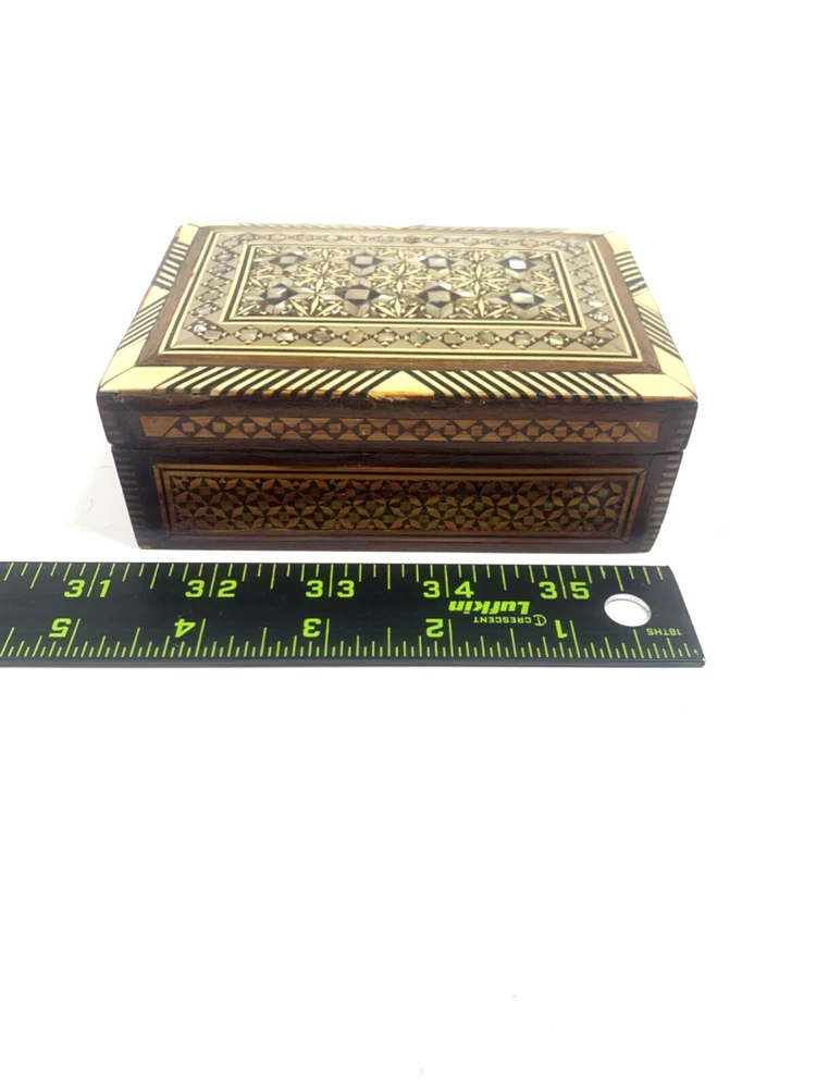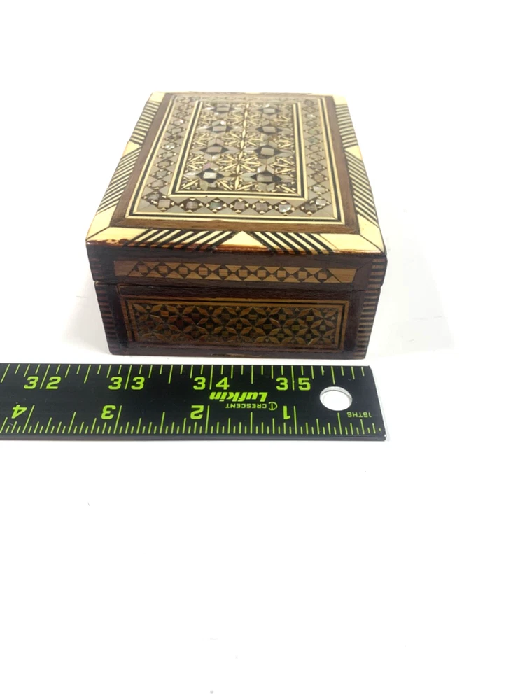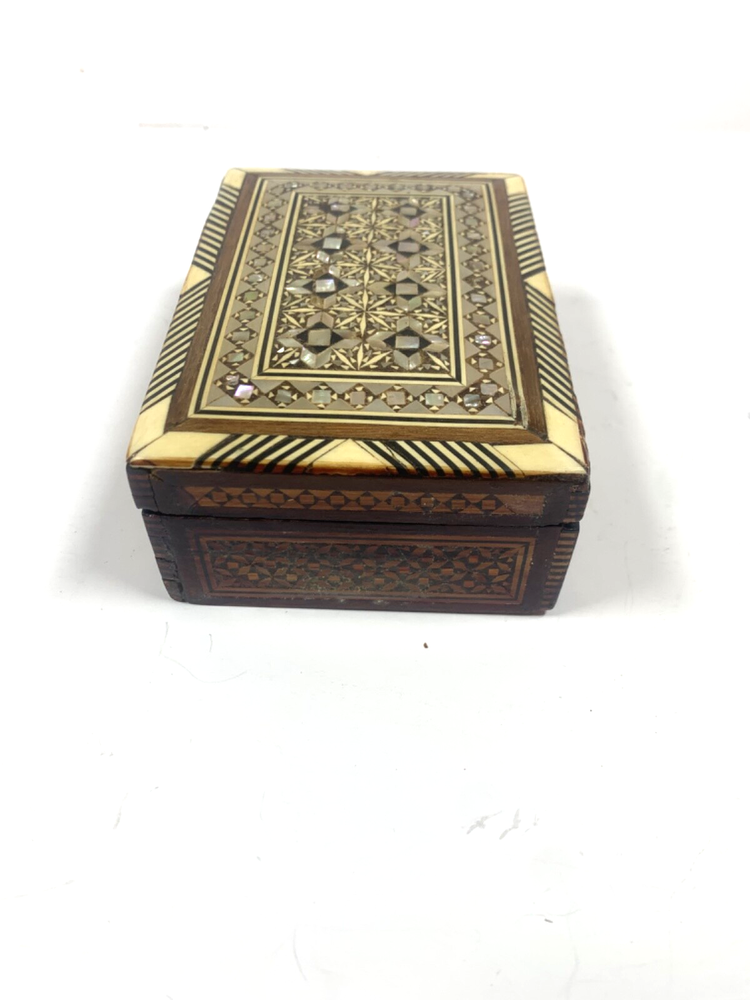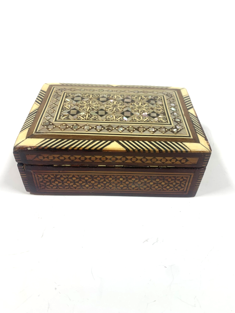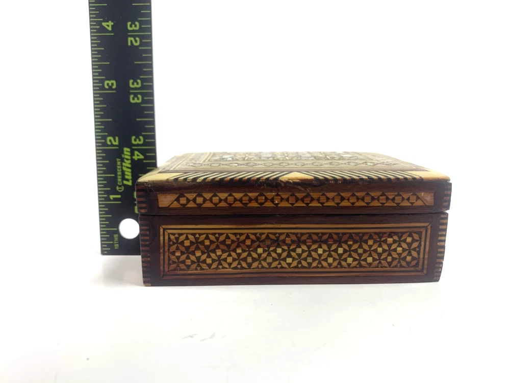 Vintage Egyptian Marquetry Wooden Box with Handcrafted Inlay Design
