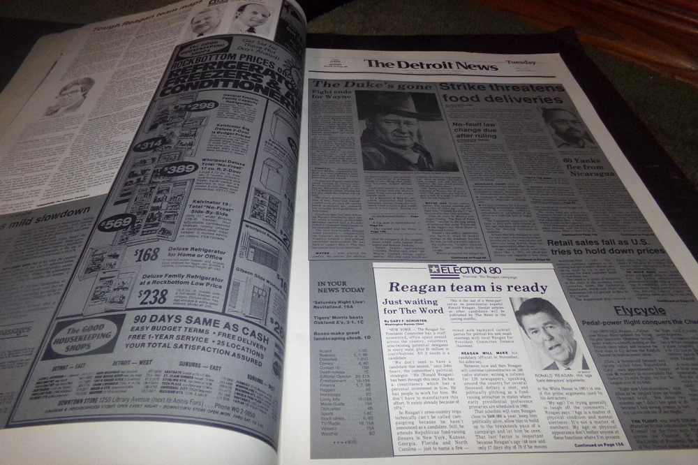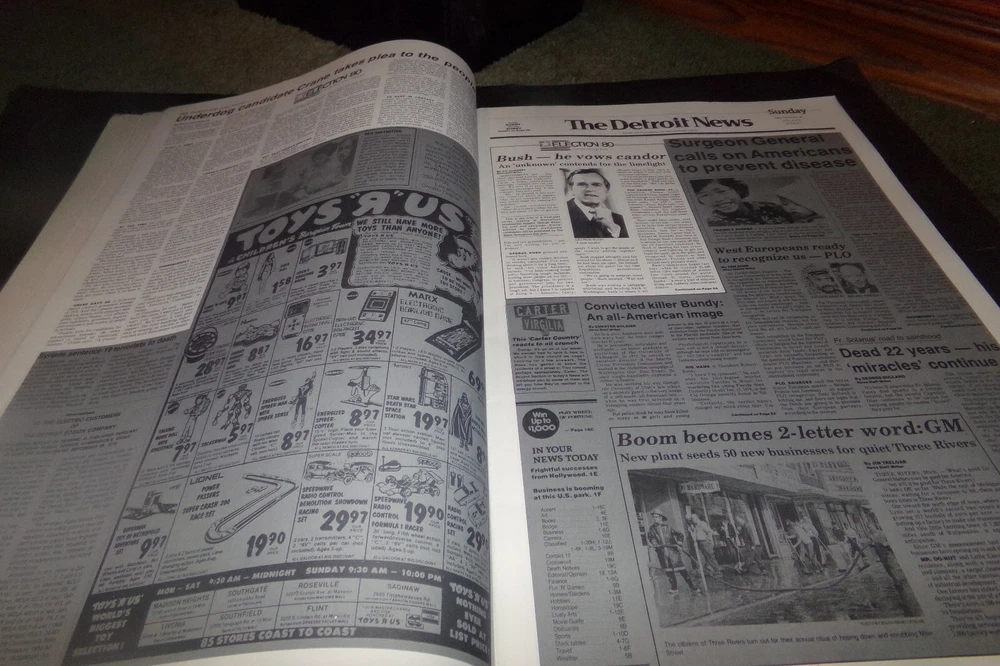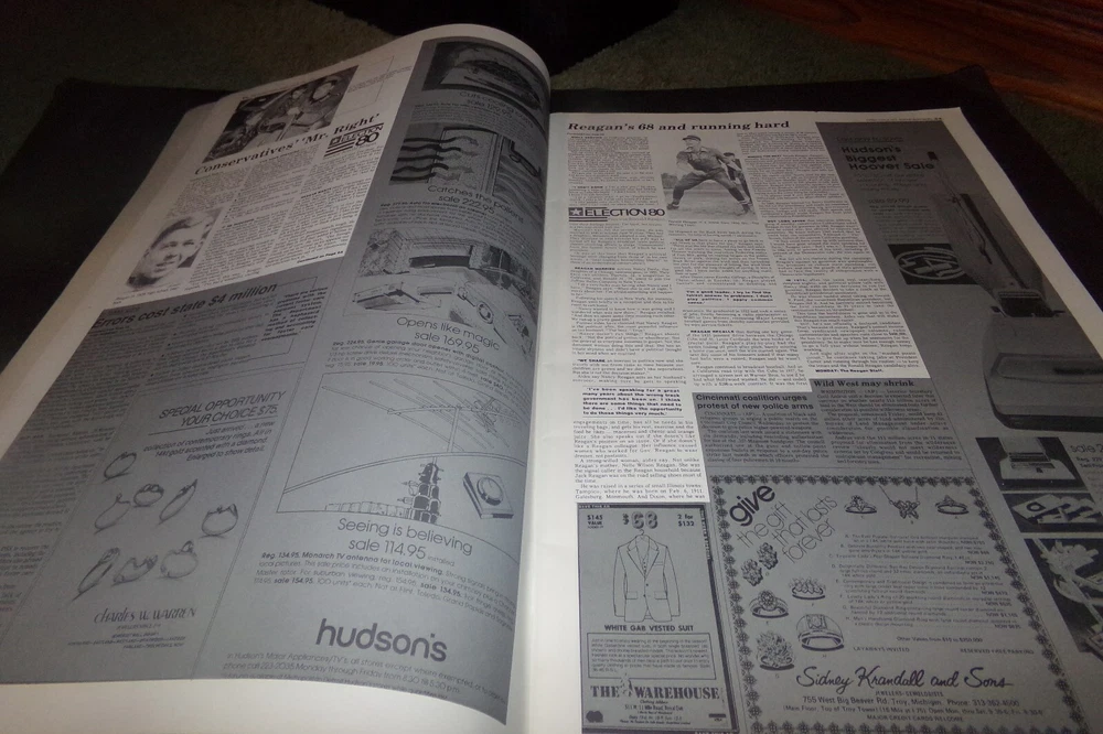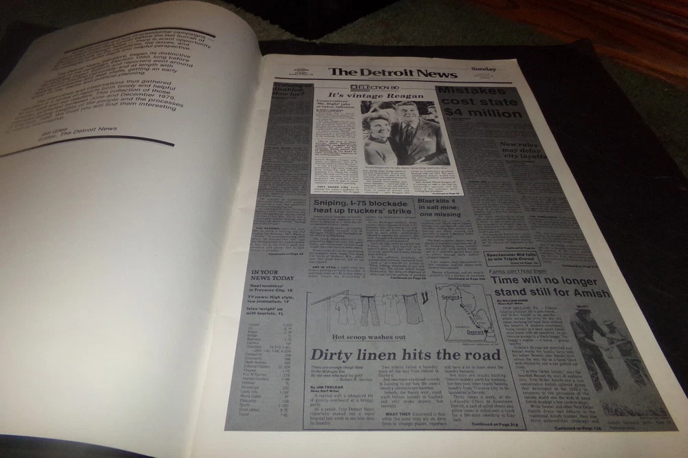 Vintage Election 1980 Newspaper Book reported Detroit News Ronald Reagan + Ad's