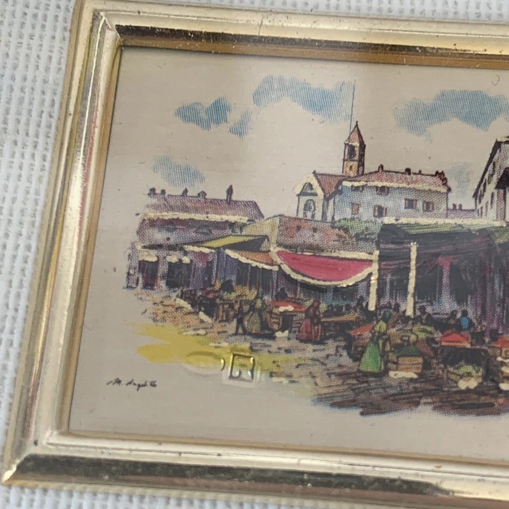 Vintage Embossing On Sterling Silver / Dry Punching Hand Process Italian Scene. Don’t think there is a great age. Please see photos as in used condition to include blemishes on the frame ect. Frame - 10.5 x 9.5 x 1.25 cm Approx Picture - 4 x 3.25 cm Approx