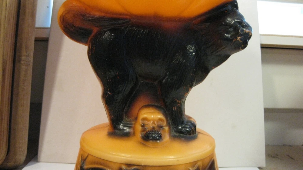 old empire halloween blow mold jack o lantern with black cat witches and skull show light age wear no light cord