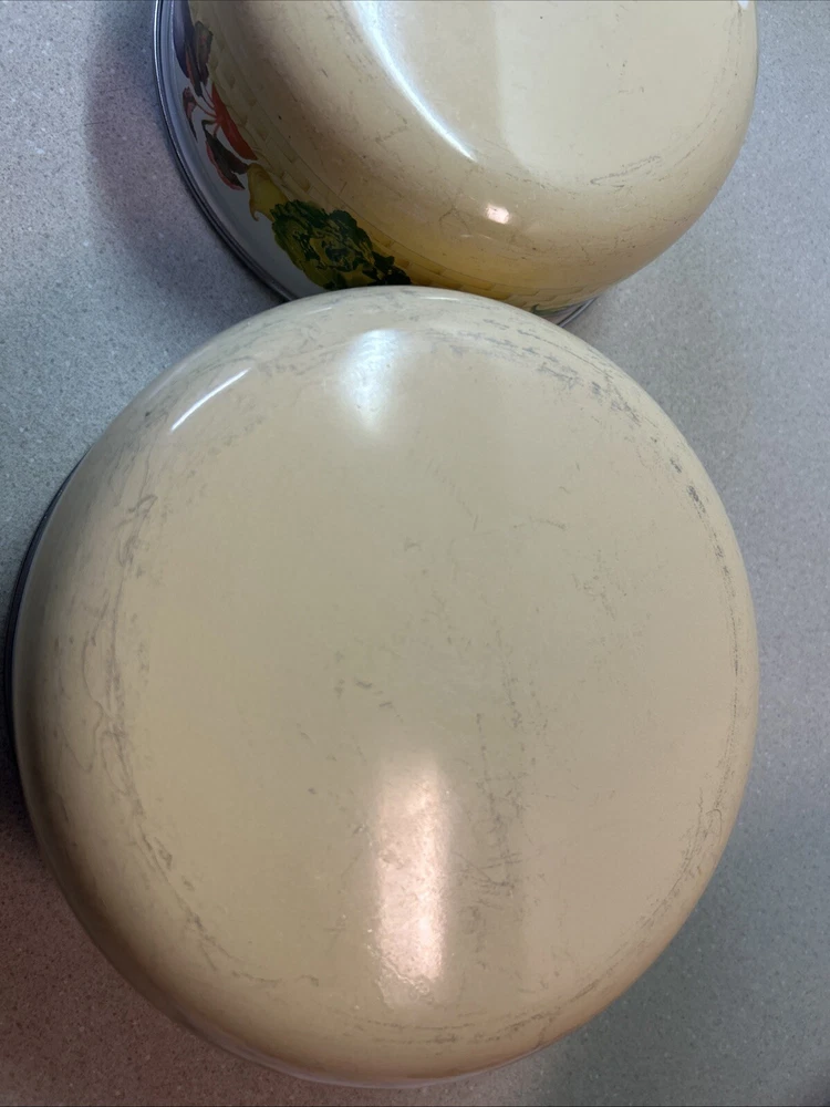 Vintage Enamelware Nesting Bowls Set of 2 Rare Vegetable Basket Pattern. Condition is Used. Shipped with USPS Ground Advantage.