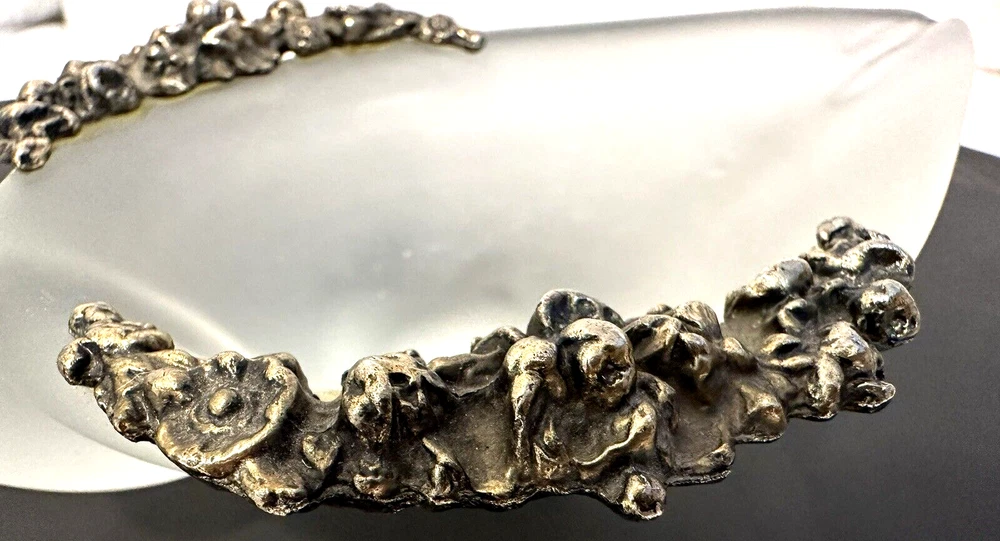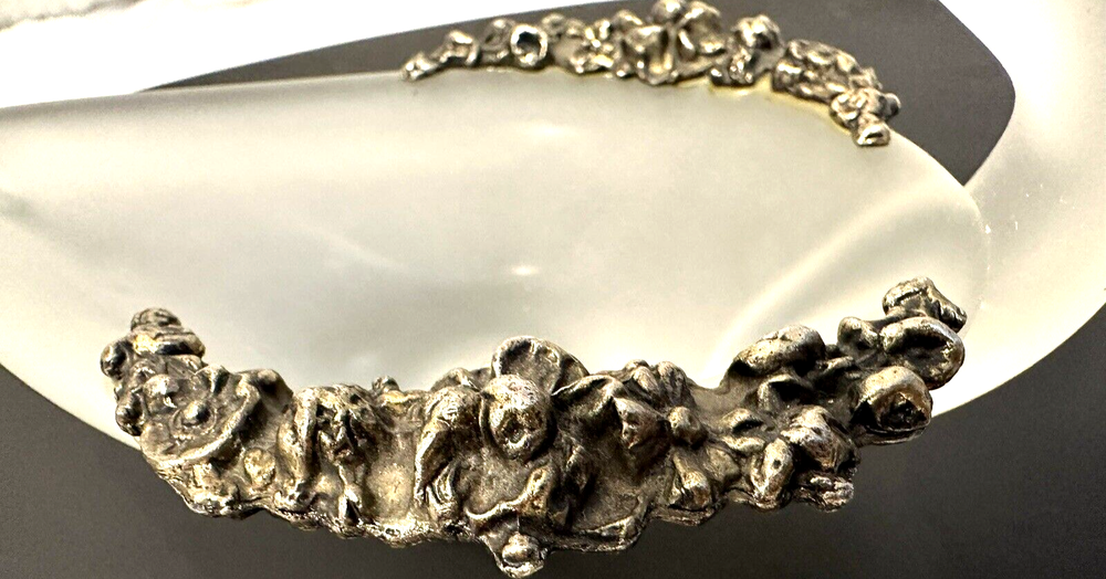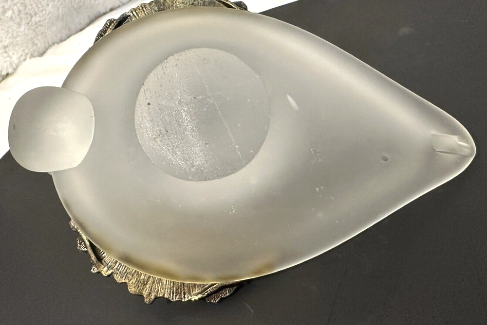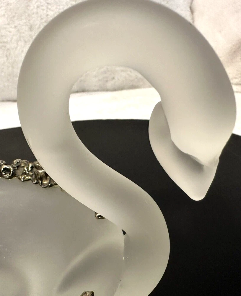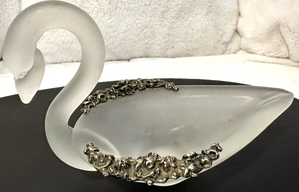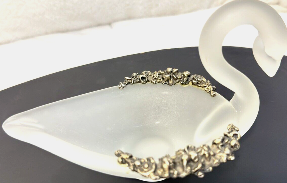 Vintage frosted glass swan in Nesco vanity dish or jewel dish with ornate metal garland accent could be used as an ashtray or soap dish as well or candy dish