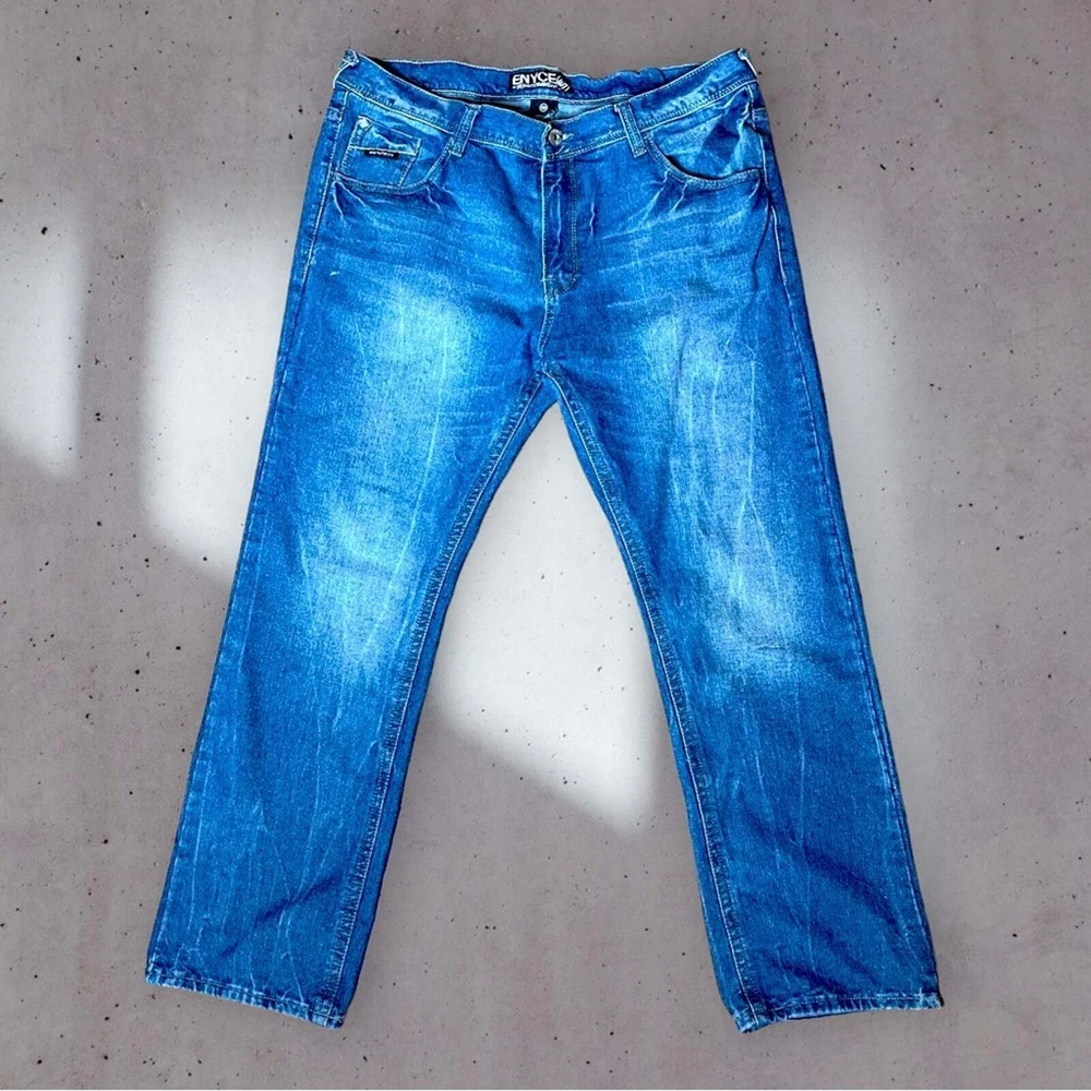 Vintage Enyce Jeans Mens Y2K Denim Faded Straight Leg Size 40/32 Go all the way back in the day with these men’s Enyce Jeans. They’re in really good preowned vintage condition, so pull them on and bump those hits from the 90s. 100% cotton…no stretch Size - 40/32 B8