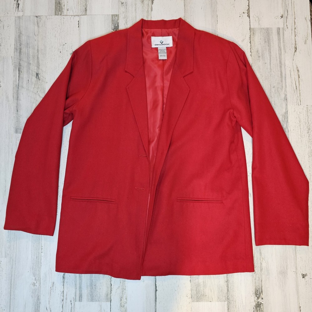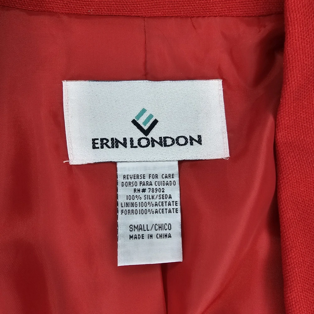 Step back in time with this vintage Erin London 100% Silk Blazer in a bold and timeless red. Perfect for collectors and those who appreciate classic vintage style, this blazer exudes sophistication and elegance. Brand: Erin London Size: Small (fits oversized, see measurements) Material: 100% Silk (Lining: 100% Acetate) Color: Red Features: Single-breasted design Notched lapel Fully lined Two front pockets Extra button included Made in: China This blazer is a classic piece of fashion history, ideal for pairing with modern or retro outfits. Whether for a vintage collection, casual wear, or professional settings, this Erin London blazer stands out. Measurements: Chest (pit to pit): Approx. 20 inches Length (shoulder to hem): Approx. 29.5 inches Sleeve (shoulder to cuff): Approx. 24 inches Condition: This vintage blazer is in excellent pre-owned condition with no noticeable flaws. Please review all photos carefully for details. #VintageFashion #RetroBlazer #ClassicStyle #ErinLondon #100SilkBlazer #TimelessChic #BoldRedJacket