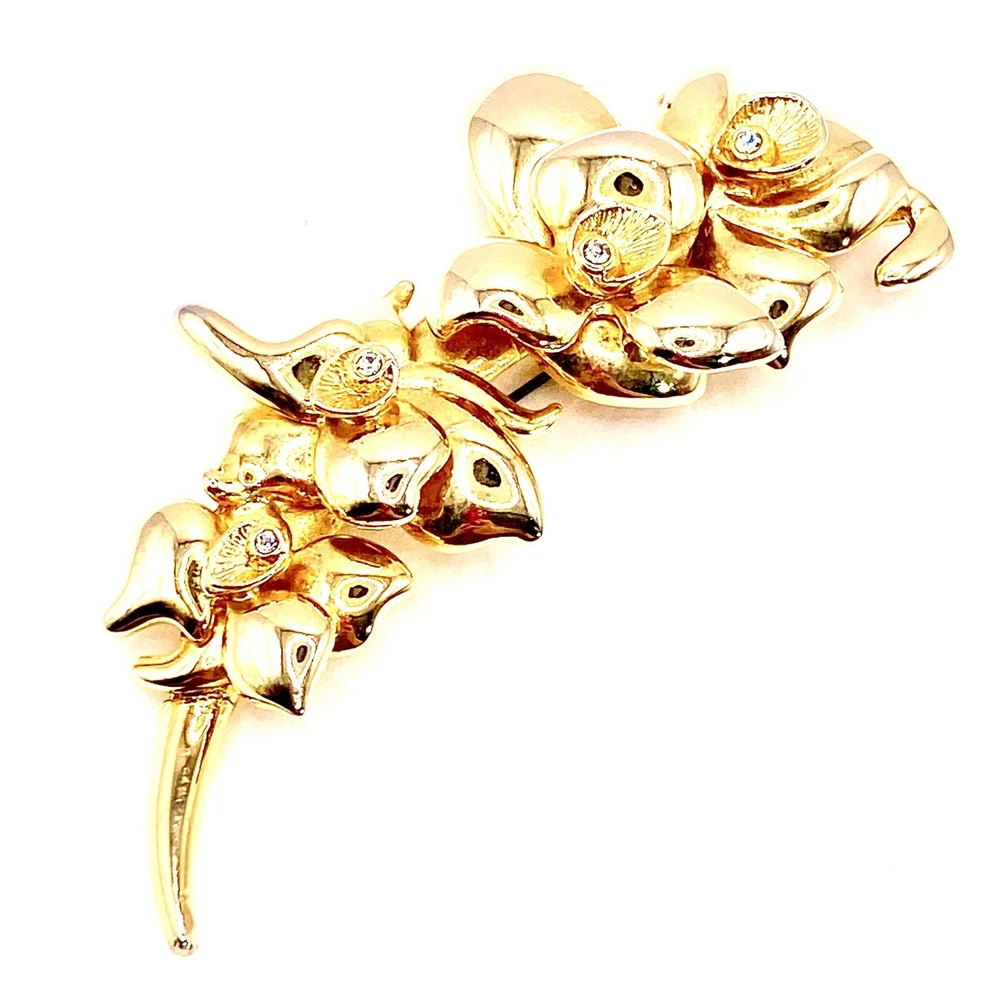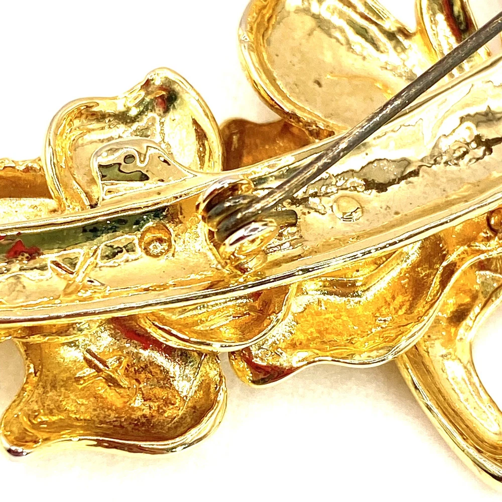 This vintage Estate brooch is a stunning piece of jewelry that will make a statement in any collection. The intricate design features delicate flowers and lilies, with sparkling crystals that catch the light beautifully. Measuring at 4 inches in length, this brooch is perfect for any occasion, whether it be a special event like a wedding or graduation, or an everyday accessory. The piece is made of gold-tone metal and has a beautiful brilliance cut to the crystals. The brooch is eye-clean and has excellent cut grade. The Estate brooch is a perfect addition to any fashion jewelry collection and is sure to impress. This brooch is in excellent condition! This is a pre-owned piece. It may cleaning. There may be scratching, chips, normal weavr, missing stones, etc… See Photos. If you have any questions, please feel free to contact me via eBay messaging. Thank you for stopping by. Make sure to check out other items in my store. Your satisfaction is my priority! Have a wonderfully blessed day!. Your satisfaction is my priority! Have a wonderfully blessed day!