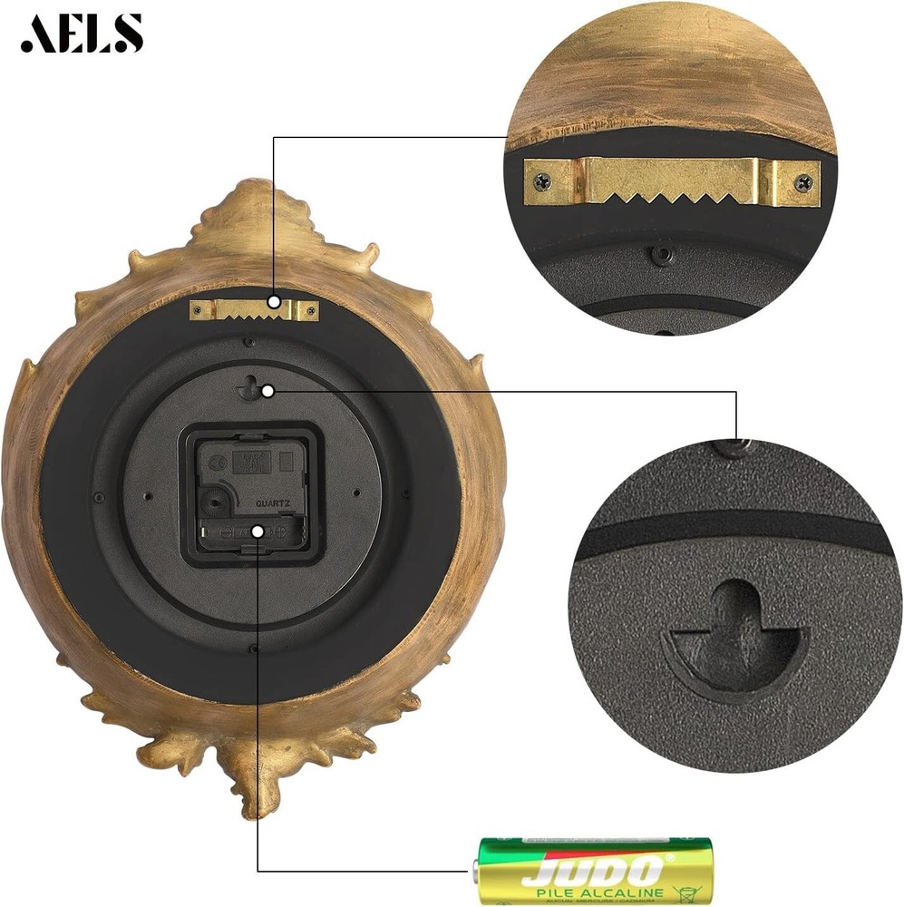 [Elegant and Generous] Fabulous home decorations need a vintage ornament to add more exquisite and art vibe! Our vintage clock features a ornate clock case accented with detailing. The antique looking clock face features Roman numerals and easy-to-read black clock hands. [Decorative Everywhere] Decorate your living room, bedroom, guest room and so on. This lovely accent piece provides more charm and unexpected elegance to your home. [Great Gift Idea] This is also an excellent gift for birthdays, housewarming, Christmas, Thanksgiving day, New Year's Day or other festivals. [Battery Operated] Only Powered by 1 AA battery (included). Please find the battery in the slot of the styrofoam package. [Specification] Material: Resin. Dimension: approx. 13.6*10.8*2.5 inches. Easy and safe to hang on walls.