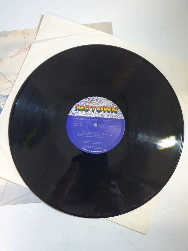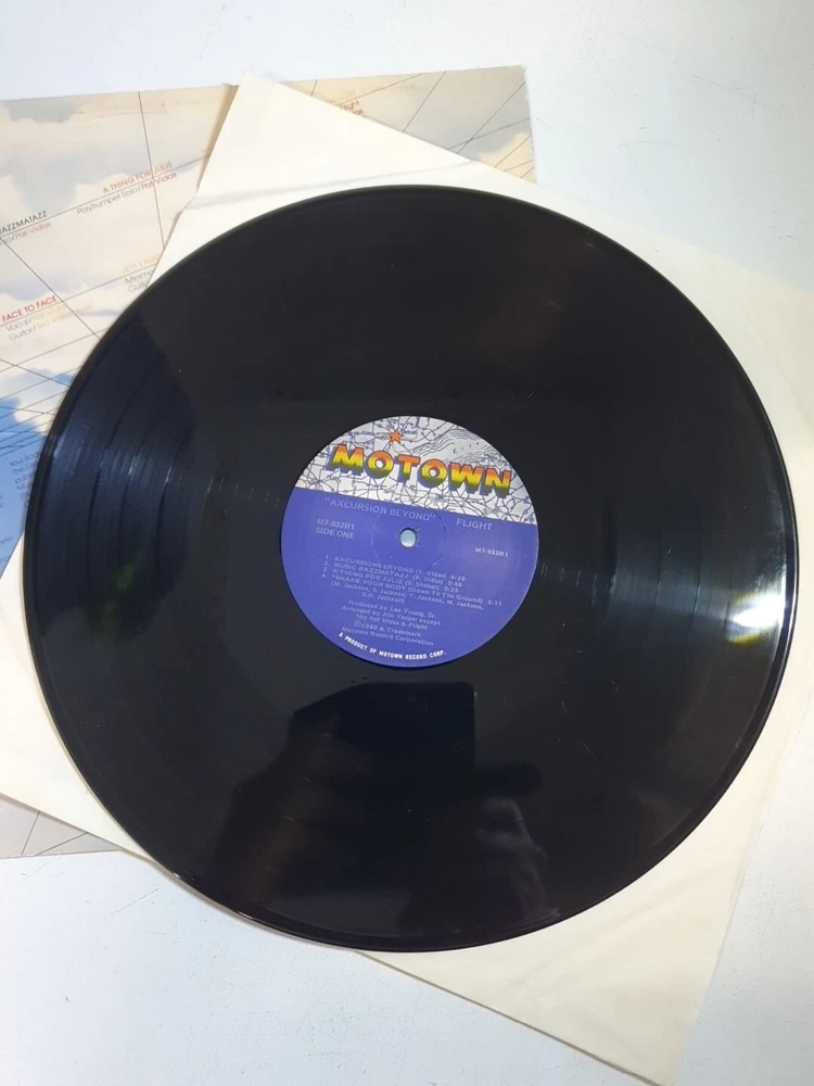 This vinyl record by Flight titled "Excursion Beyond" is a must-have for any jazz funk enthusiast. With a speed of 33 RPM and released under the Motown label, this album is a classic from the 1980s. The cardboard sleeve case type and original cover features add to the collectability of this LP. The vinyl grading is Excellent (EX) and the sleeve grading is Very Good Plus (VG+), giving assurance of high-quality sound and a well-preserved cover. The record size is 12" and the edition is an album, LP. The release year is 1980 and the language is English. This vinyl record is perfect for any occasion and will make a great addition to your music collection.