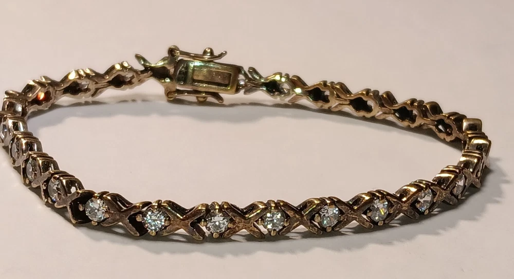 Vintage FAS 925 Sterling Silver Cz Tennis Bracelet 7.5½ XO