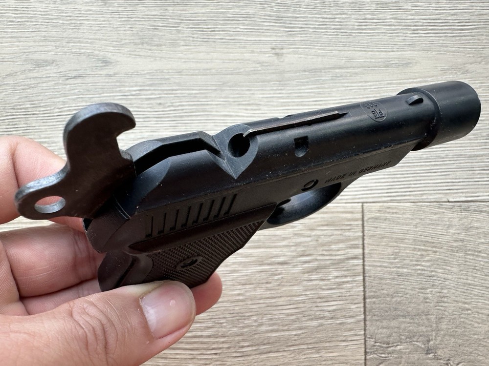 Excellent condition, The Record Weinberg 6mm Signal Pistol, a compact, single-shot launcher designed in Germany. It is commonly used as a starter pistol for sporting events, for wildlife control, or as a signal and animal deterrent device during outdoor activities. Key Specifications and Features Model Name: Record Weinberg (sometimes referred to as the "Bird Bomb" shooter). Caliber: 6mm (.22 blank) crimped cartridges. Function: It utilizes the energy from a 6mm blank to launch 15mm pyrotechnic projectiles, such as signal flares, whistle cartridges, or explosive "bird bombs". Design: It features a single-shot mechanism with a plastic grip and a 15mm launcher cup integrated into or attached to the barrel. Markings: The pistol is marked with "FB Record," "Cal. 6mm," and "Weinberg u. Signal Pistole". It also bears the "PTB 113" mark, which is a German technical certification. Feel free to ask any questions about the item. You may have. Please see the photos for your best judgment. The item pictured is the one you will receive.