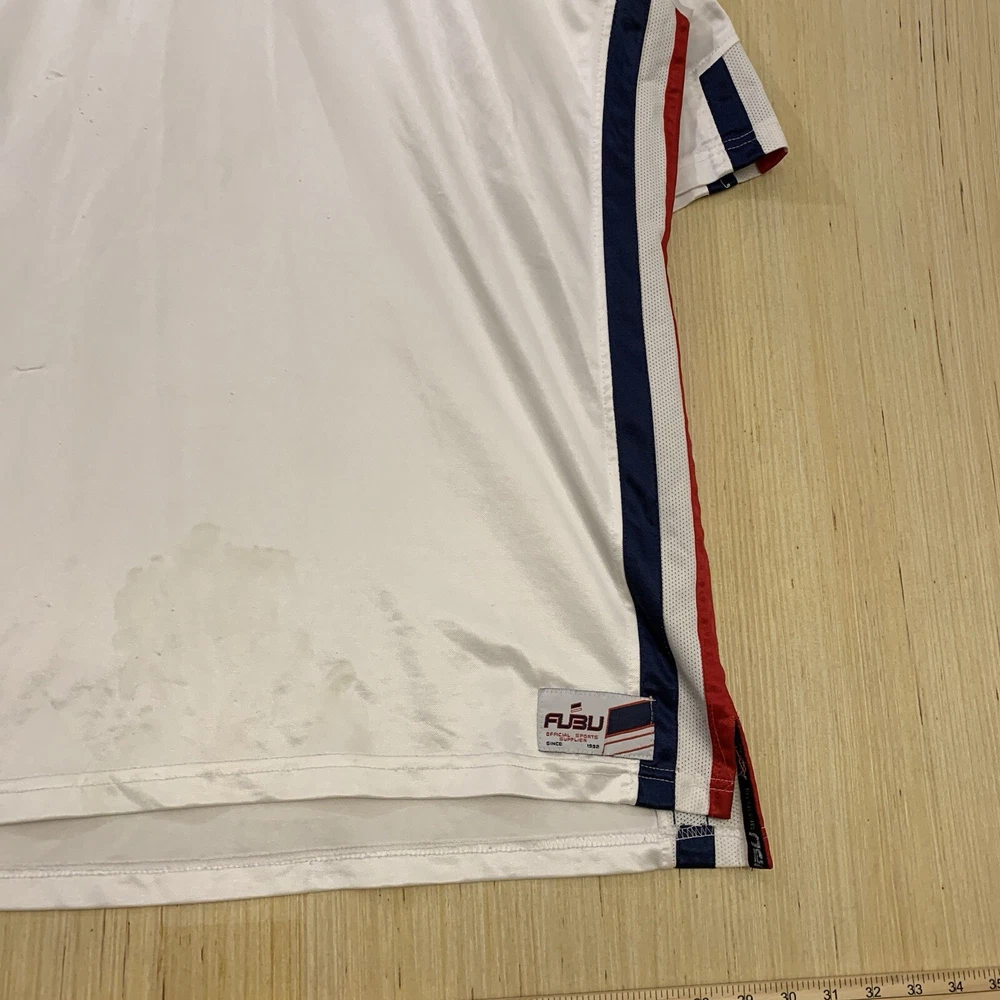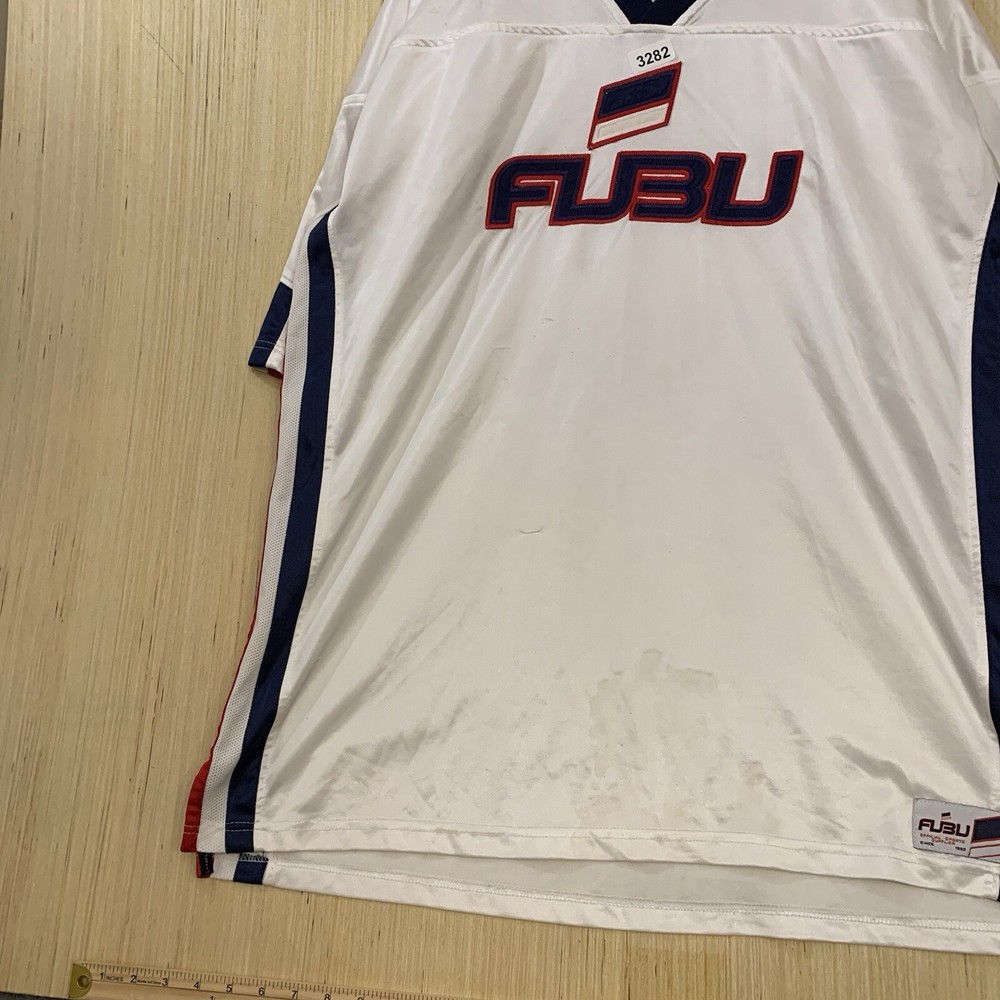 This vintage FUBU jersey is a must-have for any 90s football fan. The white cotton material with a solid pattern and short sleeves is perfect for a casual look. It features a crew neck and a regular size type for men. The jersey is made of high-quality cotton fabric, ensuring comfort and durability. The FUBU brand adds a touch of style to this classic piece. Get ready to show off your love for football with this iconic jersey.