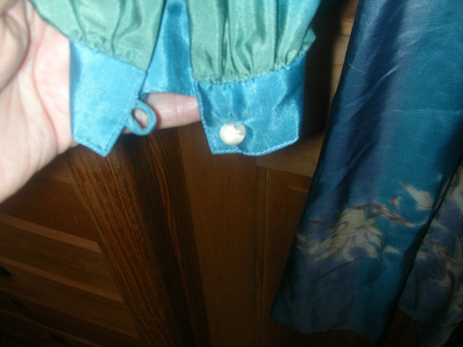 Style: Empire Color: Blue Fabric Type: silk Department: Women Material: 100% Silk Neckline: Collared Size Type: Regular Season: Fall Size: S Condition: I am not sure if this dress has ever been worn as it still has a large extra pearl button attached to the neck label . Dress looks to be in excellent condition - just need a pressing. All returns accepted: ReturnsNotAccepted Brand: Fanny Buss Sleeve Length: 25" Occasion: Party/Cocktail Pattern: Hand printed - Floral Vintage: Yes Dress Length: Midi