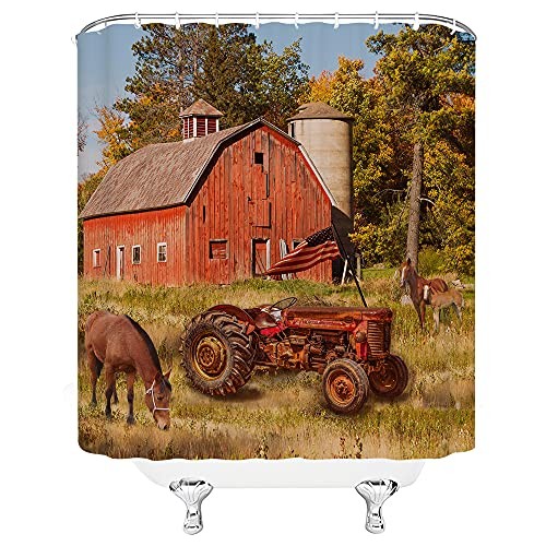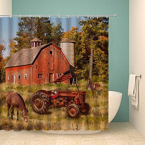 Absolutely love this farmhouse-style shower curtain! The vintage truck and patriotic design add a cozy, rustic charm to my bathroom. The colors are vibrant, the material is thick and water-resistant, and it fits perfectly with plastic hooks included. Super fast shipping and great quality—feels like a premium upgrade without the high cost. Perfect for anyone who loves country or farmhouse décor!