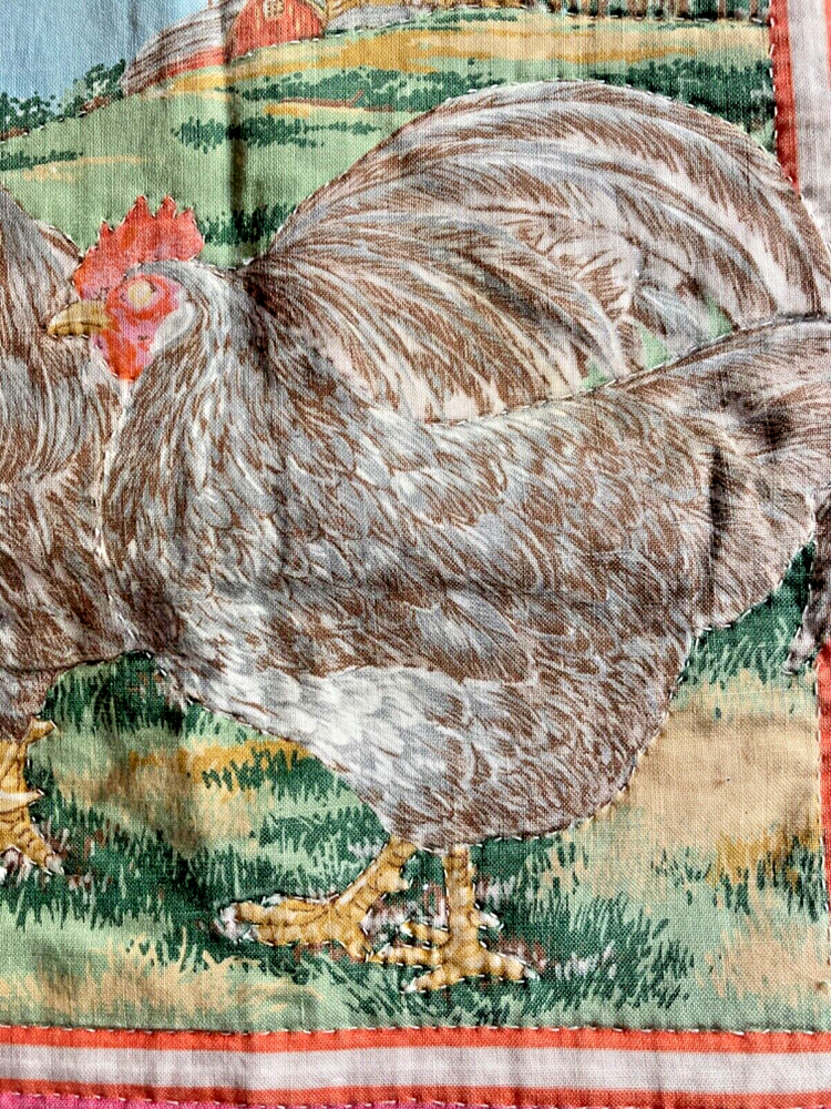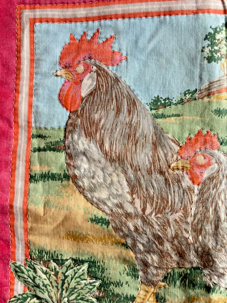 Fill Material:No FillerColor:VariedFeatures:Printed ImagePattern:ChickenStyle:FarmhouseDepartment:Adults, TeensSeller Notes:“Gently sun faded, hand stitched around birds, condition very good”Shape:SquarishClosure Type:Needs to be closedBrand:HandmadeSize:19 1/4" x 20 1/2"Room:Any RoomSubject:ChickenType:Decorative Pillow CaseTheme:Chicken with Chicken Wire, ChickenMaterial:100% CottonCharacter:Chicken
