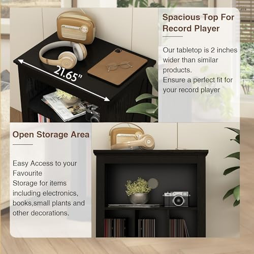 Return Policy Fast Delivery Trusted seller Farmhouse Record Player Stand, 3 Tier End Table, Turntable Stand with Vinyl Record Storage Holds Up to 160 Albums,Wood Record Holder Cabinet Dispaly Shelf for Living Room,Bedroom,Office,Black Product Description Effortless Vinyl Record Storage: Stay organized with designated spaces for your turntable, magazines, and up to 160 vinyl records. The bottom section’s dividers allow you to categorize and keep your collection neat and secure. Ample Storage: The spacious top is 2 inches wider than similar products,which is easily accommodates various sizes of record players, meeting the needs of most vinyl enthusiasts.Whether it’s for a snacks,decorative items or extra audio equipment, the spacious second shelf of this record holder is ready for daily use. Perfect for those moments when you need a bit more space. Plus, this record player stand with vinyl storage can also serve as a small table stand or printer stand, making it a versatile addition to any room. Convenient Cable Management: Say goodbye to tangled wires with the back panel’s cut-out design. Connect your turntable and other devices effortlessly, keeping cables out of sight but within reach. Sturdy MDF Construction & Stable Legs: Engineered with precision using MDF material, this record player stand is durable for your long-term use. The leg design enhances its robustness. Easy to assemble with included instructions and numbered parts. Dimensions: 21.7 x 28.9 x 15.7 inches. Rustic 3 Tiers Record Player Stand: Bring a touch of farmhouse warmth to your living space with the natural wood grain finish. This record player stand isn’t just practical; it’s a decorative element that harmoniously fits into any rustic decor. Shipping Returns Payment Shipping Shipping is FREE to all addresses other than APO/PO boxes in the lower 48 states. All our stock ships from US-based warehouses. Shipped via USPS or UPS (depending on location and package weight) Unless stated otherwise, all orders will ship within 24-72 hours of your payment being processed. Check our feedback to see the great reviews of FAST shipping we offer. Returns Seller does not accept returns Payment We currently accept payment via eBay managed payments only. Once payment is cleared, we will dispatch your shipment within 1-3 business days. Please refer to the "Shipping" tab for more information regarding shipping speed to your destination.