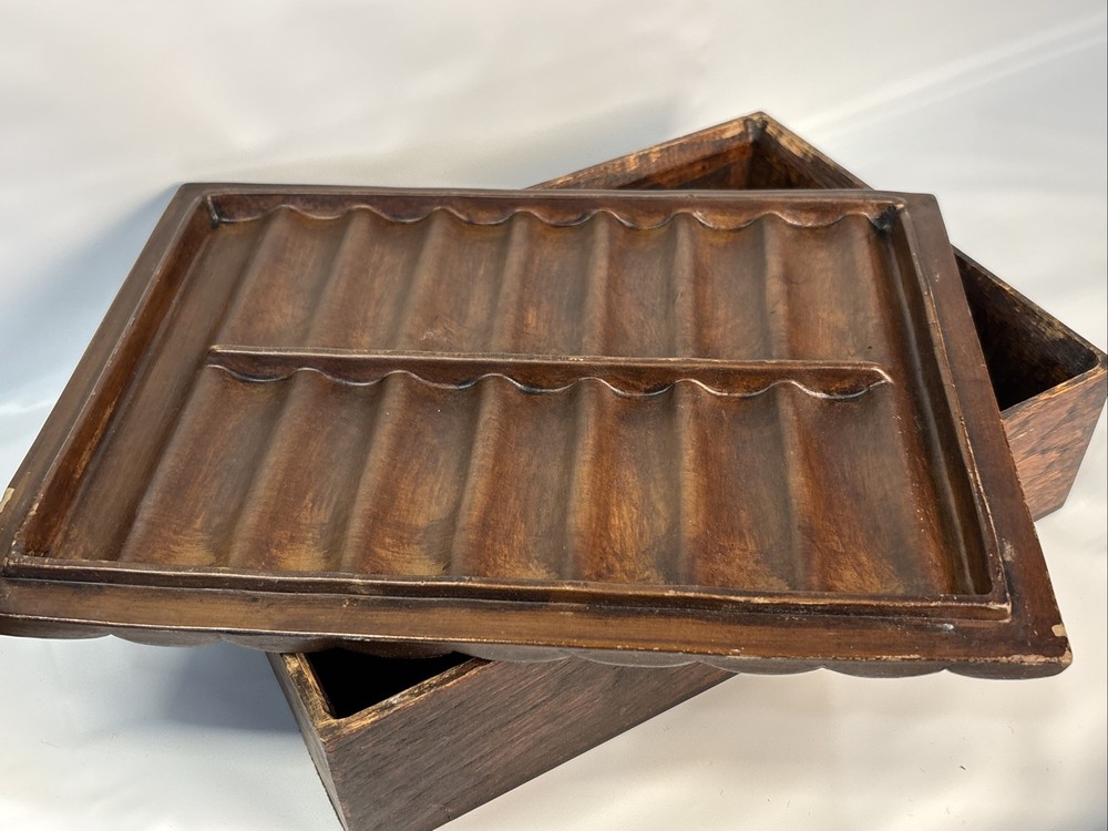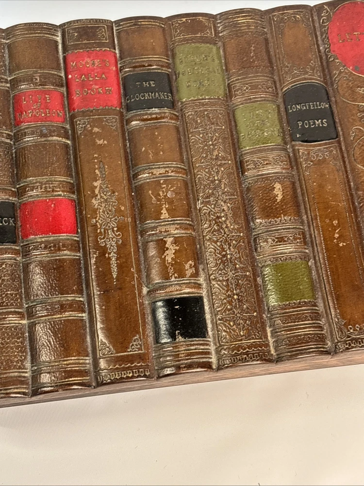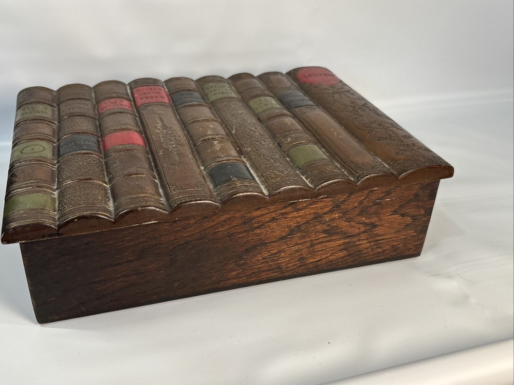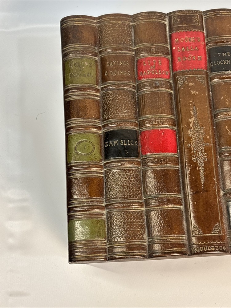 The Vintage Faux Book Spine Box with a rare Firestone top is a unique and charming decorative collectible item. Made of Firestone pottery and wood, this Victorian-style piece showcases a beautifully crafted design that adds a touch of elegance to any space. The boxed feature adds an extra element of interest, making it a standout piece for collectors or those who appreciate vintage decor.