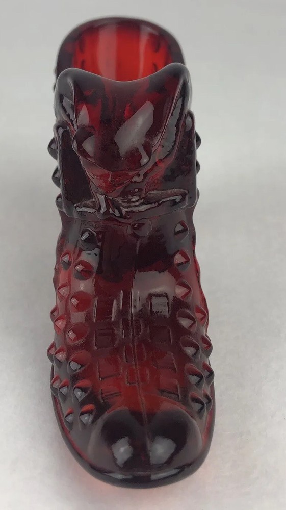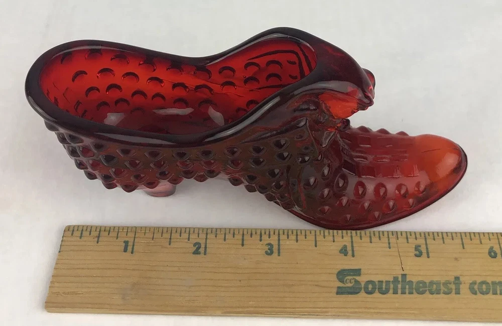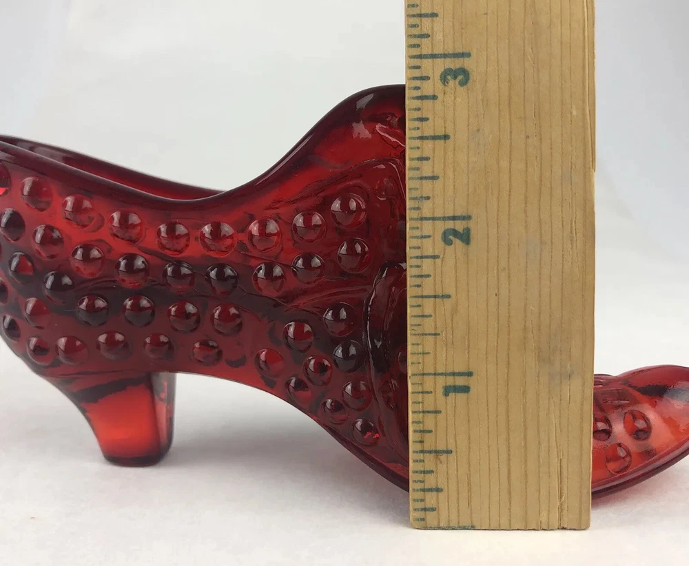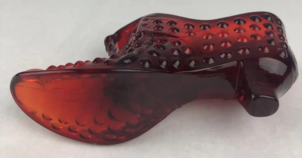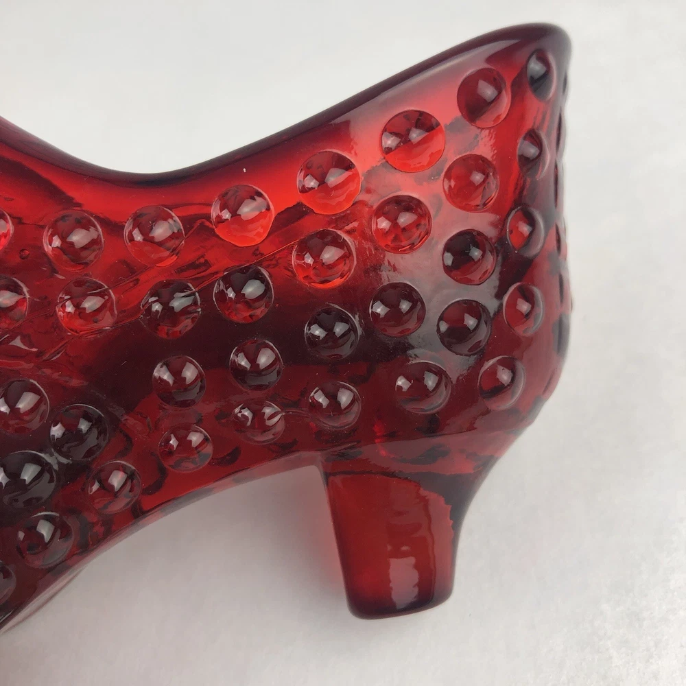 Vintage Fenton Cat Head Slipper ~ Beautiful Ruby Red Hobnail Glass No impressed logo ~ no sticker Measures approx: 3" tall x 5.5" long x 1.5" wide.