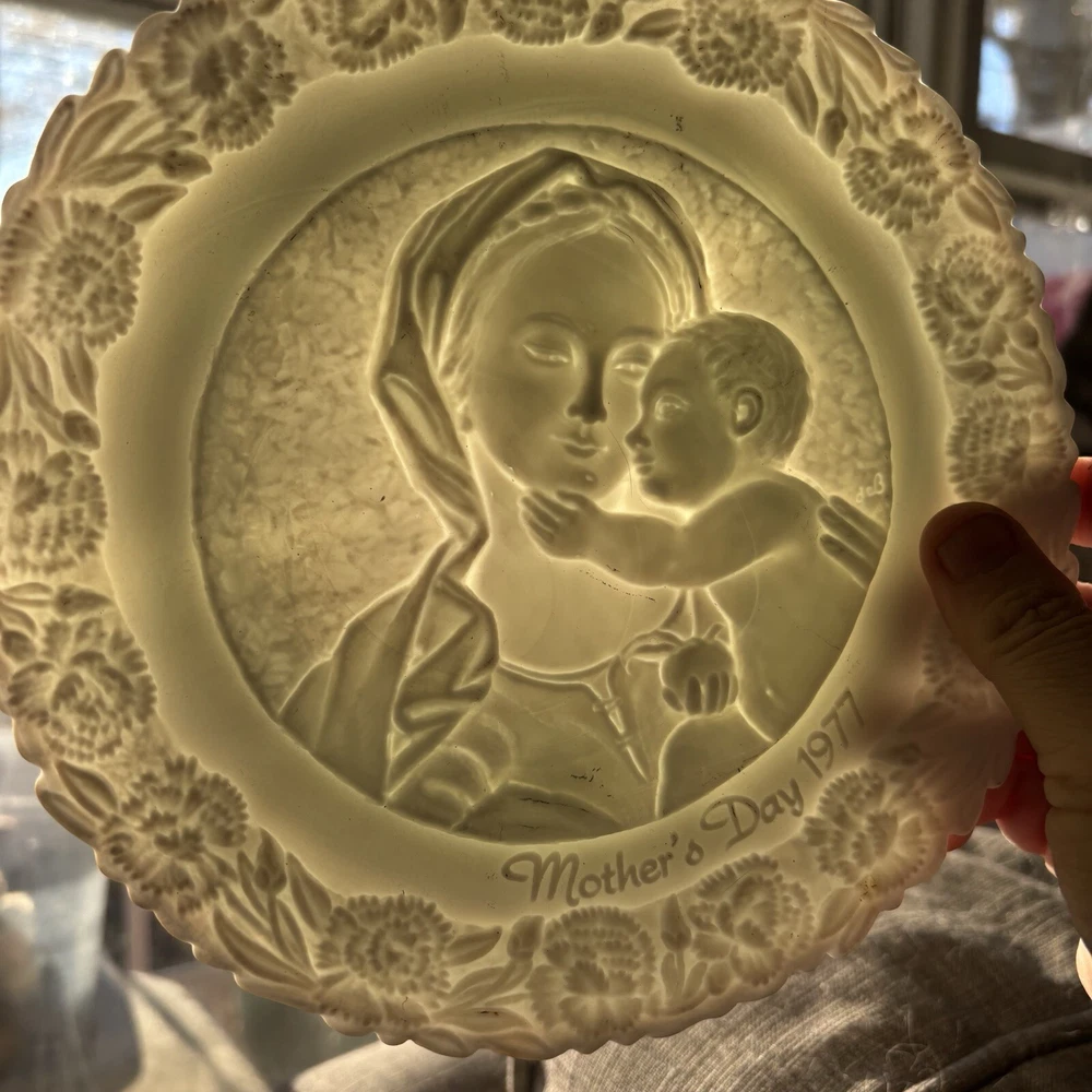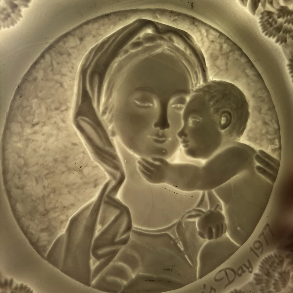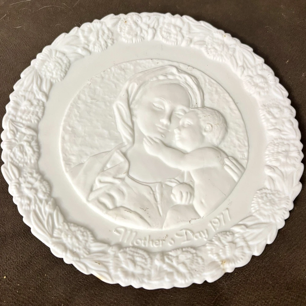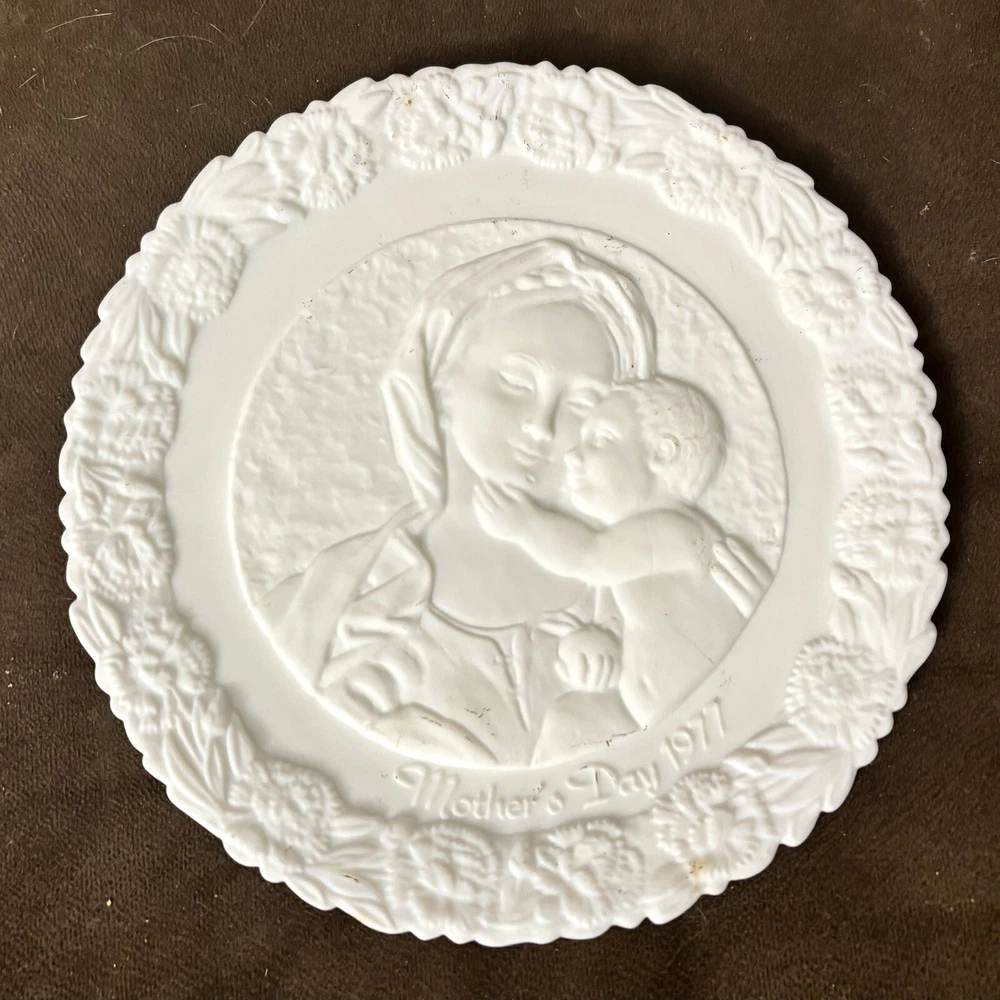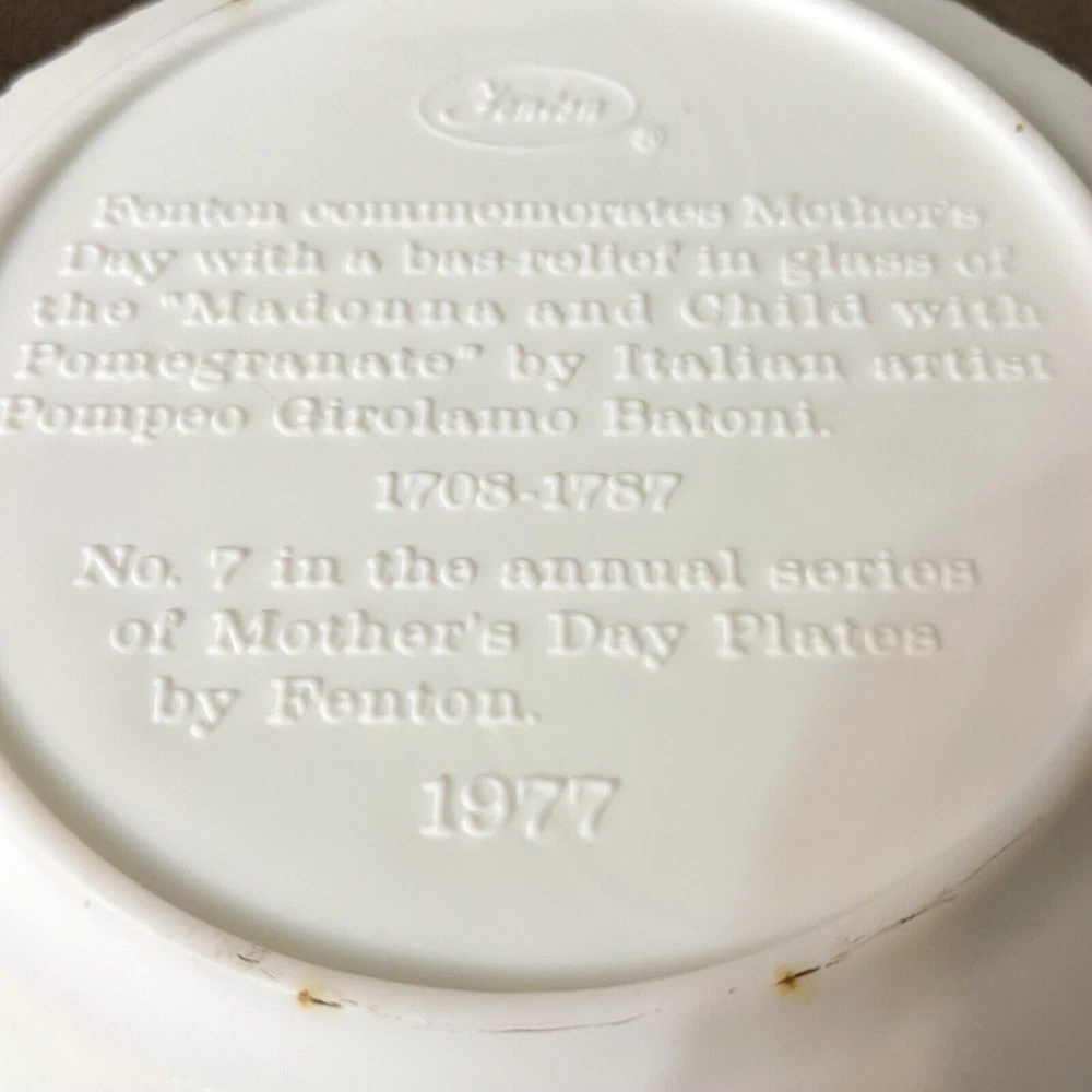 Vintage Fenton Satin White Mother's Day Plate 1977 Madonna and Child Signed