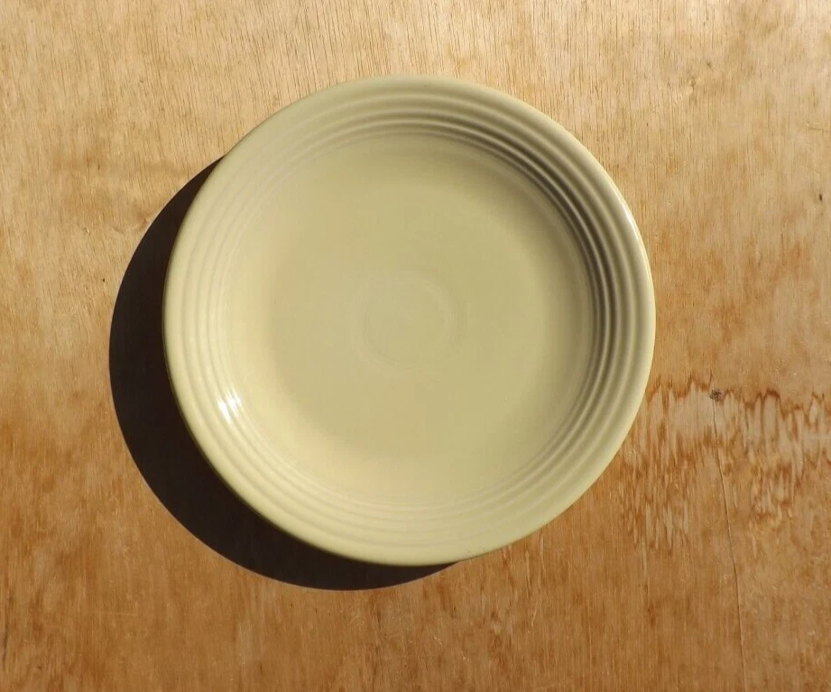 bright yellow.....semi gloss finish....measures 11.75 inches or 11 3/4 inches.......large plate.......use as a charger or to serve cook meats (not recommended to cut on) as well as large meals.......