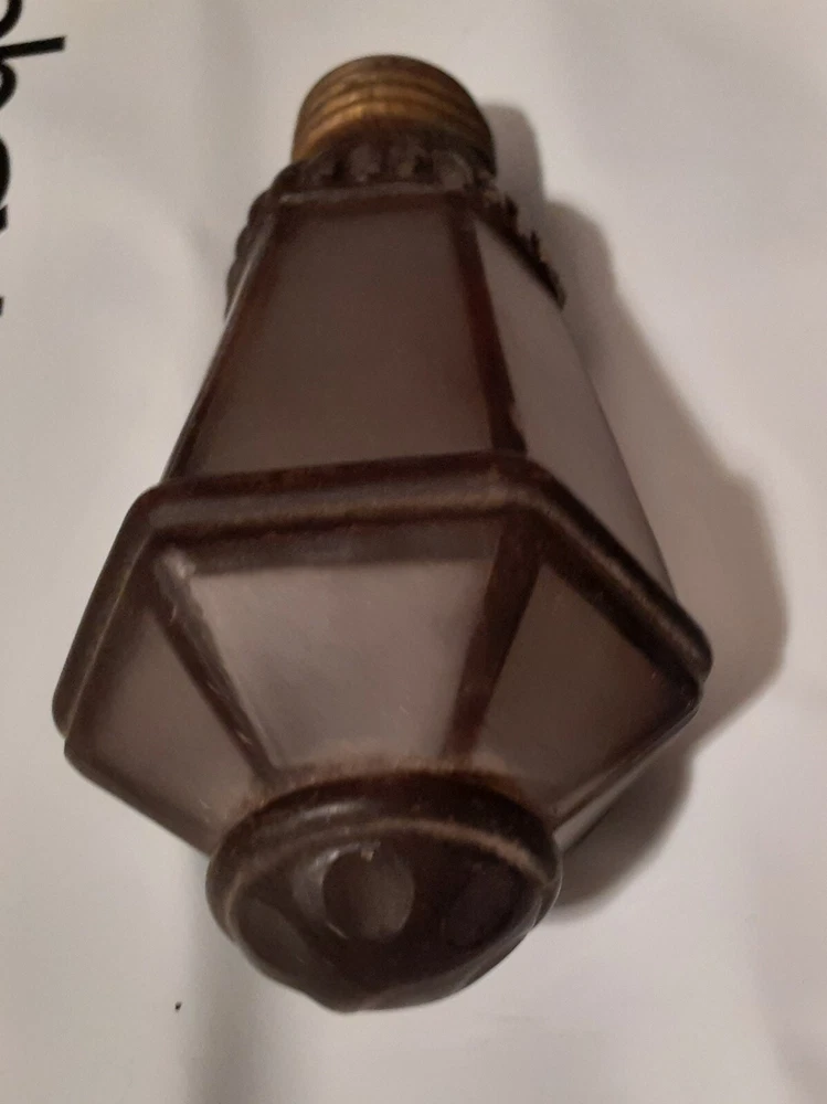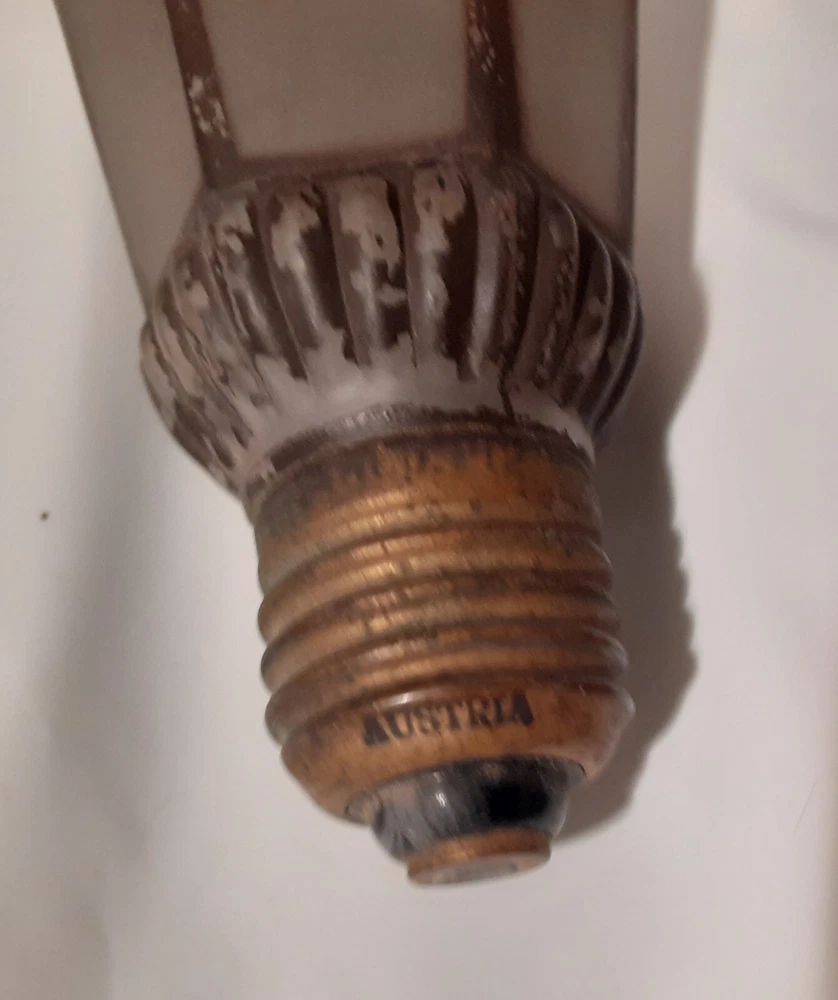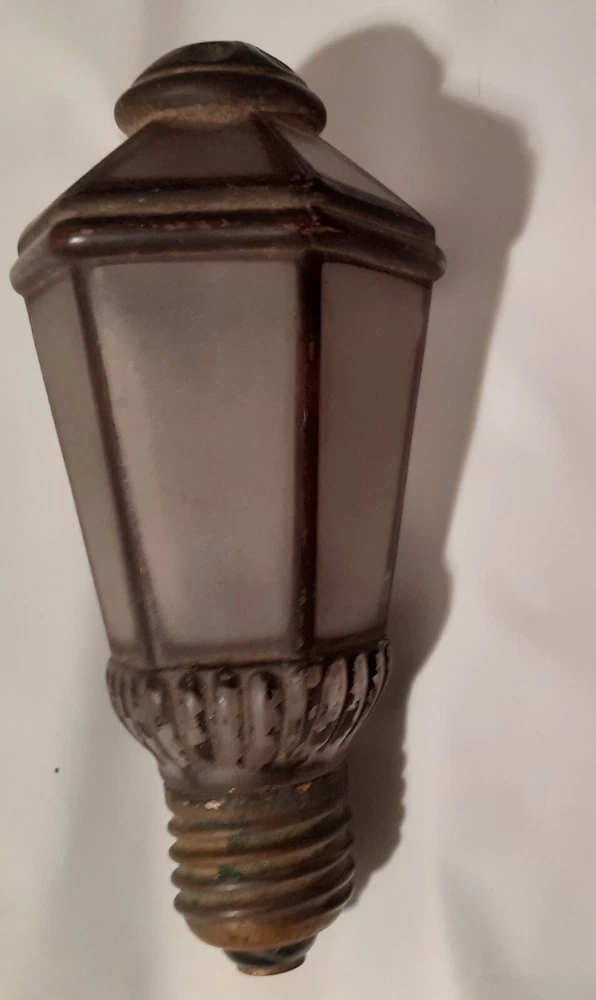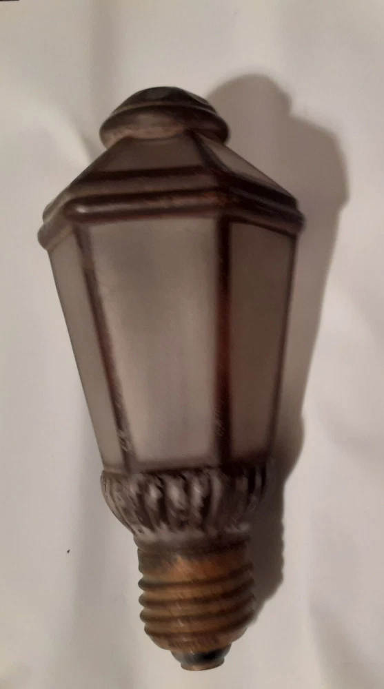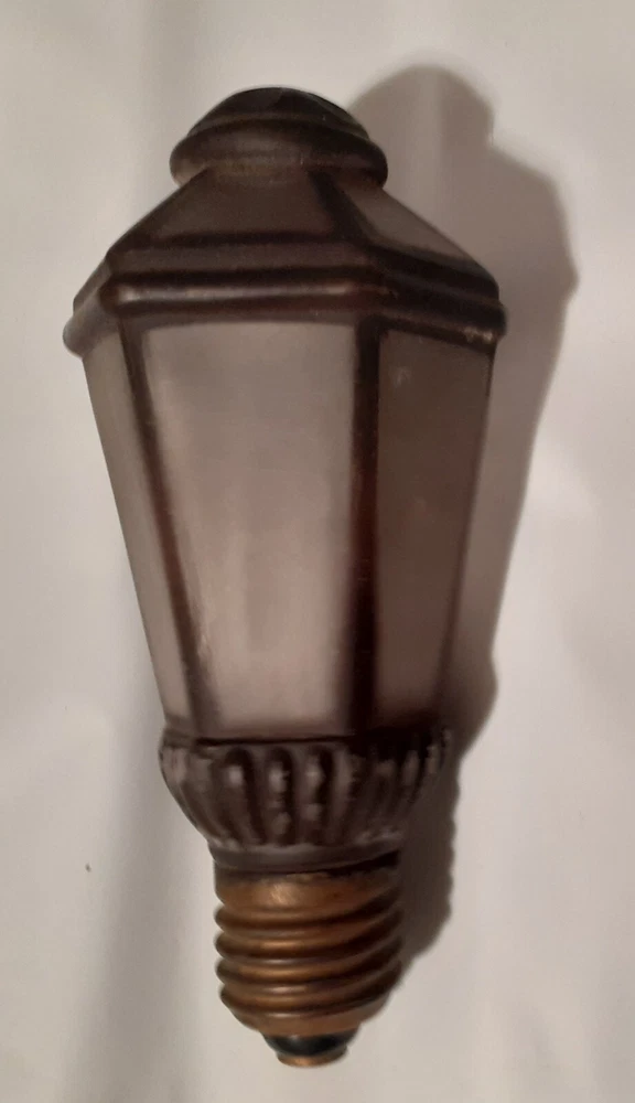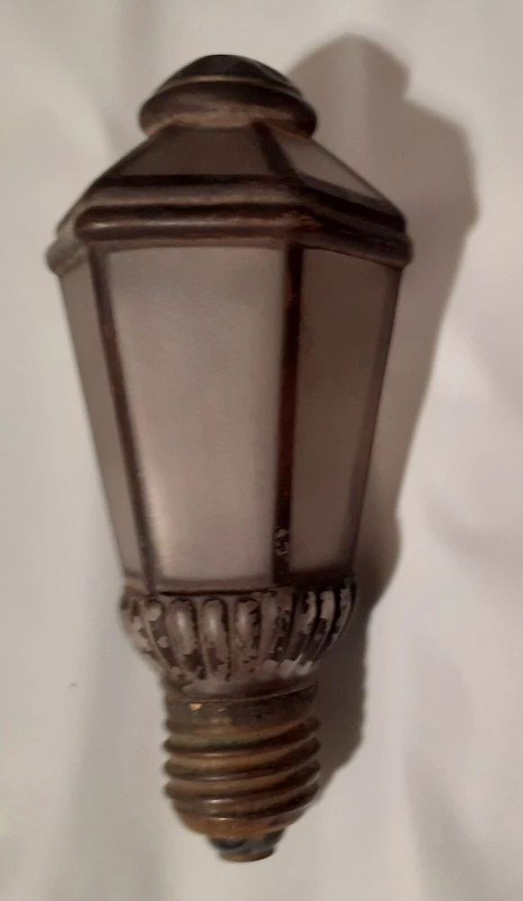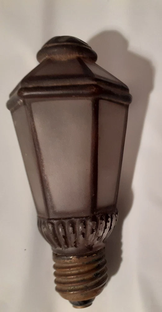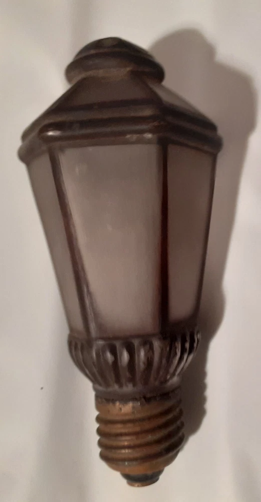 A vintage lantern light bulb marked on the base, Austria, in good used and working condition. About 5" tall. See many photos for complete description and condition.