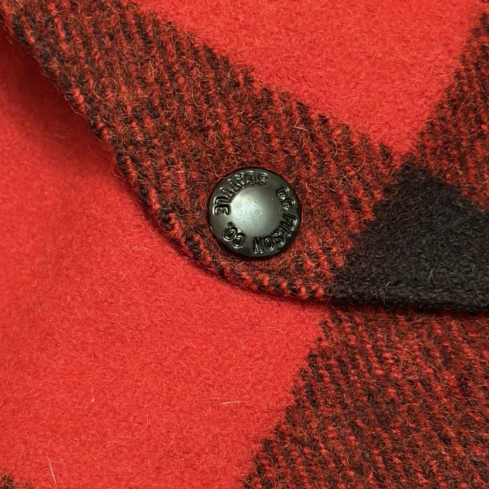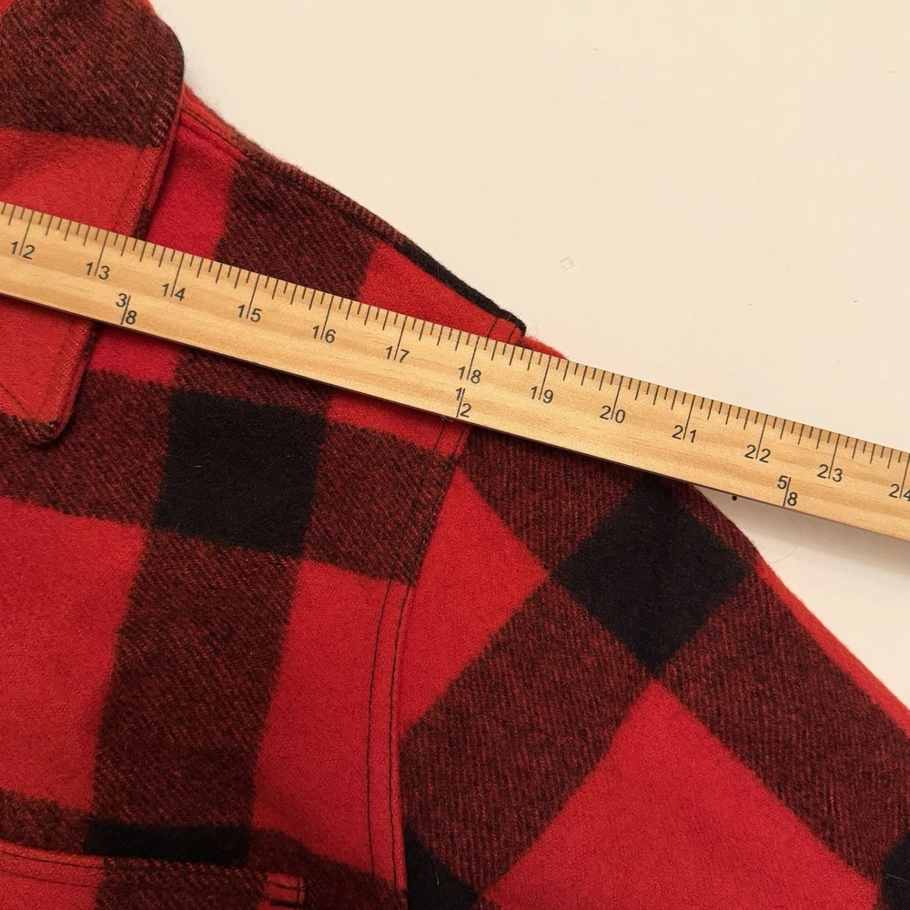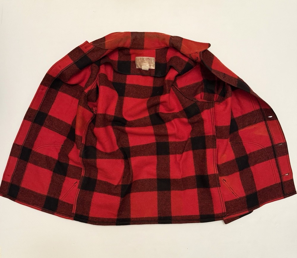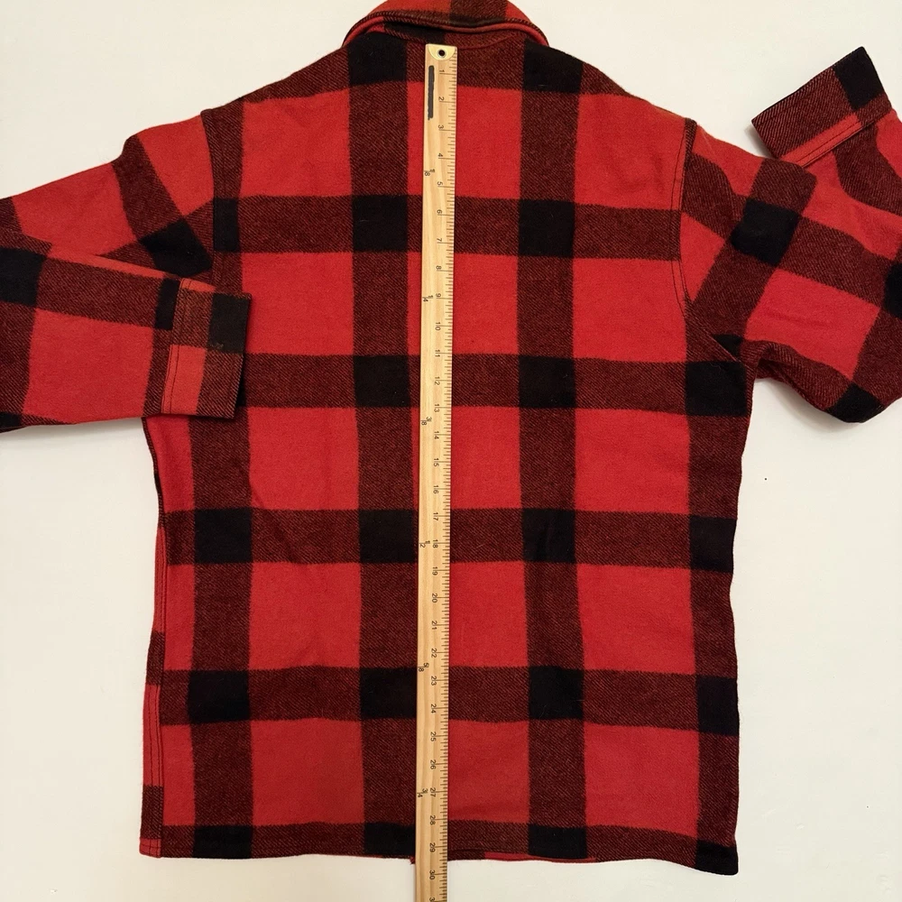 Authentic Filson Mackinaw wool jacket in the iconic red & black buffalo plaid. Made from 100% virgin wool, this is a true Filson classic—warm, durable, and built for hard use. Features a button-front closure, chest flap pockets, hand-warmer pockets, and heavy-duty Filson hardware. This is not a modern reproduction—this is a genuine vintage Filson garment with the classic Seattle tag. A timeless piece of American workwear, perfect for outdoor wear, heritage styling, or serious Filson collectors. ⸻ Condition Very good vintage condition • Wool is thick and still plush • No holes or tears noted • Light surface lint / natural wear consistent with age • Buttons intact and functional Overall, a clean and well-preserved vintage Filson piece. ⸻ Tag Details • Brand: Filson • Material: 100% Virgin Wool • Made in USA • Tag size: 42 (see measurements for best fit) Fit Recommendation Typically fits like a Men’s Large (L) in vintage Filson sizing. Always compare measurements to a jacket you own for best fit. ⸻ Details • Color: Red / Black • Pattern: Buffalo plaid • Closure: Button front • Pockets: Multiple front utility pockets • Style: Mackinaw / Cruiser / Workwear ⸻ Shipping Fast & secure shipping Jacket will be packed carefully to protect the wool. Returns / Condition Disclosure (PLEASE READ) This is a vintage Filson wool jacket and is being sold as described and as shown. • All photos are of the exact item you will receive • Condition has been clearly described • Any signs of age-related wear are normal for vintage wool garments • No holes, no structural damage, and all buttons are intact unless otherwise stated Vintage items are not new and may show minor wear consistent with age. 👉 Returns are not accepted for fit, sizing, or vintage wear expectations. 👉 Buyer is responsible for reviewing measurements and photos before purchasing. If you have questions or need additional photos before buying, please ask.