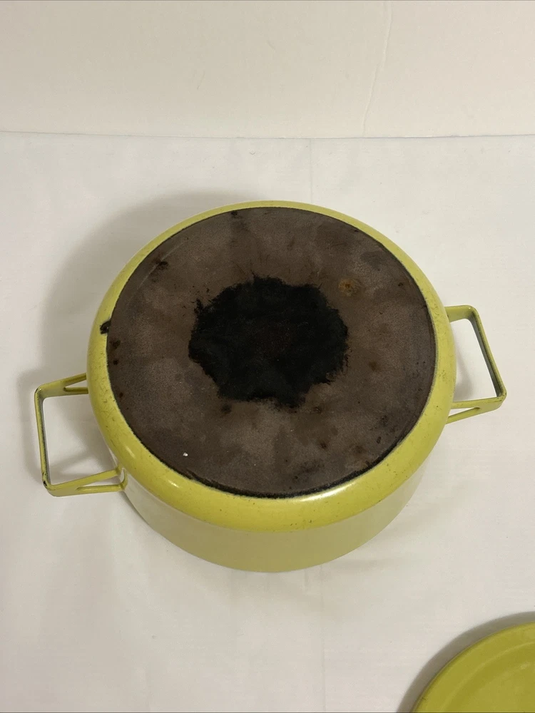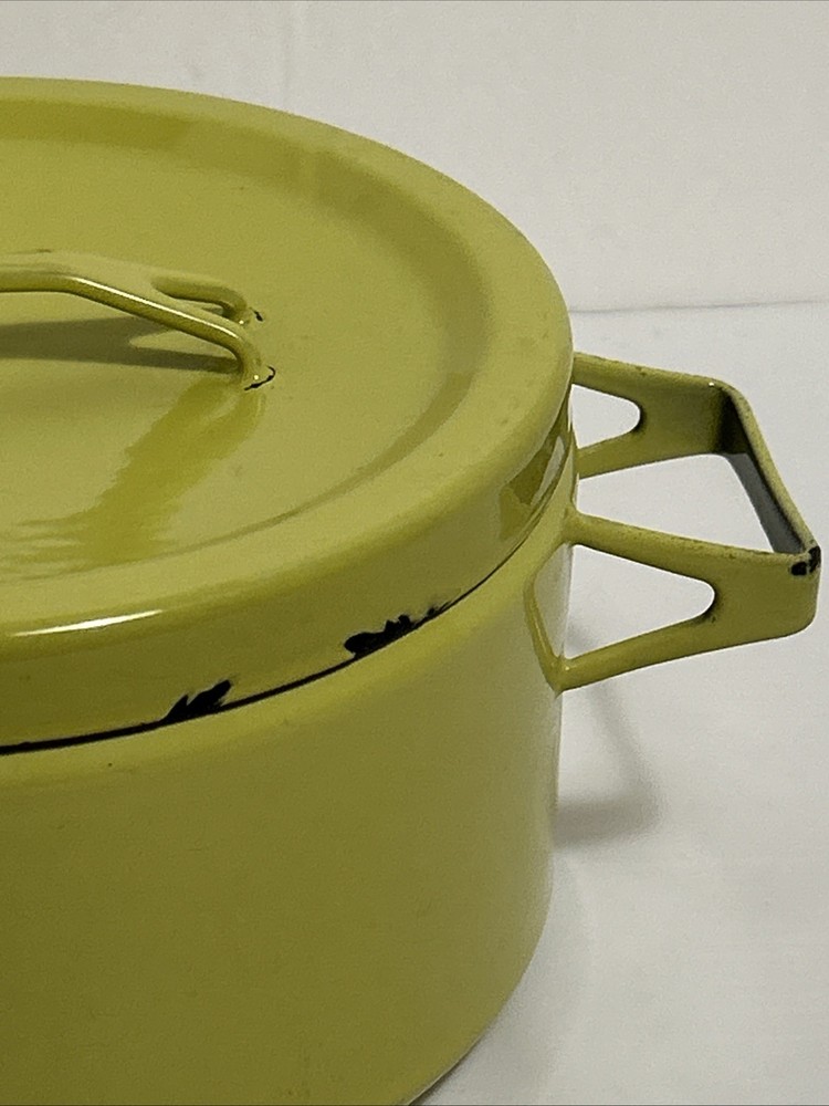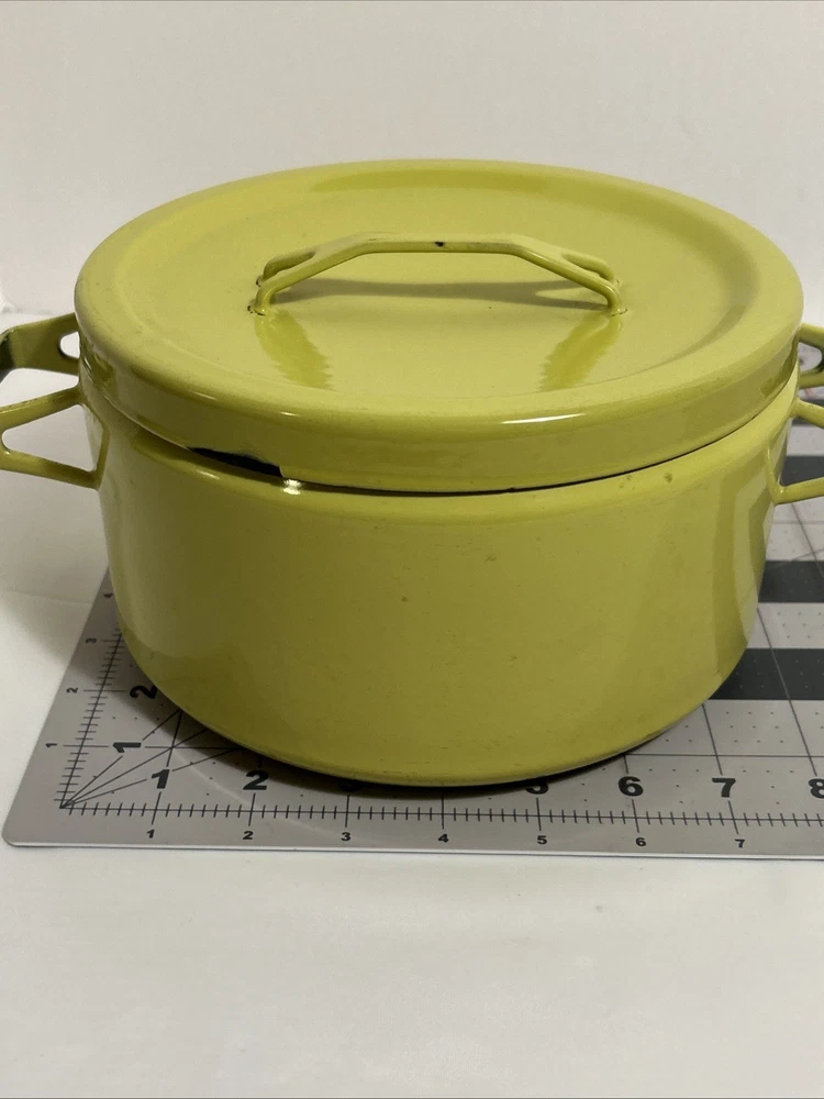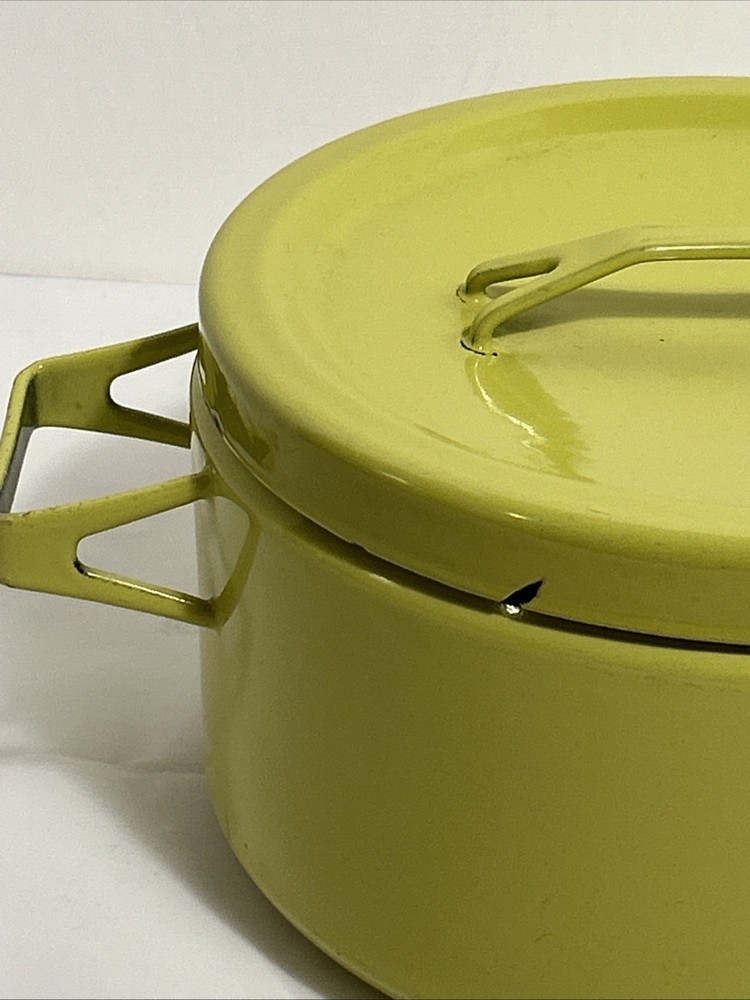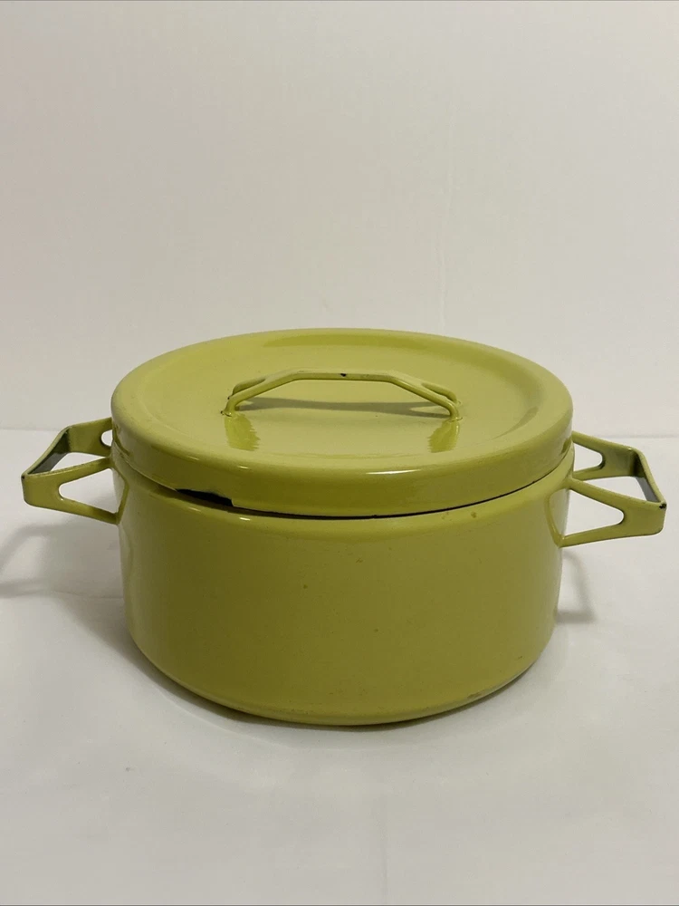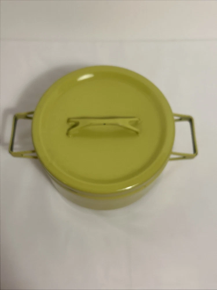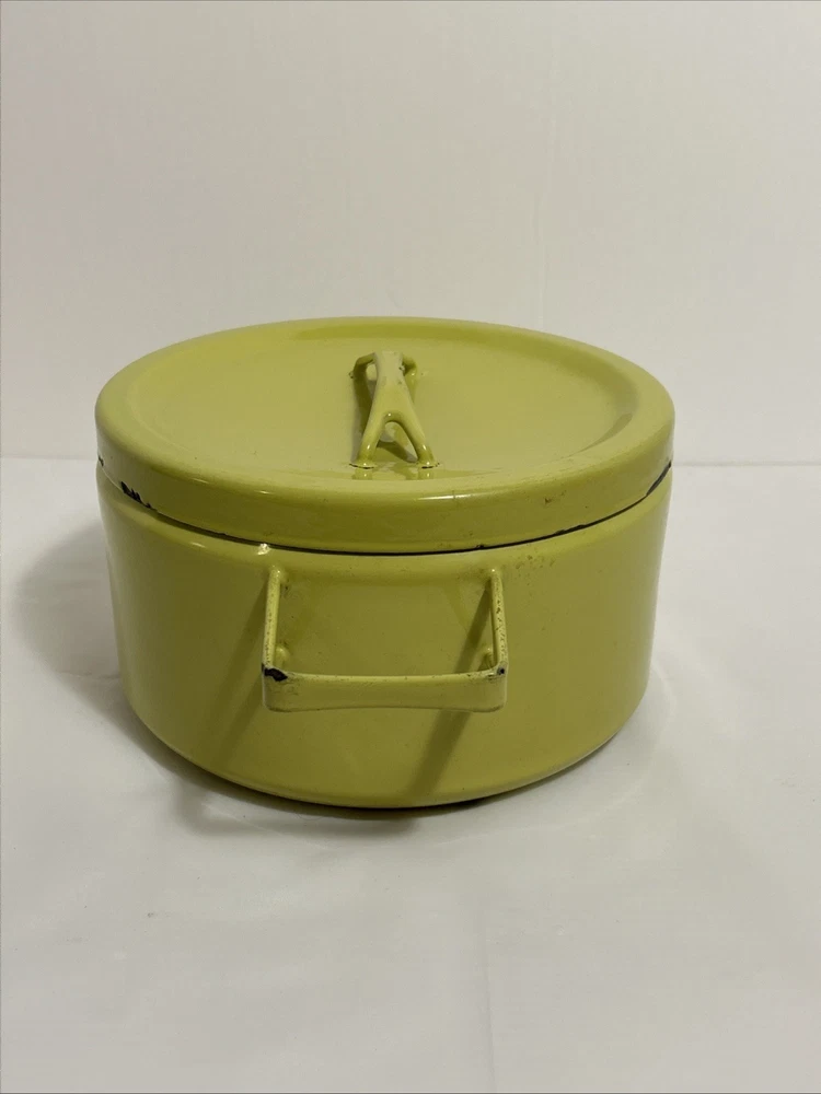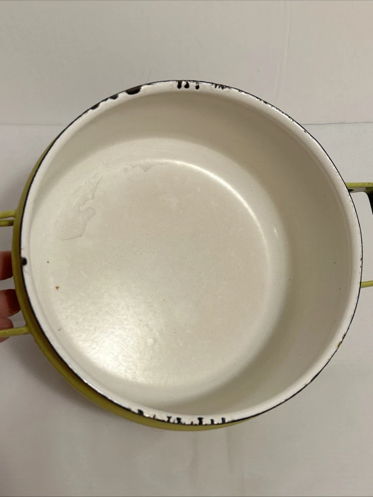 The Vintage Finel Dutch Oven Chartreuse Green Stock Pot is a round stockpot with a double handle and ceramic surface coating. Made by the brand Finel, this collectible piece of cookware is perfect for stoves of both electric and gas types. The vintage Dutch oven features a charming green color and comes with a lid, making it a stylish and functional addition to any kitchen.