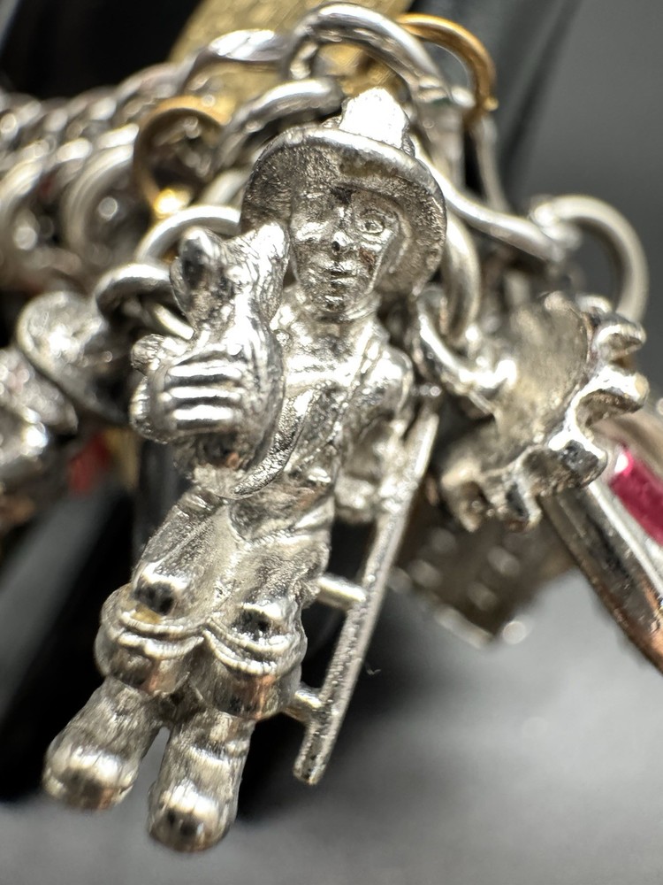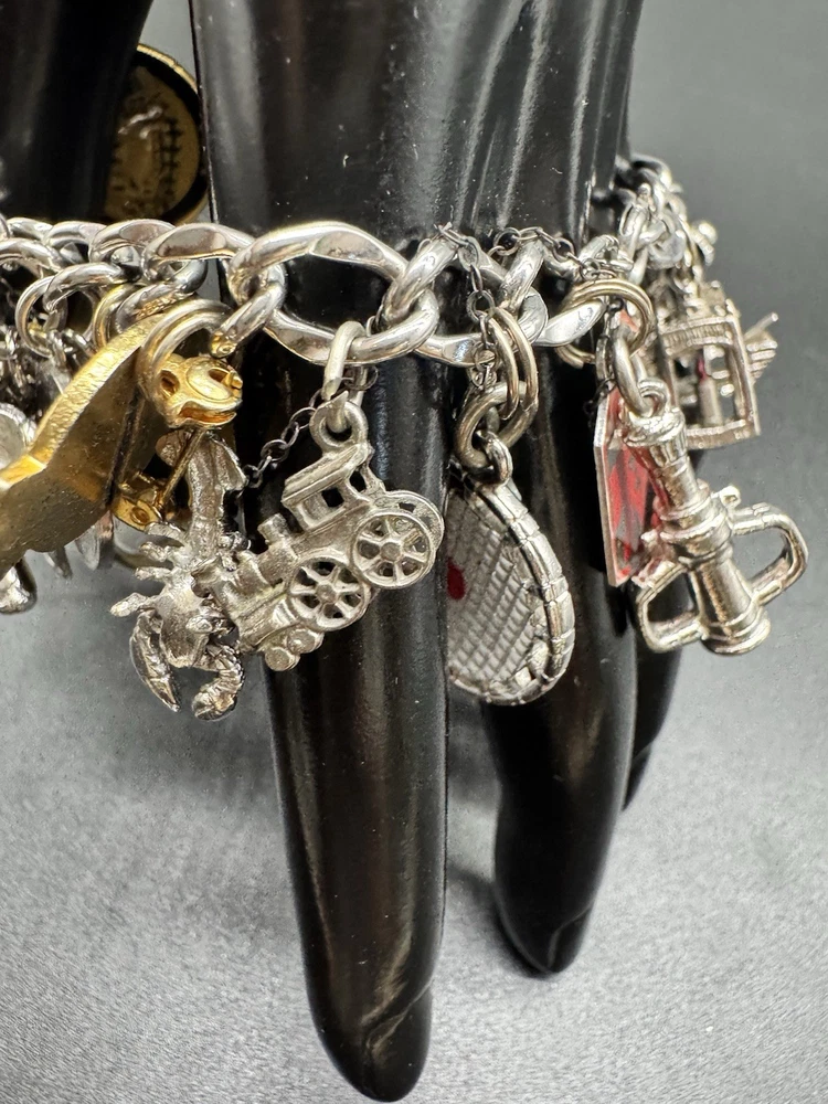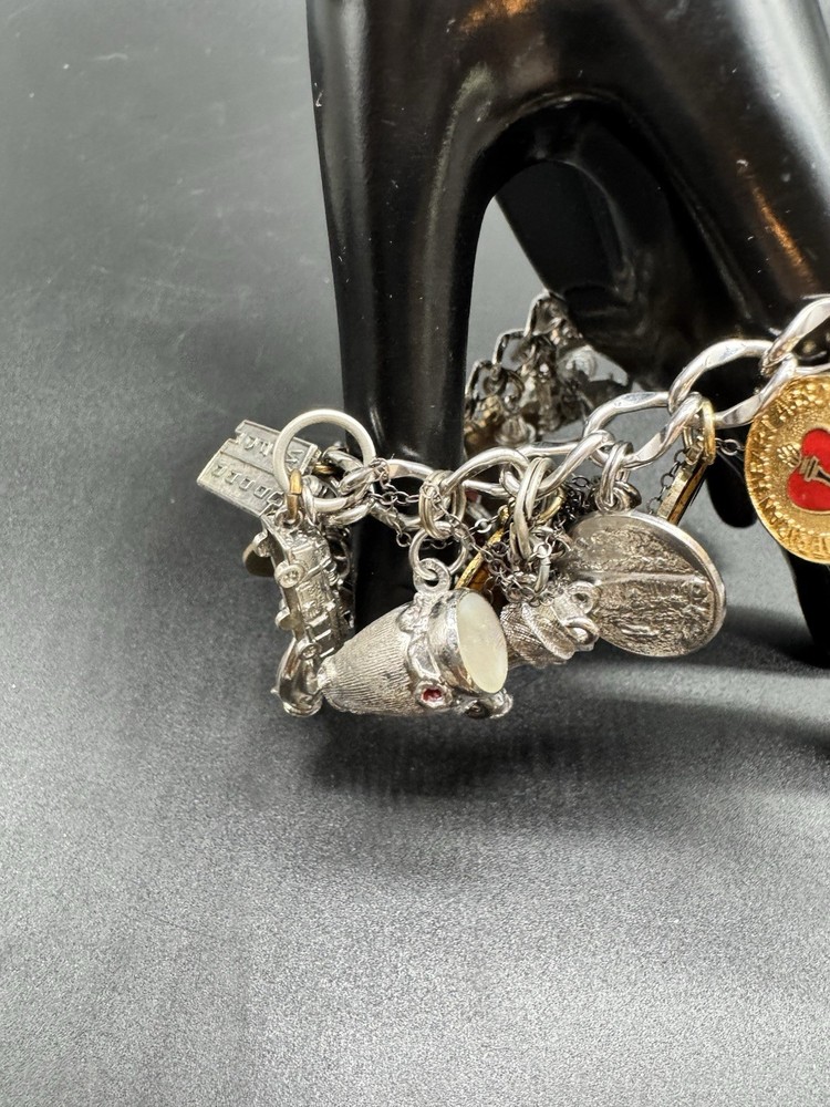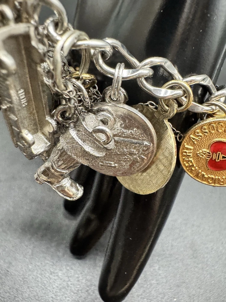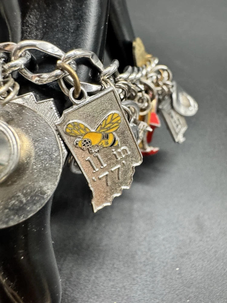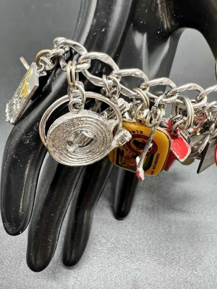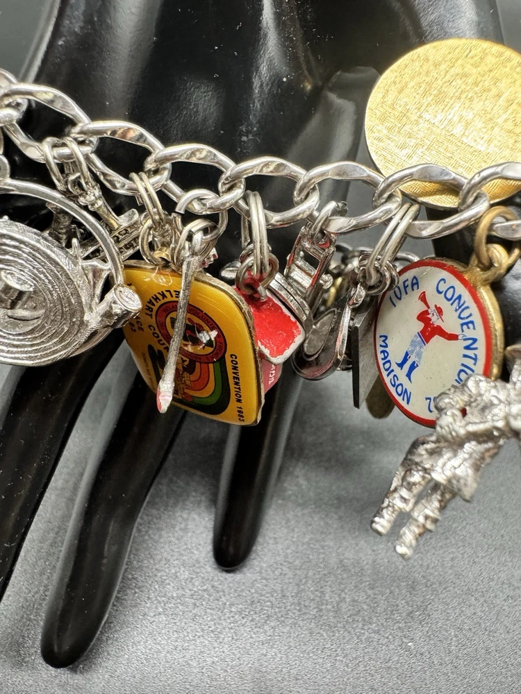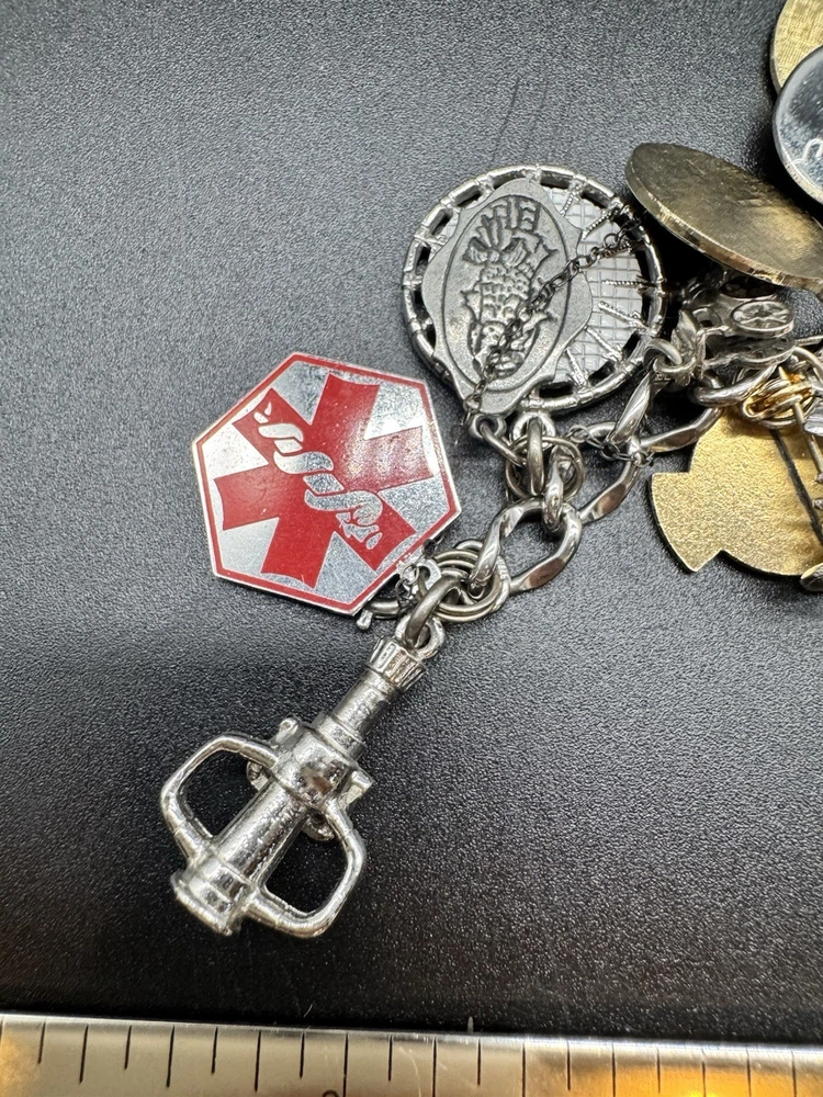 Vintage Firefighter Charm Bracelet Loaded! IUFA EMT Elks Conventions 1962–83 ⸻ Description: This is a one-of-a-kind, heavily loaded vintage firefighter charm bracelet packed with nostalgia, history, and heart. Assembled over decades, it includes commemorative charms from firefighter conventions (IUFA), EMT service, and vintage organizations like the Elks. This bracelet is ideal for collectors of firefighter memorabilia, emergency service history, or lovers of detailed charm jewelry. 🧯 Over 25 charms and badges, including: • 🧑🚒 1962 IUFA Convention - Madison, WI enamel badge • 🧯 1982 IUFA Convention District 14 & 16 charm • 🏛️ 1983 Elks Firefighters Convention - El Paso, TX • 🚒 Red fire truck with ladder and engine detail • 👨🚒 Firefighter figurine holding a rescued kitten (incredible detail!) • 🔥 Coiled fire hose, hydrants, axes, fire ladders • 🆘 EMT, EMS, and red & blue enamel Maltese crosses • 🏅 Indiana state charm “11 in ’77” with a bee emblem • 🧢 Mini firefighter helmet marked STER (possible sterling silver) • 🔧 Brass tone and enamel convention pins • 🛠️ Vintage mechanical and 3D fire equipment charms • 🕯️ Lantern, log cabin, crab, and firefighting gear charms This bracelet tells a story of dedication and bravery through carefully collected and worn memorabilia. Some enamel loss and vintage patina are visible, consistent with age and use. Length is approx. 7.5 to 8 inches. The bracelet is silver-tone metal with some charms possibly being sterling or brass (unmarked or partially marked). ⸻ Item Specifics: • Type: Vintage Charm Bracelet • Theme: Firefighter / EMT / Convention / Rescue • Material: Mixed Metals (Silver-tone, Brass-tone, Enamel) • Length: Approx. 7.5–8 inches • Main Colors: Silver with red, yellow, and blue accents • Condition: Vintage pre-owned; good condition with visible wear • Decade Coverage: 1960s–1980s • Signed: One charm marked “STER” (sterling) ⸻ Search Tags (Background Keywords): Fireman charm bracelet, vintage fire department jewelry, firefighter collectibles, emergency responder charm bracelet, vintage EMT jewelry, Elks convention memorabilia, IUFA charm, first responder bracelet, firetruck charm, firehose charm, red enamel cross jewelry, vintage fireman kit, firefighter gift idea, collectible charm jewelry ⸻ Shipping Info: I try to ship within 24 hours, with the exception of weekends and holidays. I carefully pack all items to ensure safe delivery. 💌 Be sure to check out my other listings—I post vintage treasures daily! Follow my shop for more historic, whimsical, and one-of-a-kind finds. ✨ Thanks for shopping with Vintage Wowzers. Have a wonderful day! ⸻JUNE0025