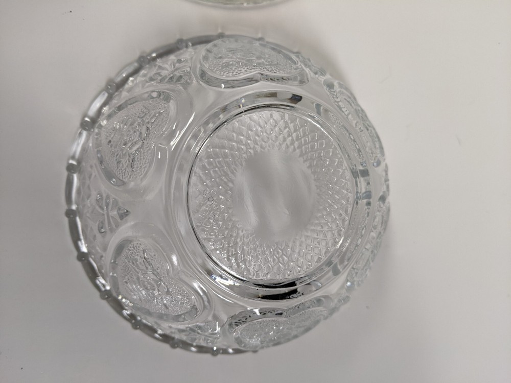 Vintage Clear Glass Candy Dish with lid Firna Indonesia Measures 5-inch round, 3.5 inches without lid and approximately 2 inches deep In great condition no chips or cracks