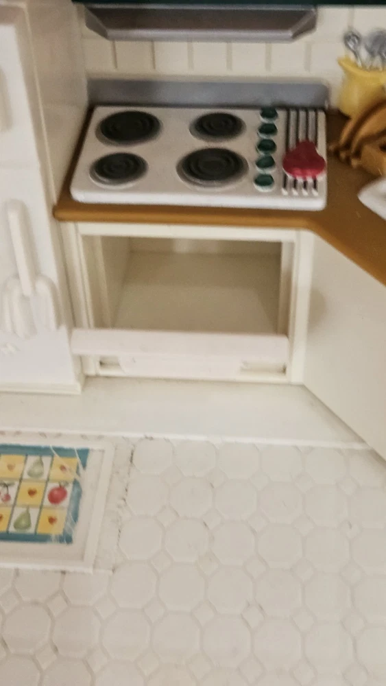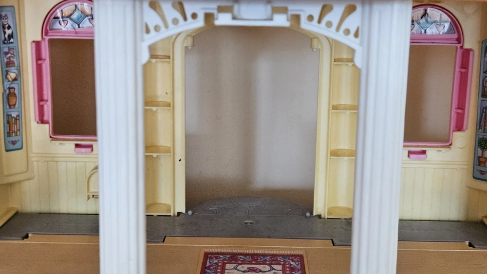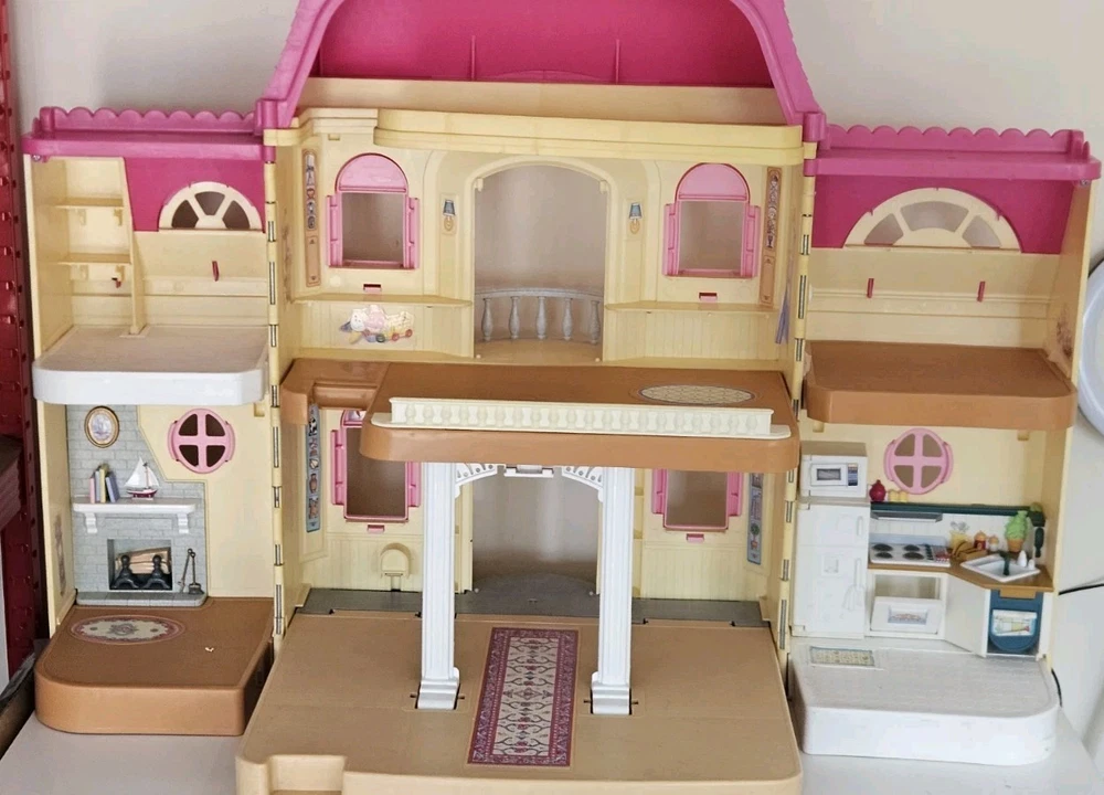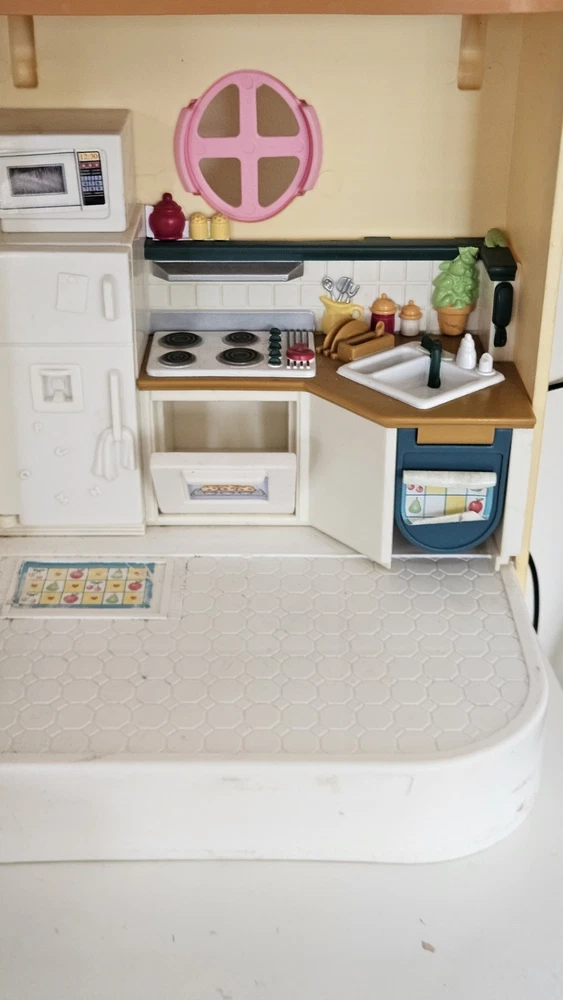 In fair condition and well played with aa seen There are markings, scuffs and discoulerment as seen. Missing all the doors and windows Staining and scuffs on the bottom as well Sold as seen for spares or to add onto. Please view all the pictures. Vintage 1997 58cm in height approximately