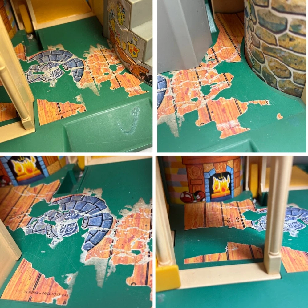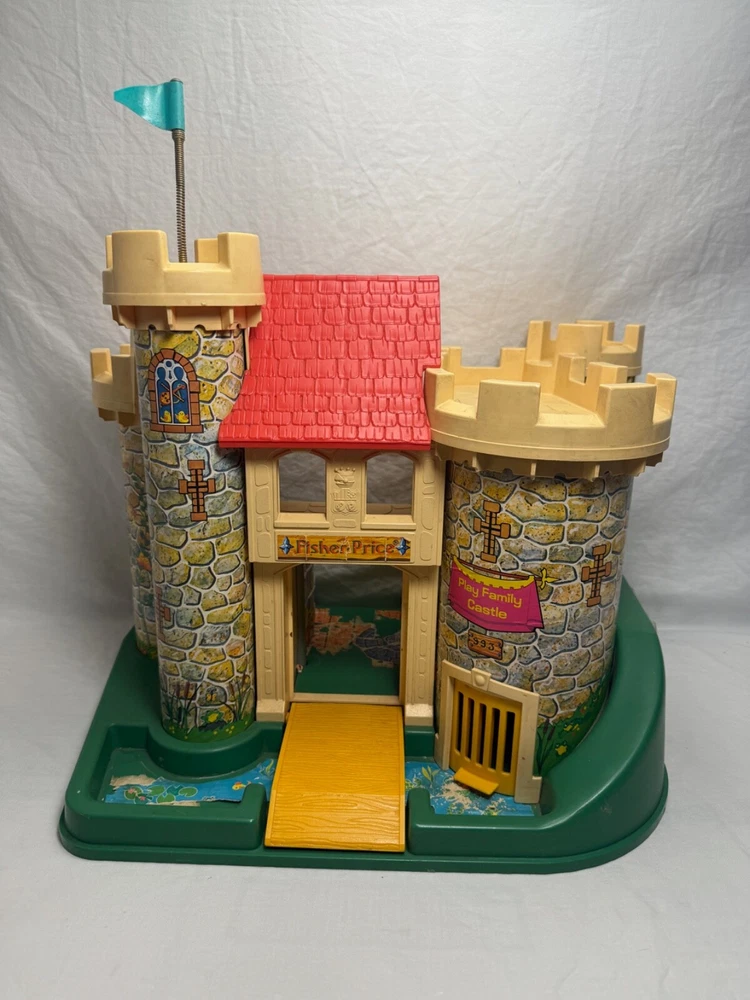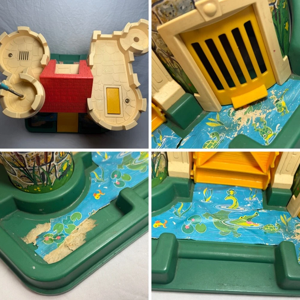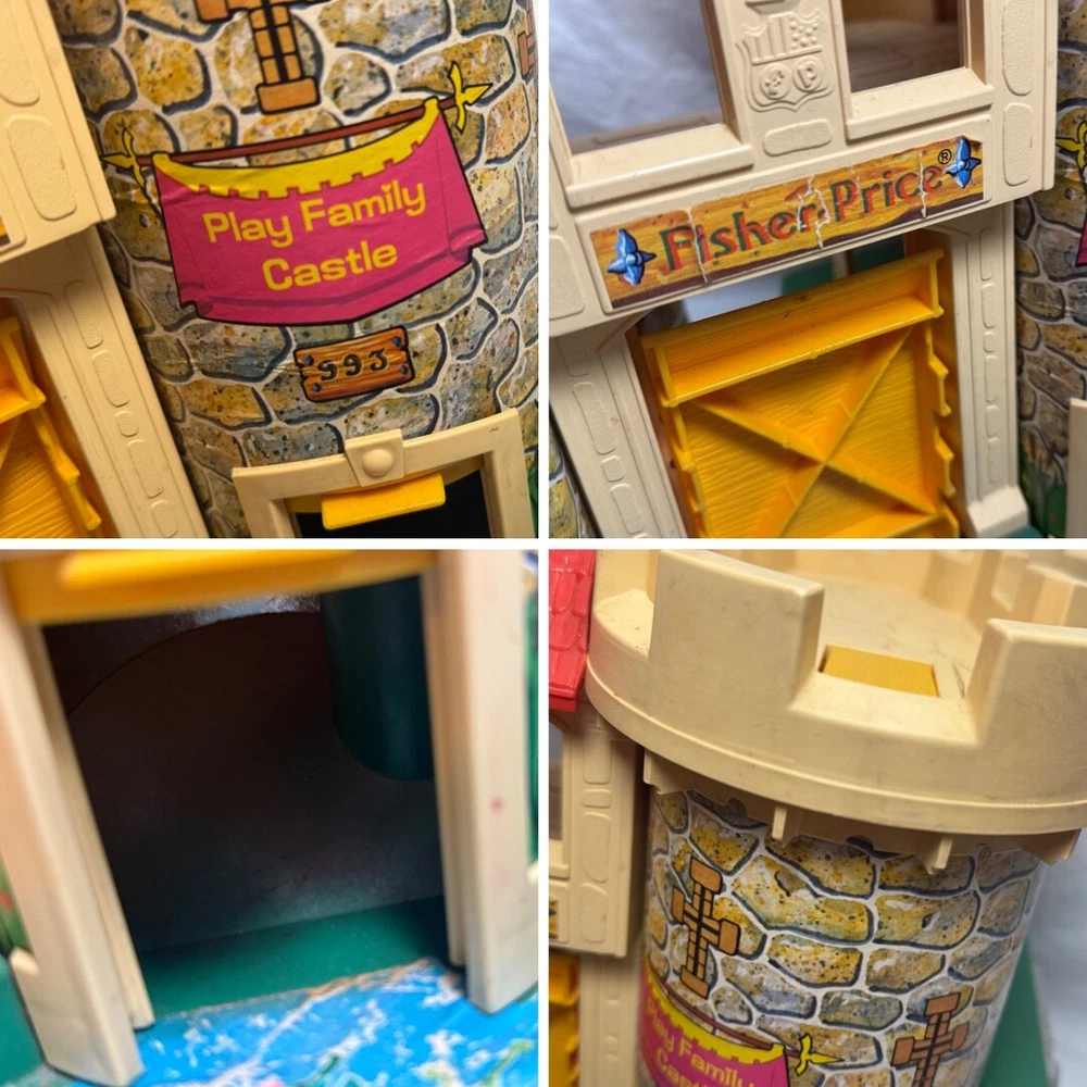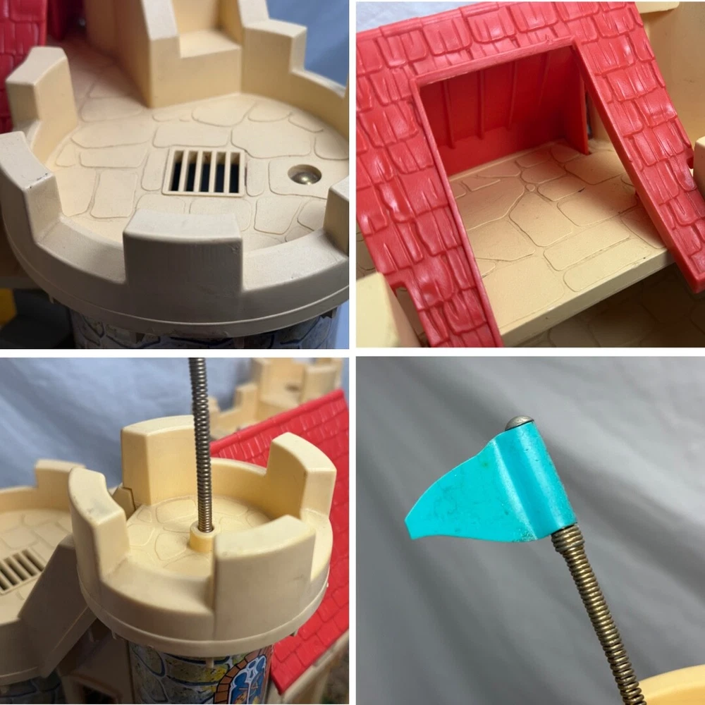 DESCRIPTION: Overall, the castle’s structure is in okay shape. However, the bolts are a bit loose and certain parts wobble. Tightening them might be possible, but I couldn’t find a tool that would fit the bolts. As shown in the pictures, the stickers have suffered significant wear and tear. They’ve been heavily scratched, scuffed, stained, creased, and have bubbled up paper. Some sections have been ripped completely off, and the stickers are overall discolored due to past playtime and age. All the accessory pieces have shown significant wear and tear, including heavy scratches, scuff marks, broken, and missing parts. They’re also discolored due to age. As shown in the pictures, one of the table legs is broken, the queen’s hat is broken, the animals are broken and missing pieces, and the beds have a very sticky residue that’s hard to remove. This whole set is sold as-is, for parts, or repair due to its significant wear and tear. SHIPPING & HANDLING: Orders are shipped within one or two business days after payment clears. For orders over $500.00, a signature upon delivery may be required. RETURNS: We do not accept any returns. Please look over all the pictures and fully read the description that are provided in this listing. Both combined give the best details for the item. We cannot accept returns for failure to look over all provided information in the listing. PAYMETNS: Payment is required within 5 days after winning bid of closed auction. Payment is required immediately for Buy It Now purchases, payments for offers are due within 5 days of accepted offer. All unpaid sales will be automatically canceled after deadline.