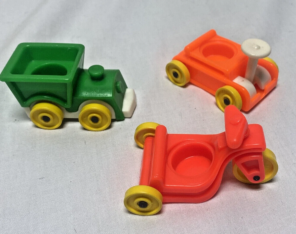 Vintage Fisher Price Little People Tricycle Orange Wagon Green train 3 vehicles
