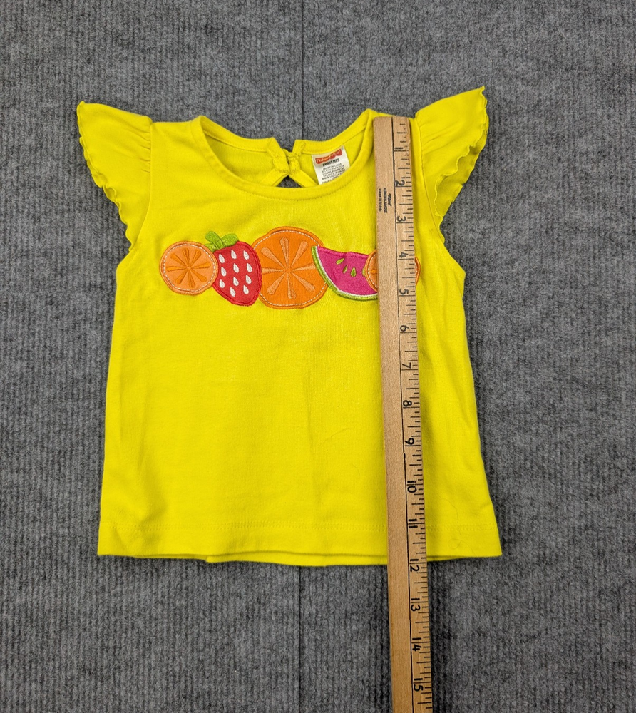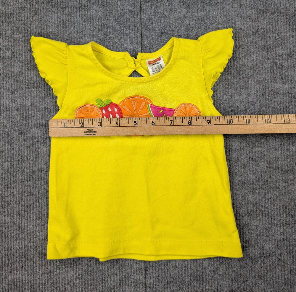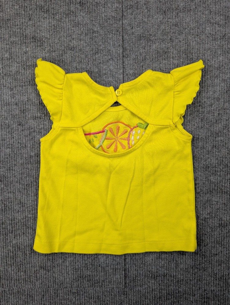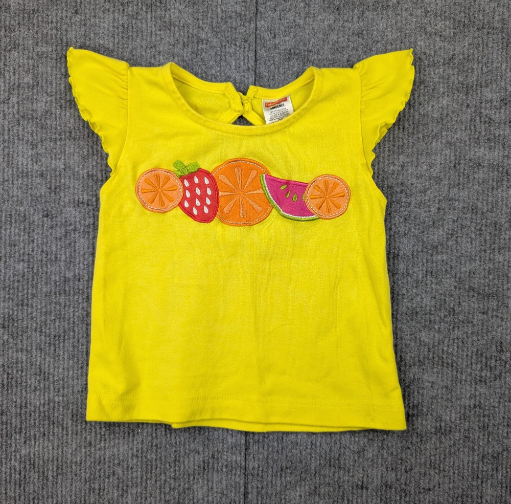 Brand: Fisher Price Size Type: Regular Department: Girls Type: Outfit Set Size: 24 Months Color: Yellow Blue Pattern: Fruit Sleeve Length: Sleeveless Material: 60% Cotton / 40% Polyester (Top) Style: 2 Piece Set Theme: Fruit, Summer, Cute Features: Ruffle Sleeves, Elastic Waist, Decorative Embroidery Vintage: No Country/Region of Manufacture: China